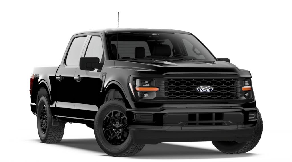 Agate Black Metallic 2026 Ford F-150 STX 4WD 10-Speed Automatic 2.7L V6 EcoBoost 4WD, 4-Wheel Disc Brakes, 6 Speakers, ABS brakes, Air Conditioning, Alloy wheels, AM/FM radio: SiriusXM with 360L, Auto High-beam Headlights, Brake assist, Bumpers: body-color, Compass, Delay-off headlights, Driver door bin, Dual front impact airbags, Dual front side impact airbags, Electronic Stability Control, Emergency communication system: SYNC 4 911 Assist, Ford Connectivity Package (1-Year Included), Front anti-roll bar, Front Bucket Seats, Front Center Armrest, Front License Plate Bracket, Front reading lights, Front wheel independent suspension, Fully automatic headlights, GVWR: 6,650 lbs Payload Package, Heated door mirrors, Illuminated entry, Internet access capable: 5G Modem - Ford Connectivity Package, Low tire pressure warning, Occupant sensing airbag, Outside temperature display, Overhead airbag, Overhead console, Panic alarm, Passenger door bin, Passenger vanity mirror, Power door mirrors, Power steering, Power windows, Radio data system, Radio: AM/FM Stereo w/SiriusXM 360L, Rear Parking Sensors, Rear step bumper, Rear window defroster, Remote keyless entry, Security system, Speed control, Split folding rear seat, Steering wheel mounted audio controls, SYNC 4 w/Enhanced Voice Recognition, Tachometer, Telescoping steering wheel, Tilt steering wheel, Traction control, Trip computer, Unique Sport Cloth 40/Console/40 Front-Seats, Variably intermittent wipers, Wheels: 18" Gloss Black, 4WD.