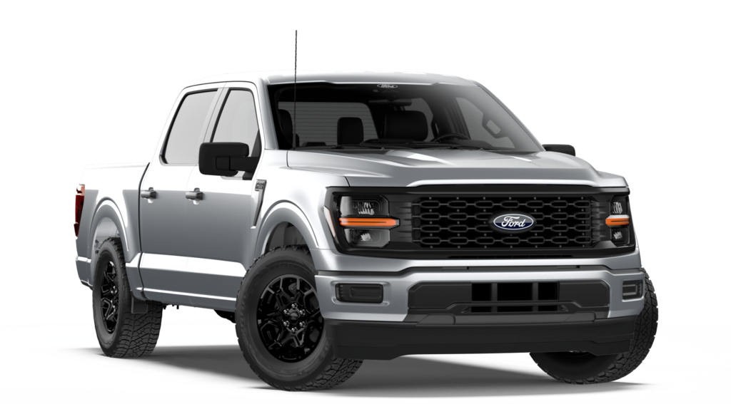 Iconic Silver Metallic 2026 Ford F-150 STX NFT RWD 10-Speed Automatic 2.7L V6 EcoBoost 3.55 Axle Ratio, 4-Wheel Disc Brakes, 6 Speakers, ABS brakes, Air Conditioning, Alloy wheels, AM/FM radio: SiriusXM with 360L, Auto High-beam Headlights, Brake assist, Bumpers: body-color, Compass, Delay-off headlights, Driver door bin, Dual front impact airbags, Dual front side impact airbags, Electronic Stability Control, Emergency communication system: SYNC 4 911 Assist, Ford Connectivity Package (1-Year Included), Front anti-roll bar, Front Bucket Seats, Front Center Armrest, Front License Plate Bracket, Front reading lights, Front wheel independent suspension, Fully automatic headlights, GVWR: 6,426 lbs Payload Package, Heated door mirrors, Illuminated entry, Internet access capable: 5G Modem - Ford Connectivity Package, Low tire pressure warning, Occupant sensing airbag, Outside temperature display, Overhead airbag, Overhead console, Panic alarm, Passenger door bin, Passenger vanity mirror, Power door mirrors, Power steering, Power windows, Radio data system, Radio: AM/FM Stereo with SiriusXM 360L, Rear Parking Sensors, Rear step bumper, Rear window defroster, Remote keyless entry, Security system, Speed control, Split folding rear seat, Steering wheel mounted audio controls, SYNC 4 with Enhanced Voice Recognition, Tachometer, Telescoping steering wheel, Tilt steering wheel, Tough Bed Spray-in Bedliner, Traction control, Trip computer, Unique Sport Cloth 40/Console/40 Front-Seats, Variably intermittent wipers, Wheels: 18" Gloss Black.