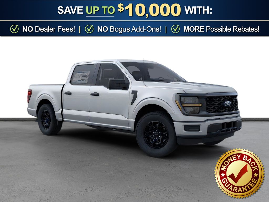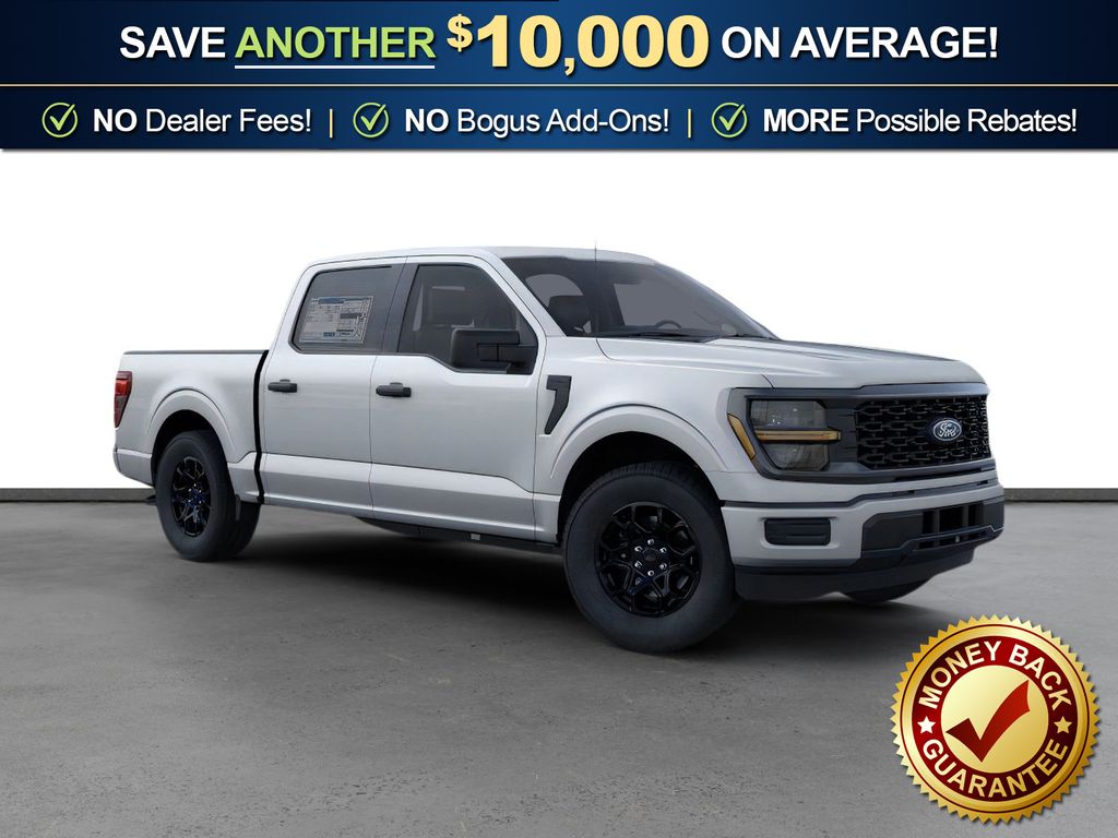 Iconic Silver Metallic 2026 Ford F-150 STX FCT RWD 10-Speed Automatic 2.7L V6 EcoBoost 3.55 Axle Ratio, 4-Wheel Disc Brakes, 6 Speakers, ABS brakes, Air Conditioning, Alloy wheels, AM/FM radio: SiriusXM with 360L, Auto High-beam Headlights, Brake assist, Bumpers: body-color, Compass, Delay-off headlights, Driver door bin, Dual front impact airbags, Dual front side impact airbags, Electronic Stability Control, Emergency communication system: SYNC 4 911 Assist, Ford Connectivity Package (1-Year Included), Front anti-roll bar, Front Bucket Seats, Front Center Armrest, Front License Plate Bracket, Front reading lights, Front wheel independent suspension, Fully automatic headlights, GVWR: 6,426 lbs Payload Package, Heated door mirrors, Illuminated entry, Internet access capable: 5G Modem - Ford Connectivity Package, Low tire pressure warning, Occupant sensing airbag, Outside temperature display, Overhead airbag, Overhead console, Panic alarm, Passenger door bin, Passenger vanity mirror, Power door mirrors, Power steering, Power windows, Radio data system, Radio: AM/FM Stereo with SiriusXM 360L, Rear Parking Sensors, Rear step bumper, Rear window defroster, Remote keyless entry, Security system, Speed control, Split folding rear seat, Steering wheel mounted audio controls, SYNC 4 with Enhanced Voice Recognition, Tachometer, Telescoping steering wheel, Tilt steering wheel, Tough Bed Spray-in Bedliner, Traction control, Trip computer, Unique Sport Cloth 40/Console/40 Front-Seats, Variably intermittent wipers, Wheels: 18" Gloss Black.