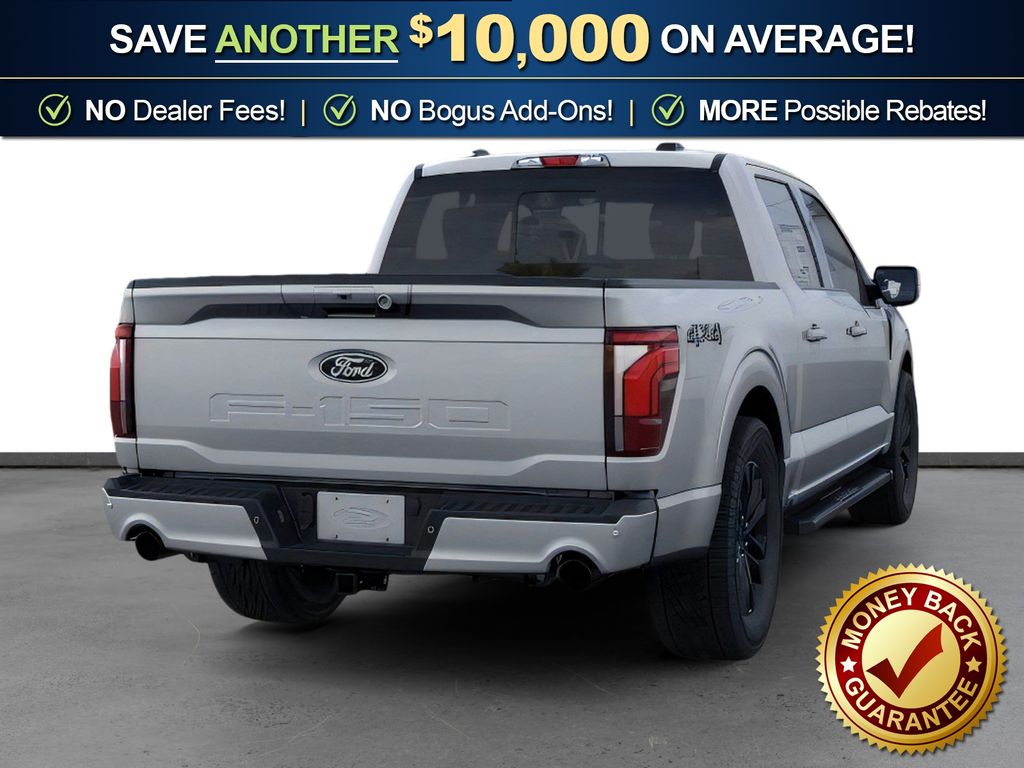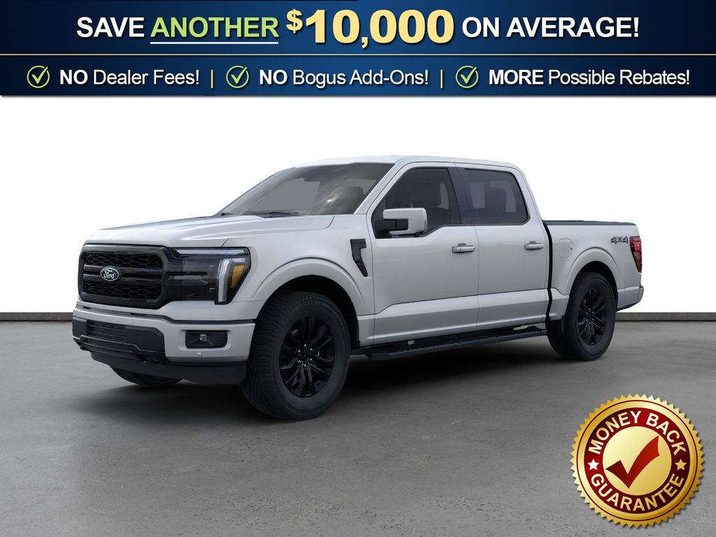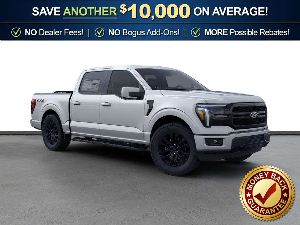 Iconic Silver Metallic 2026 Ford F-150 Lariat NFT 4WD 10-Speed Automatic 5.0L V8 4WD, 3.31 Axle Ratio, 4-Wheel Disc Brakes, 8 Speakers, ABS brakes, ActiveX Trimmed Bucket Seats, Air Conditioning, Alloy wheels, AM/FM radio: SiriusXM with 360L, Auto High-beam Headlights, Auto-dimming door mirrors, Auto-dimming Rear-View mirror, Automatic temperature control, Black Exterior Badging, Black Grille, Black Taillamp Bezels, Body-Color Front and Rear Bumpers, Brake assist, Bumpers: chrome, Chrome wheels, Compass, Dark Interior Appliques, Delay-off headlights, Driver door bin, Driver vanity mirror, Driver's Side SecuriCode Keyless-Entry Keypad, Dual front impact airbags, Dual front side impact airbags, Electronic Stability Control, Emergency communication system: SYNC 4 911 Assist, Ford Connectivity Package (1-Year Included), Front anti-roll bar, Front Bucket Seats, Front Center Armrest, Front dual zone A/C, Front fog lights, Front License Plate Bracket, Front reading lights, Front wheel independent suspension, Fully automatic headlights, Garage door transmitter, Gray Box Side Decal, Heated door mirrors, Heated front seats, Heated steering wheel, Illuminated entry, Internet access capable: 5G Modem - Ford Connectivity Package, Lariat Black Appearance Package, Low tire pressure warning, Matte Black Tailgate F-150 Decal, Memory seat, Navigation system: Connected Navigation, Occupant sensing airbag, Outside temperature display, Overhead airbag, Overhead console, Panic alarm, Passenger door bin, Passenger vanity mirror, Power door mirrors, Power driver seat, Power passenger seat, Power steering, Power windows, Radio data system, Radio: B&O Sound System by Bang and Olufsen, Rain sensing wipers, Rear reading lights, Rear seat center armrest, Rear step bumper, Rear window defroster, Remote keyless entry, Security system, Speed control, Split folding rear seat, Steering wheel mounted audio controls, SYNC 4 with Enhanced Voice Recognition, Tachometer, Telescoping steering wheel, Tilt steering wheel, Traction control, Trip computer, Turn signal indicator mirrors, Variably intermittent wipers, Ventilated front seats, Wheels: 18" Chrome-Like PVD, 4WD.