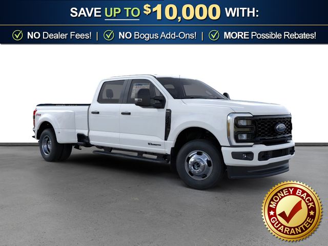 2026 Ford F-350SD XL DRW Oxford White XL DRW 4WD 10-Speed Automatic Power Stroke 6.7L V8 DI 32V OHV Turbodiesel 4WD, 17" Forged Polished Aluminum Wheels, 250 Amp Alternator, 4-Wheel Disc Brakes, 5th Wheel/Gooseneck Hitch Prep Package, ABS brakes, Air Conditioning, Brake assist, Compass, Delay-off headlights, Dual front impact airbags, Dual front side impact airbags, Dual rear wheels, Electronic Stability Control, Emergency communication system: SYNC 4 911 Assist, Engine Block Heater, Ford Connectivity Package (1-Year Included), Front anti-roll bar, Front reading lights, Fully automatic headlights, FX4 Off-Road Package, GVWR: 14,000 Lb Payload Package, Heated door mirrors, Hill Descent Control, Illuminated entry, Internet access capable: 5G Modem - Ford Connectivity Package, Low tire pressure warning, Off-Road Specifically Tuned Shock Absorbers, Outside temperature display, Overhead airbag, Overhead console, Panic alarm, Passenger vanity mirror, Power door mirrors, Power steering, Power windows, Rear anti-roll bar, Rear reading lights, Rear step bumper, Remote keyless entry, Security system, Speed control, Split folding rear seat, Steering wheel mounted audio controls, Tachometer, Telescoping steering wheel, Tilt steering wheel, Traction control, Trip computer, Turn signal indicator mirrors, Unique FX4 Off-Road Box Decal, Upfitter Switches (6), Variably intermittent wipers, 4WD.