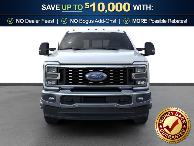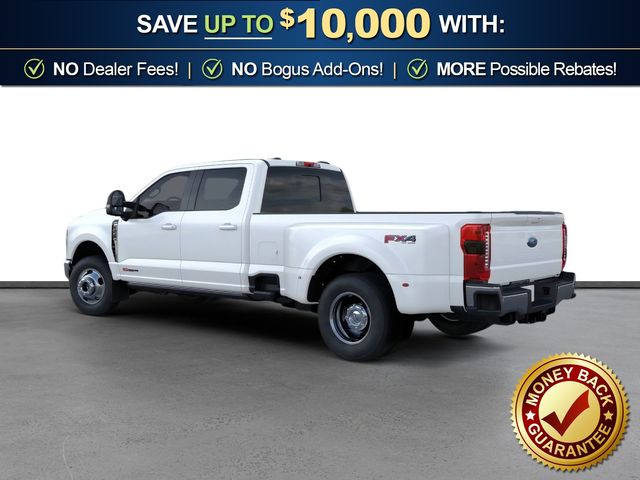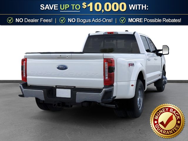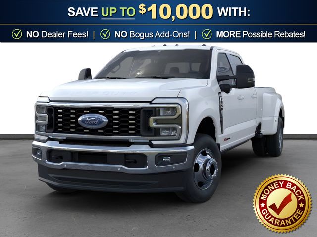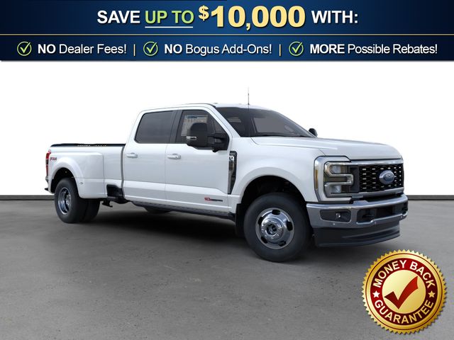 2026 Ford F-350SD Lariat DRW Star White Metallic Tri-Coat Lariat DRW 4WD 10-Speed Automatic 6.7L High Output Power Stroke V8 Diesel 4WD, 17" Forged Polished Aluminum Wheels, 4-Wheel Disc Brakes, 410 Amp Dual Alternators, 5th Wheel/Gooseneck Hitch Prep Package, ABS brakes, Air Conditioning, Brake assist, Compass, Delay-off headlights, Dual front impact airbags, Dual front side impact airbags, Dual rear wheels, Electronic Stability Control, Emergency communication system: SYNC 4 911 Assist, Engine Block Heater, Ford Connectivity Package (1-Year Included), Front anti-roll bar, Front reading lights, Fully automatic headlights, FX4 Off-Road Package, GVWR: 14,000 Lb Payload Package, Heated door mirrors, Hill Descent Control, Illuminated entry, Internet access capable: 5G Modem - Ford Connectivity Package, Low tire pressure warning, Off-Road Specifically Tuned Shock Absorbers, Outside temperature display, Overhead airbag, Overhead console, Panic alarm, Passenger vanity mirror, Power door mirrors, Power steering, Power windows, Pro Power Onboard - 2kW, Rapid-Heat Supplemental Cab Heater, Rear anti-roll bar, Rear reading lights, Rear step bumper, Remote keyless entry, Security system, Speed control, Split folding rear seat, Steering wheel mounted audio controls, Tachometer, Telescoping steering wheel, Tilt steering wheel, Traction control, Trip computer, Turn signal indicator mirrors, Unique FX4 Off-Road Box Decal, Upfitter Switches (6), Variably intermittent wipers, 4WD.