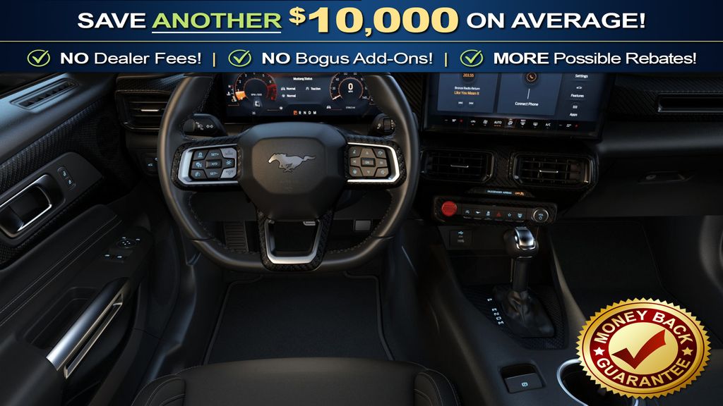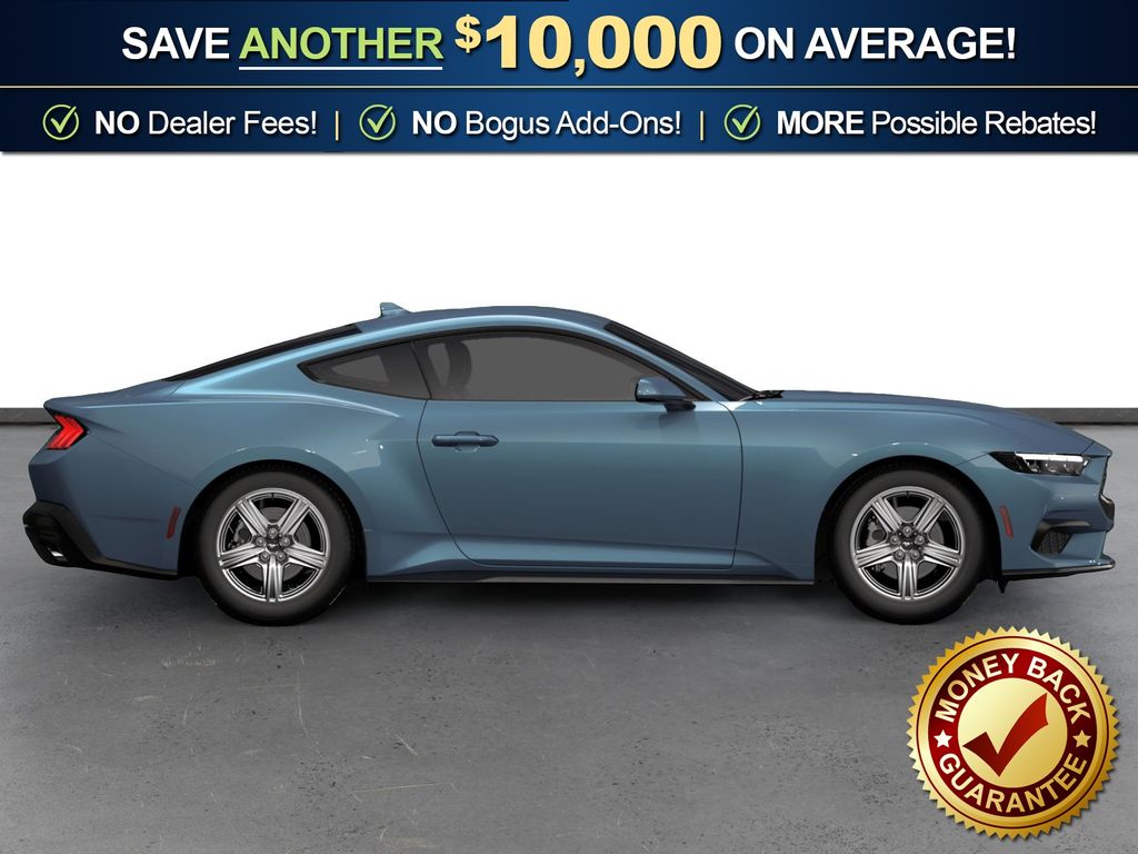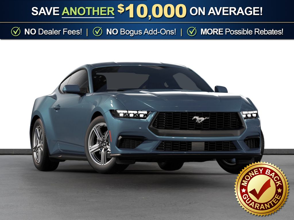 Vapor Blue Metallic 2026 Ford Mustang NFC RWD 10-Speed Automatic EcoBoost 2.3L I4 GTDi DOHC Turbocharged VCT 1st Row Carpeted Black Floor Mats, 4-Wheel Disc Brakes, ABS brakes, Air Conditioning, Alloy wheels, AM/FM Stereo, Auto High-beam Headlights, Automatic temperature control, Brake assist, Bumpers: body-color, Compass, Delay-off headlights, Driver door bin, Driver vanity mirror, Dual front impact airbags, Dual front side impact airbags, Electronic Stability Control, Emergency communication system: 911 Assist, Exterior Parking Camera Rear, Four wheel independent suspension, Front anti-roll bar, Front Bucket Seats, Front Center Armrest, Front dual zone A/C, Front reading lights, Fully automatic headlights, Illuminated entry, Knee airbag, Leather Shift Knob, Low tire pressure warning, Occupant sensing airbag, Outside temperature display, Overhead airbag, Overhead console, Panic alarm, Passenger door bin, Passenger vanity mirror, Power door mirrors, Power steering, Power windows, Radio data system, Rain sensing wipers, Rear anti-roll bar, Rear Parking Sensors, Rear window defroster, Remote keyless entry, Speed control, Speed-sensing steering, Speed-Sensitive Wipers, Split folding rear seat, Sport steering wheel, Steering wheel mounted audio controls, SYNC 4, Tachometer, Telescoping steering wheel, Tilt steering wheel, Traction control, Trip computer, Variably intermittent wipers, Voltmeter, Wheels: 18" x 8" Painted Shadow Silver Cast Aluminum.