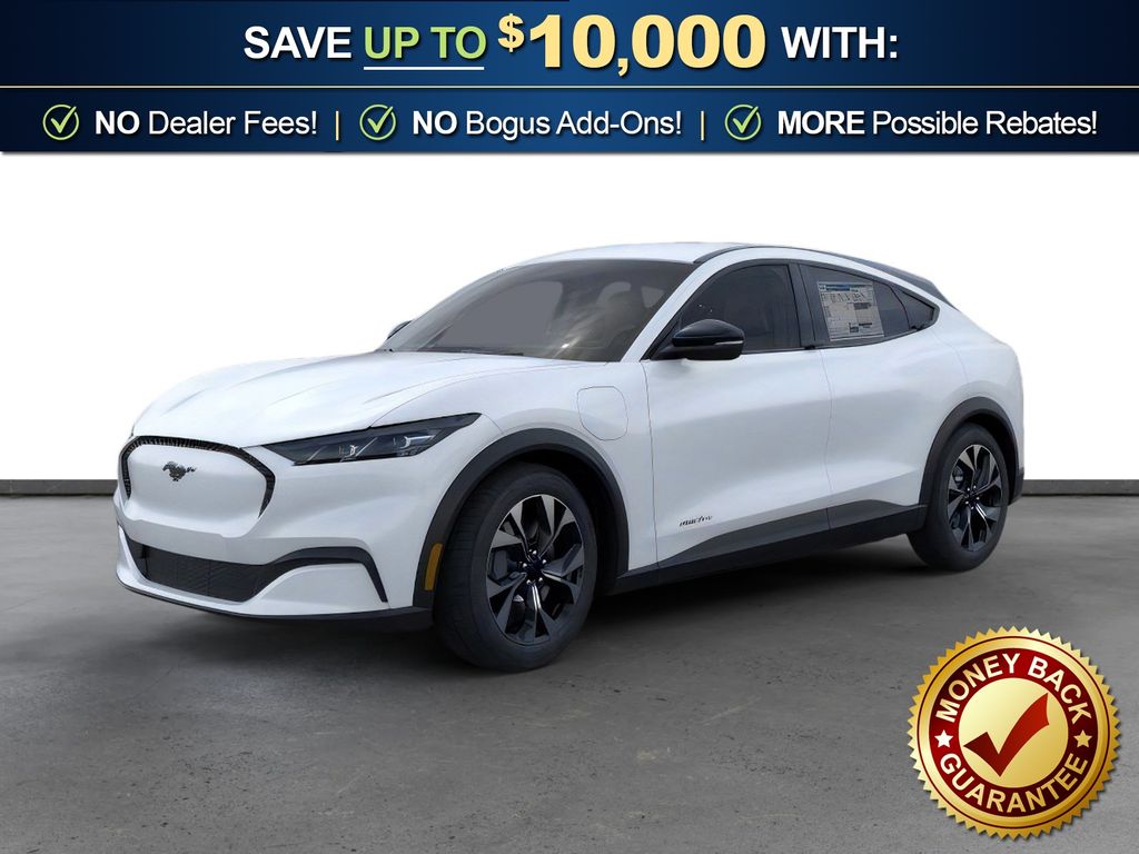 Star White Metallic Tri-Coat 2026 Ford Mustang Mach-E Select NFT RWD Single-Speed Automatic Electric Motor 4-Wheel Disc Brakes, 6 Speakers, ABS brakes, ActiveX Bucket Seats, Air Conditioning, Alloy wheels, AM/FM radio: SiriusXM with 360L, AM/FM Stereo, Apple CarPlay/Android Auto, Auto High-beam Headlights, Auto-dimming Rear-View mirror, Automatic temperature control, Brake assist, Bumpers: body-color, Comfort Package, Compass, Delay-off headlights, Driver door bin, Driver vanity mirror, Dual front impact airbags, Dual front side impact airbags, Electronic Stability Control, Emergency communication system: 911 Assist, Exterior Parking Camera Rear, Four wheel independent suspension, Front anti-roll bar, Front Bucket Seats, Front Center Armrest, Front dual zone A/C, Front License Plate Bracket, Front reading lights, Fully automatic headlights, Heated door mirrors, Heated Front Row Seats, Heated Steering Wheel, Illuminated entry, Knee airbag, Low tire pressure warning, Memory Driver's Seat and Sideview Mirrors, Mobile Power Cord (120V/240V), Navigation system: Connected Navigation, Occupant sensing airbag, Outside temperature display, Overhead airbag, Overhead console, Panic alarm, Passenger door bin, Passenger vanity mirror, Power door mirrors, Power driver seat, Power steering, Power windows, Radio data system, Rain sensing wipers, Rear anti-roll bar, Rear seat center armrest, Rear side impact airbag, Rear window defroster, Rear window wiper, Remote keyless entry, Security system, SiriusXM with 360L, Speed control, Speed-sensing steering, Speed-Sensitive Wipers, Split folding rear seat, Spoiler, Steering wheel mounted audio controls, SYNC 4A with Enhanced Voice Recognition, Telescoping steering wheel, Tilt steering wheel, Tire Inflator and Sealant Kit, Traction control, Trip computer, Turn signal indicator mirrors, Variably intermittent wipers, Wheels: 19" Machined-Face Aluminum.