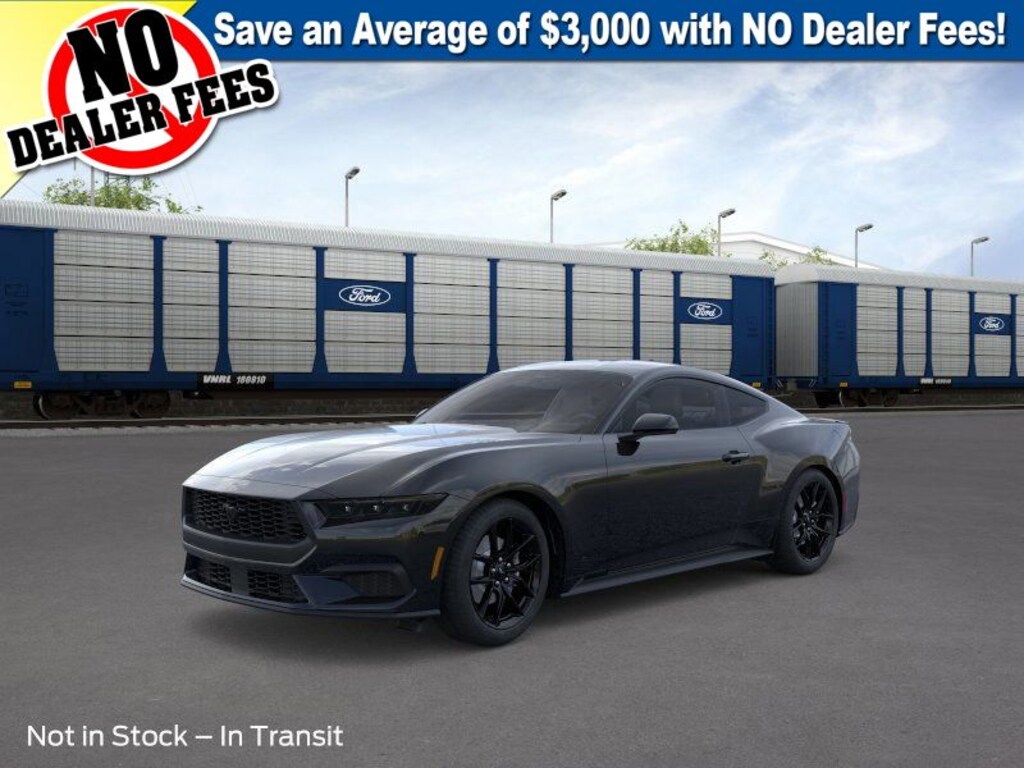 Shadow Black 2026 Ford Mustang RWD 10-Speed Automatic EcoBoost 2.3L I4 GTDi DOHC Turbocharged VCT 1st Row Carpeted Black Floor Mats, 4-Wheel Disc Brakes, ABS brakes, Air Conditioning, Alloy wheels, AM/FM Stereo, Auto High-beam Headlights, Automatic temperature control, Black Front & Rear Pony Badges, Black Mirror Caps, Brake assist, Bumpers: body-color, Compass, Delay-off headlights, Driver door bin, Driver vanity mirror, Dual front impact airbags, Dual front side impact airbags, Electronic Stability Control, Emergency communication system: 911 Assist, Exterior Parking Camera Rear, Four wheel independent suspension, Front anti-roll bar, Front Bucket Seats, Front Center Armrest, Front dual zone A/C, Front reading lights, Fully automatic headlights, Illuminated entry, Knee airbag, Leather Shift Knob, Low tire pressure warning, Mustang Nite Pony Package, Occupant sensing airbag, Outside temperature display, Overhead airbag, Overhead console, Painted Black Roof, Panic alarm, Passenger door bin, Passenger vanity mirror, Power door mirrors, Power steering, Power windows, Radio data system, Rain sensing wipers, Rear anti-roll bar, Rear Parking Sensors, Rear window defroster, Remote keyless entry, Speed control, Speed-sensing steering, Speed-Sensitive Wipers, Split folding rear seat, Sport steering wheel, Steering wheel mounted audio controls, SYNC 4, Tachometer, Telescoping steering wheel, Tilt steering wheel, Traction control, Trip computer, Variably intermittent wipers, Voltmeter, Wedge Decklid Spoiler, Wheels: 18" x 8" Painted Shadow Silver Cast Alum, Wheels: 19" x 8.5" Ebony Black-Painted Aluminum.