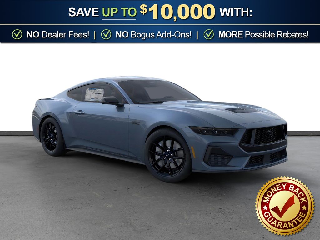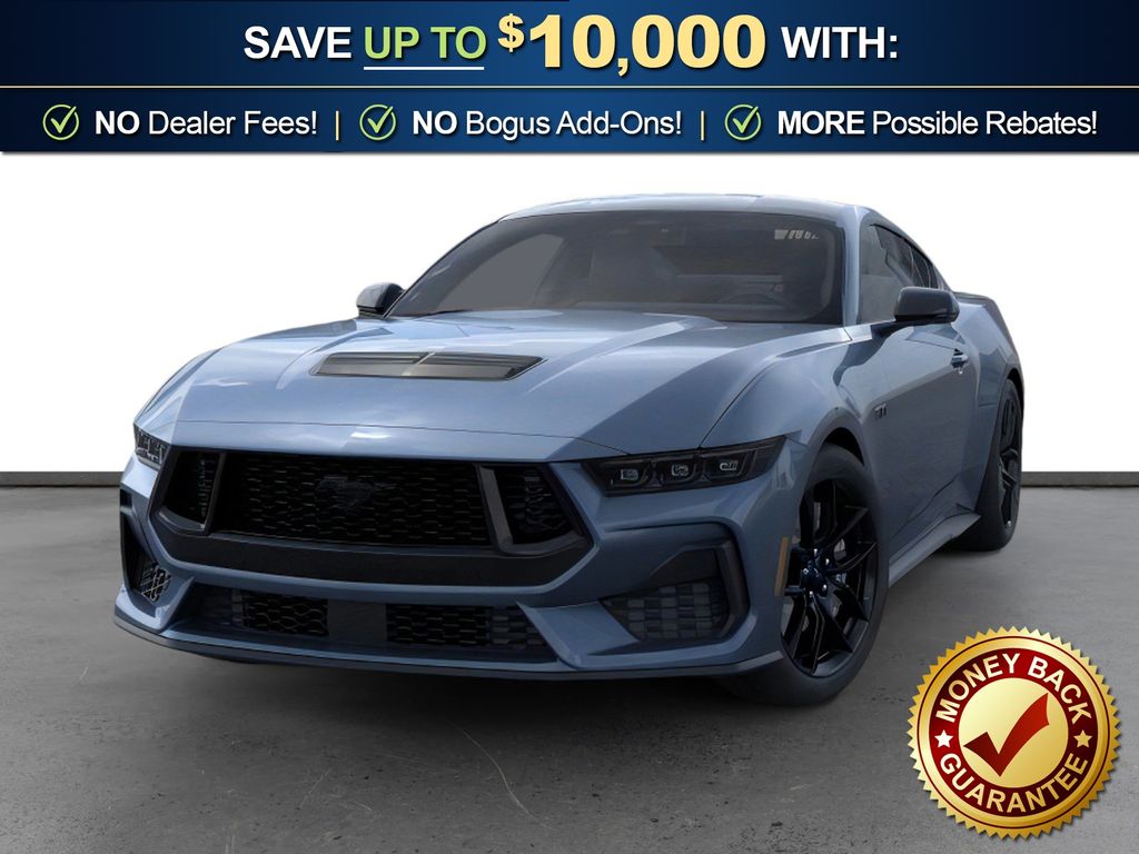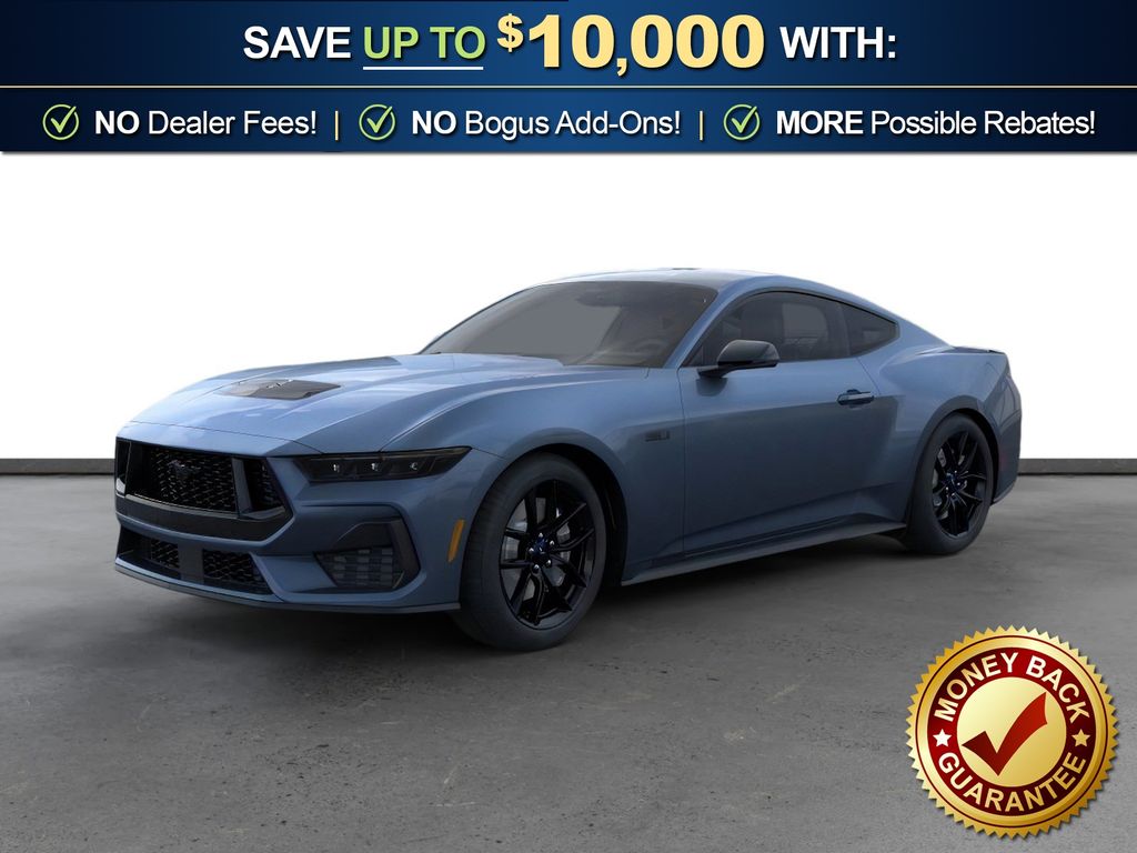Vapor Blue Metallic 2026 Ford Mustang GT Premium NFC RWD 10-Speed Automatic 5.0L V8 Ti-VCT 1st Row Carpeted Black Floor Mats, 4-Wheel Disc Brakes, ABS brakes, Active Anti-Theft System, Air Conditioning, Alloy wheels, AM/FM Stereo, Anti-Theft Package, Auto High-beam Headlights, Automatic temperature control, B&O Sound System by Bang & Olufsen with 12 Speakers, Black Mirror Caps, Brake assist, Bumpers: body-color, Compass, Delay-off headlights, Driver door bin, Driver vanity mirror, Dual front impact airbags, Dual front side impact airbags, Electronic Stability Control, Emergency communication system: 911 Assist, Exterior Parking Camera Rear, Four wheel independent suspension, Front anti-roll bar, Front Bucket Seats, Front Center Armrest, Front dual zone A/C, Front reading lights, Fully automatic headlights, Illuminated entry, Knee airbag, Leather Shift Knob, Leather steering wheel, Leather-Trimmed Bucket Seats with Color Accents, Locking Center Console, Low tire pressure warning, Mustang Nite Pony Package, Occupant sensing airbag, Outside temperature display, Overhead airbag, Overhead console, Panic alarm, Passenger door bin, Passenger vanity mirror, Power door mirrors, Power steering, Power windows, Radio data system, Rain sensing wipers, Rear anti-roll bar, Rear Parking Sensors, Rear window defroster, RECARO Leather-Trimmed Sport Seats, Remote keyless entry, Speed control, Speed-sensing steering, Speed-Sensitive Wipers, Split folding rear seat, Sport steering wheel, Steering wheel mounted audio controls, SYNC 4, Tachometer, Telescoping steering wheel, Tilt steering wheel, Traction control, Trip computer, Variably intermittent wipers, Voltmeter, Wheel Locking Kit.