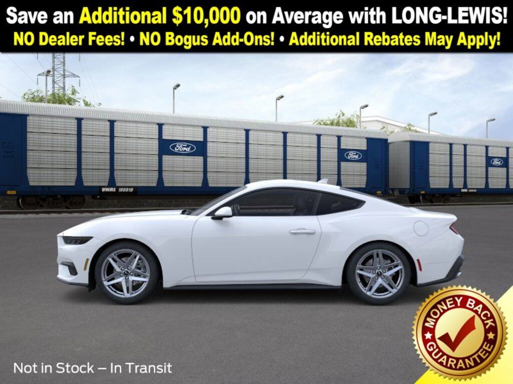Oxford White 2026 Ford Mustang RWD 10-Speed Automatic EcoBoost 2.3L I4 GTDi DOHC Turbocharged VCT 1st Row Carpeted Black Floor Mats, 4-Wheel Disc Brakes, ABS brakes, Air Conditioning, Alloy wheels, AM/FM Stereo, Auto High-beam Headlights, Automatic temperature control, Brake assist, Bumpers: body-color, Compass, Delay-off headlights, Driver door bin, Driver vanity mirror, Dual front impact airbags, Dual front side impact airbags, Electronic Stability Control, Emergency communication system: 911 Assist, Exterior Parking Camera Rear, Four wheel independent suspension, Front anti-roll bar, Front Bucket Seats, Front Center Armrest, Front dual zone A/C, Front reading lights, Fully automatic headlights, Illuminated entry, Knee airbag, Leather Shift Knob, Low tire pressure warning, Occupant sensing airbag, Outside temperature display, Overhead airbag, Overhead console, Panic alarm, Passenger door bin, Passenger vanity mirror, Power door mirrors, Power steering, Power windows, Radio data system, Rain sensing wipers, Rear anti-roll bar, Rear Parking Sensors, Rear window defroster, Remote keyless entry, Speed control, Speed-sensing steering, Speed-Sensitive Wipers, Split folding rear seat, Sport steering wheel, Steering wheel mounted audio controls, SYNC 4, Tachometer, Telescoping steering wheel, Tilt steering wheel, Traction control, Trip computer, Variably intermittent wipers, Voltmeter, Wheels: 18" x 8" Painted Shadow Silver Cast Alum, Wheels: 19" x 8.5" Premier Polished Aluminum.