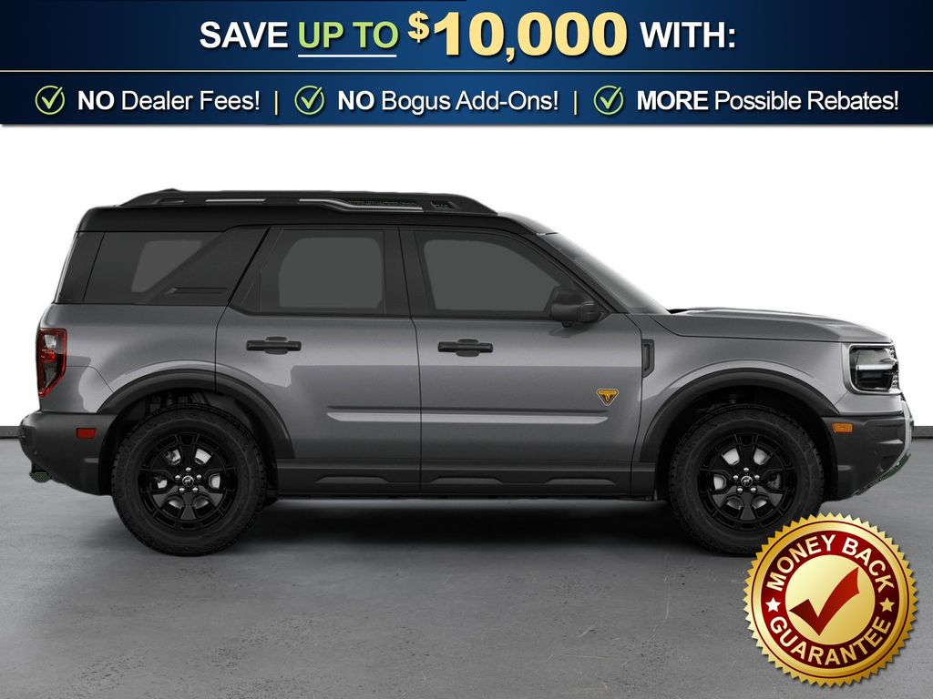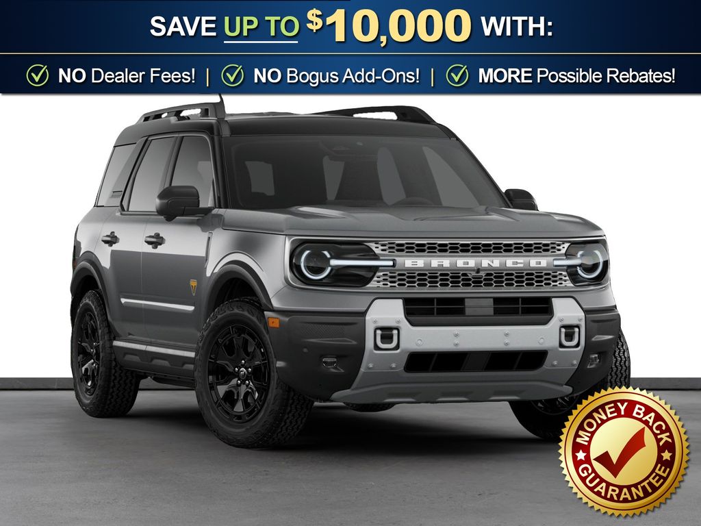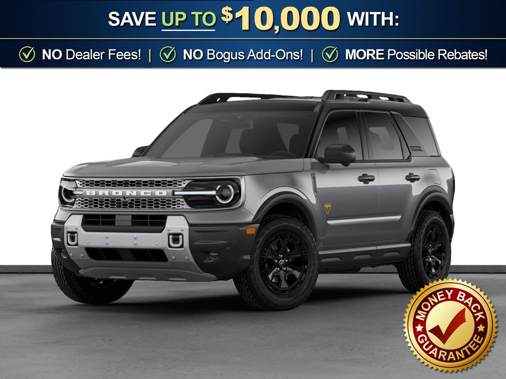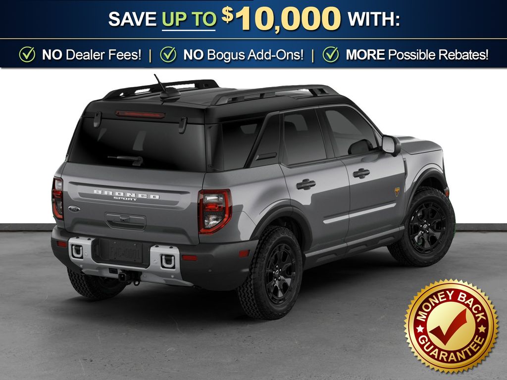 Carbonized Gray Metallic 2026 Ford Bronco Sport Badlands NFT 4WD 8-Speed Automatic EcoBoost 2.0L I4 GTDi DOHC Turbocharged VCT 2 Rear D-Ring Recovery Hooks, 4-Wheel Disc Brakes, 6 Speakers, 850W Engine Cooling Fan, ABS brakes, Air Conditioning, Alloy wheels, AM/FM radio: SiriusXM with 360L, AM/FM Stereo, Apple CarPlay/Android Auto, Auto High-beam Headlights, Auto-dimming Rear-View mirror, Automatic temperature control, Auxiliary Switches and Wiring, Badlands Tech Package, Brake assist, Compass, Connected Navigation (1-Year Included), Delay-off headlights, Driver door bin, Driver vanity mirror, Dual front impact airbags, Dual front side impact airbags, Electronic Stability Control, Emergency communication system: SYNC 4 911 Assist, Exterior Parking Camera Rear, Ford Connectivity Package (1-Year Included), Four wheel independent suspension, Front anti-roll bar, Front Bucket Seats, Front Center Armrest, Front fog lights, Front License Plate Bracket, Front reading lights, Fully automatic headlights, Heated door mirrors, Heated front seats, Heated steering wheel, High Clearance Fender Flares, HOSS 3.0 Off-Road Suspension, Illuminated entry, Internet access capable: 5G Modem - Ford Connectivity Package, Knee airbag, Leather-Trimmed Heated Front Sport Contour Bucket Seats, Low tire pressure warning, Memory seat, Noise Reduction Module, Occupant sensing airbag, Outside temperature display, Overhead airbag, Overhead console, Panic alarm, Passenger door bin, Passenger vanity mirror, Power door mirrors, Power driver seat, Power passenger seat, Power steering, Power windows, Radio data system, Radio: HD w/B&O Sound System by Bang & Olufsen, Rear anti-roll bar, Rear Black Bumpers with Steel Plates, Rear reading lights, Rear seat center armrest, Rear window defroster, Rear window wiper, Remote keyless entry, Sasquatch Badlands Package, Security system, SiriusXM with 360L, Speed control, Speed-sensing steering, Speed-Sensitive Wipers, Split folding rear seat, Steering wheel mounted audio controls, SYNC 4 with Enhanced Voice Recognition, Tachometer, Telescoping steering wheel, Tilt steering wheel, Traction control, Trip computer, Variably intermittent wipers, Wheels: 17" Ebony Black-Painted Aluminum, Wheels: 17" Matte Black-Painted Aluminum.