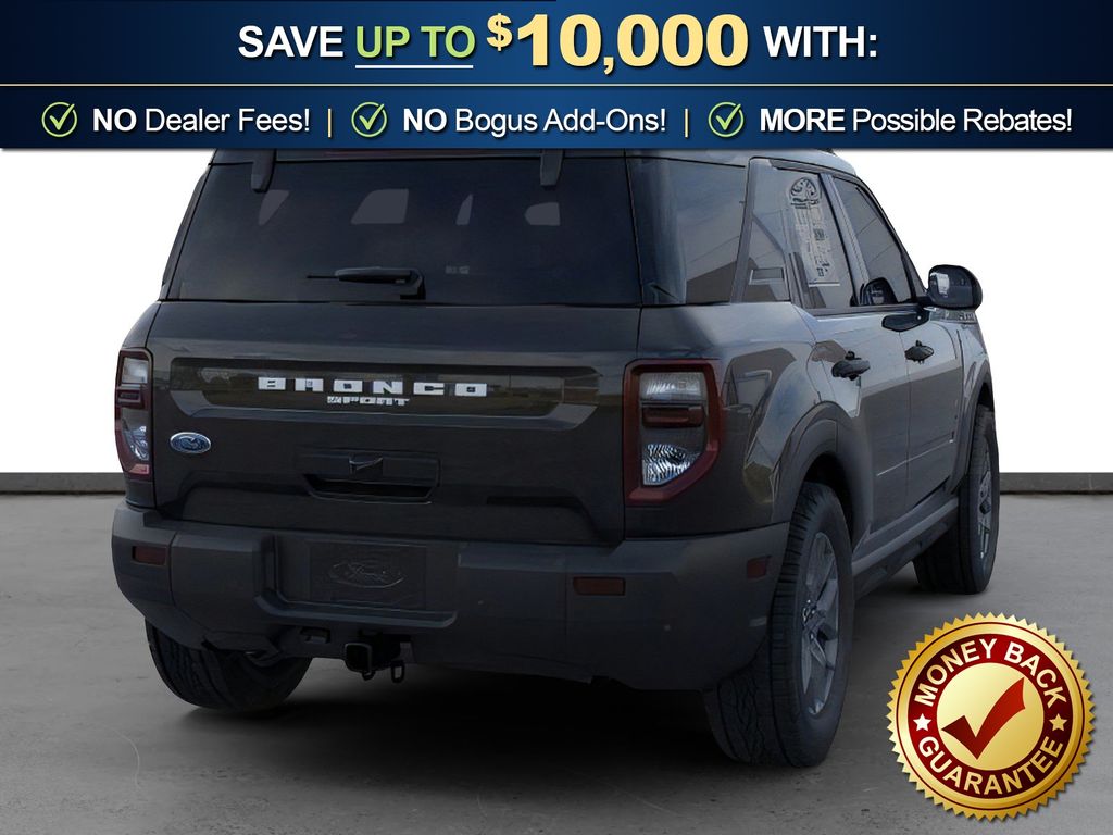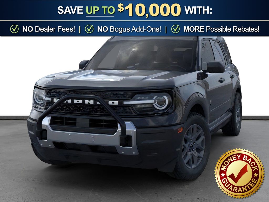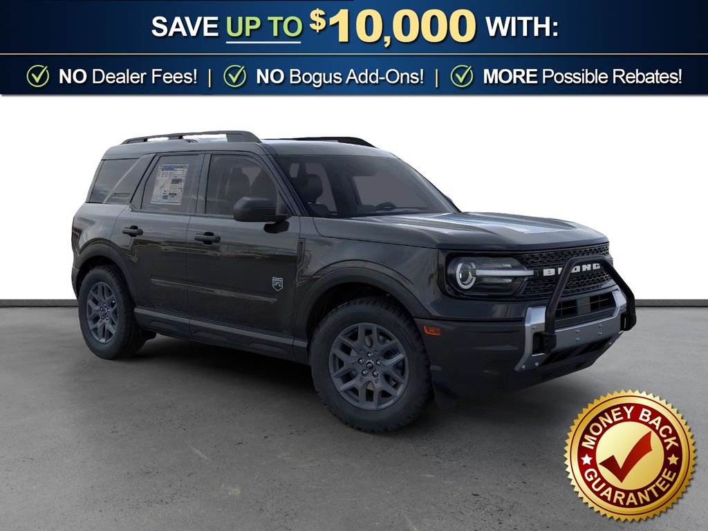 Shadow Black 2026 Ford Bronco Sport Big Bend FCT 4WD 8-Speed Automatic 1.5L EcoBoost 4-Wheel Disc Brakes, 400W Pro Power Onboard, 6 Speakers, ABS brakes, Air Conditioning, Alloy wheels, AM/FM radio: SiriusXM with 360L, AM/FM Stereo, Apple CarPlay/Android Auto, Auto High-beam Headlights, Automatic temperature control, Auxiliary Switches and Wiring, Black Diamond Off-Road Package, Brake assist, Class II Trailer Tow Package with Trailer Sway Control, Cloth with Easy-to-Clean Front Bucket Seats, Compass, Delay-off headlights, Driver door bin, Driver vanity mirror, Dual front impact airbags, Dual front side impact airbags, Electronic Stability Control, Emergency communication system: SYNC 4 911 Assist, Exterior Parking Camera Rear, Ford Connectivity Package (1-Year Included), Four wheel independent suspension, Front anti-roll bar, Front Black Molded-in-Color (MIC) Bumper, Front Brush Guard, Front Bucket Seats, Front Center Armrest, Front License Plate Bracket, Front reading lights, Fully automatic headlights, Heated door mirrors, Illuminated entry, Internet access capable: 5G Modem - Ford Connectivity Package, Knee airbag, Low tire pressure warning, Occupant sensing airbag, Outside temperature display, Overhead airbag, Overhead console, Panic alarm, Passenger door bin, Passenger vanity mirror, Power door mirrors, Power steering, Power windows, Radio data system, Rear anti-roll bar, Rear Parking Sensors, Rear reading lights, Rear seat center armrest, Rear window defroster, Rear window wiper, Remote keyless entry, Security system, SiriusXM with 360L, Speed control, Speed-sensing steering, Speed-Sensitive Wipers, Split folding rear seat, Steering wheel mounted audio controls, SYNC 4 with Enhanced Voice Recognition, Tachometer, Telescoping steering wheel, Tilt steering wheel, Traction control, Trip computer, Variably intermittent wipers, Wheels: 17" Carbonized Gray Painted Aluminum, Wheels: 17" Carbonized Gray-Painted Aluminum.