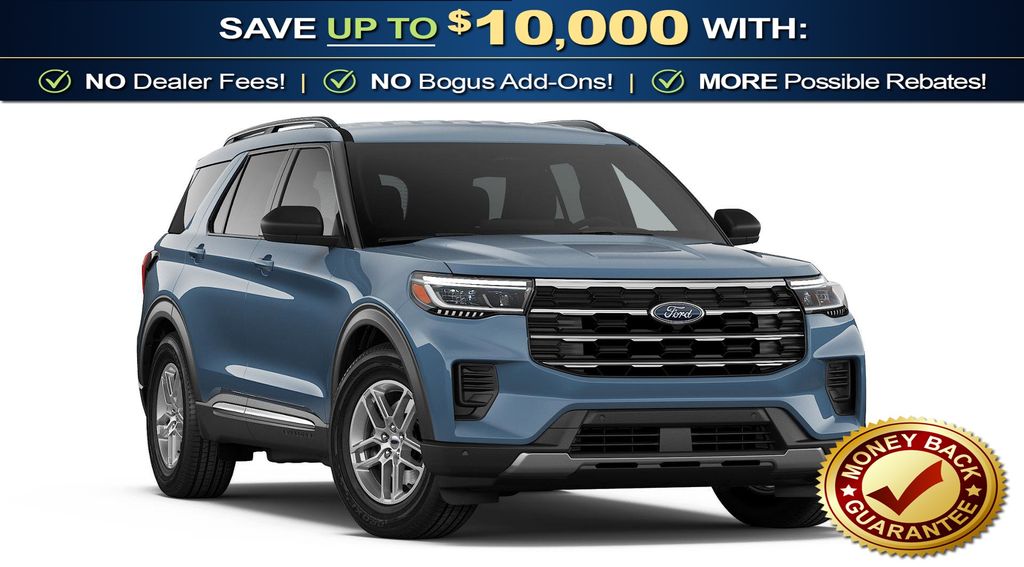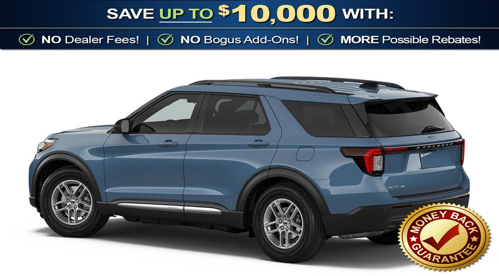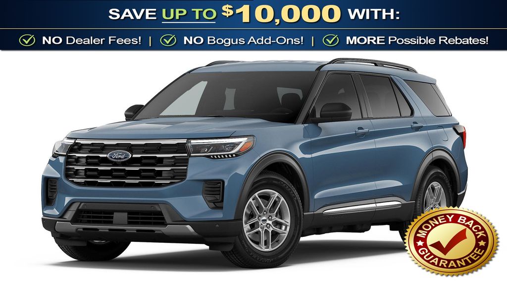 Vapor Blue Metallic 2026 Ford Explorer Active NFT RWD 10-Speed Automatic 2.3L EcoBoost I-4 2nd Row 35/30/35 Bench with E-Z Entry and Armrest, 3rd row seats: bench, 4-Wheel Disc Brakes, 6 Speakers, ABS brakes, Air Conditioning, Alloy wheels, AM/FM radio: SiriusXM with 360L, AM/FM Stereo, Apple CarPlay/Android Auto, Auto High-beam Headlights, Automatic temperature control, Brake assist, Bumpers: body-color, Compass, Delay-off headlights, Driver door bin, Driver vanity mirror, Dual front impact airbags, Dual front side impact airbags, Electronic Stability Control, Emergency communication system: 911 Assist, Exterior Parking Camera Rear, Four wheel independent suspension, Front anti-roll bar, Front Bucket Seats, Front Center Armrest, Front dual zone A/C, Front License Plate Bracket, Front reading lights, Fully automatic headlights, Heated door mirrors, Illuminated entry, Knee airbag, Low tire pressure warning, Navigation System, Occupant sensing airbag, Outside temperature display, Overhead airbag, Overhead console, Panic alarm, Passenger door bin, Passenger vanity mirror, Power door mirrors, Power driver seat, Power steering, Power windows, Rear air conditioning, Rear anti-roll bar, Rear reading lights, Rear window defroster, Rear window wiper, Remote keyless entry, Security system, Speed control, Speed-sensing steering, Speed-Sensitive Wipers, Split folding rear seat, Spoiler, Steering wheel mounted audio controls, Tachometer, Telescoping steering wheel, Tilt steering wheel, Traction control, Trip computer, Variably intermittent wipers, Wheels: 18" Sparkle Silver-Painted Aluminum.