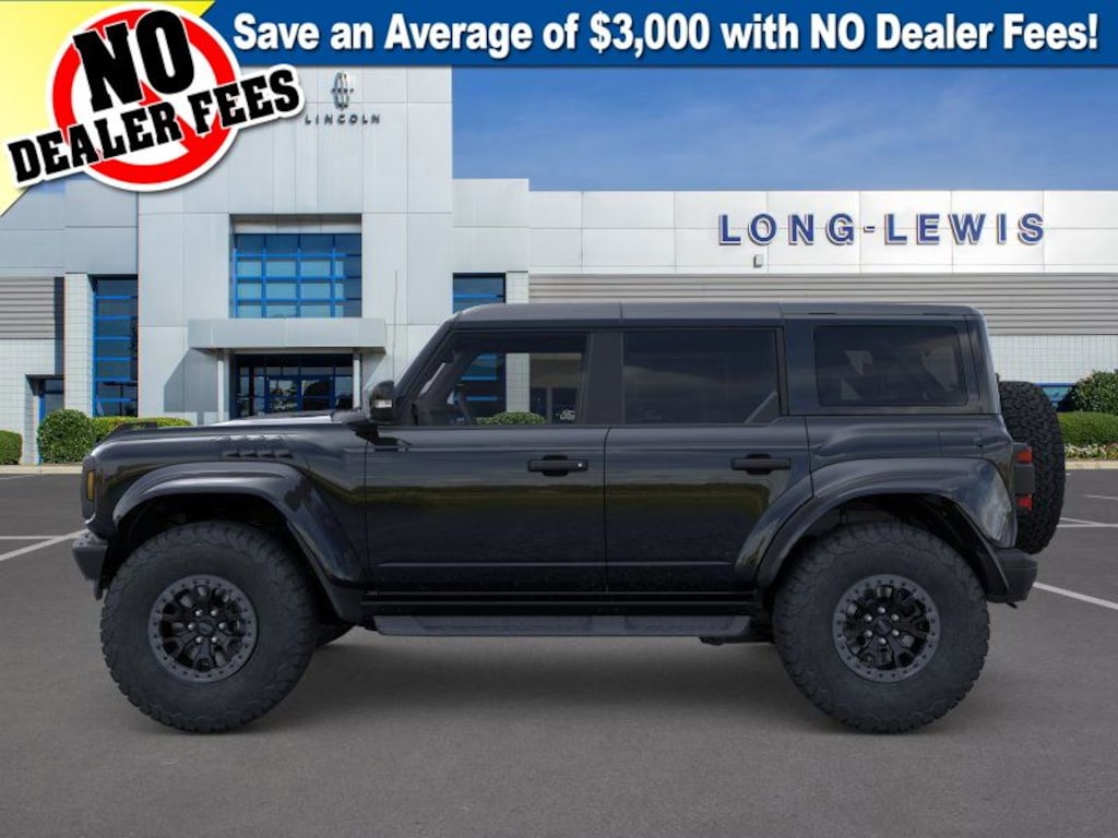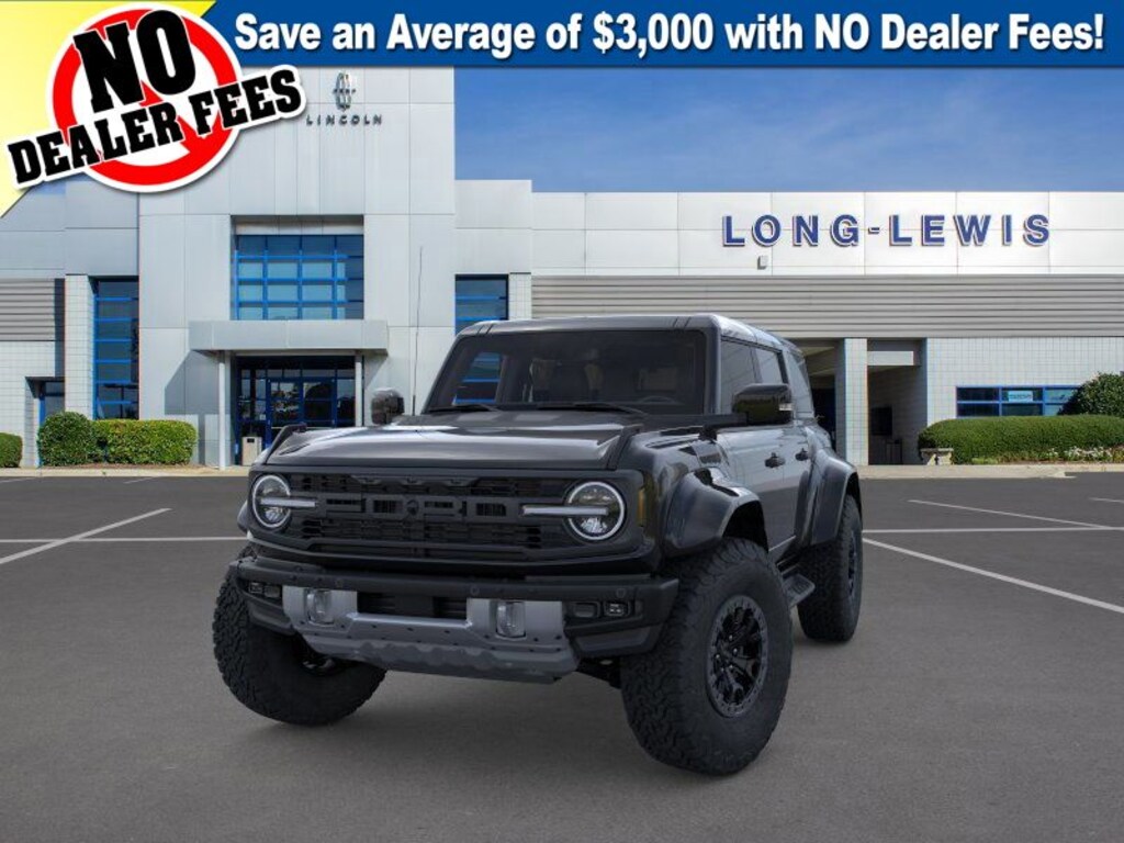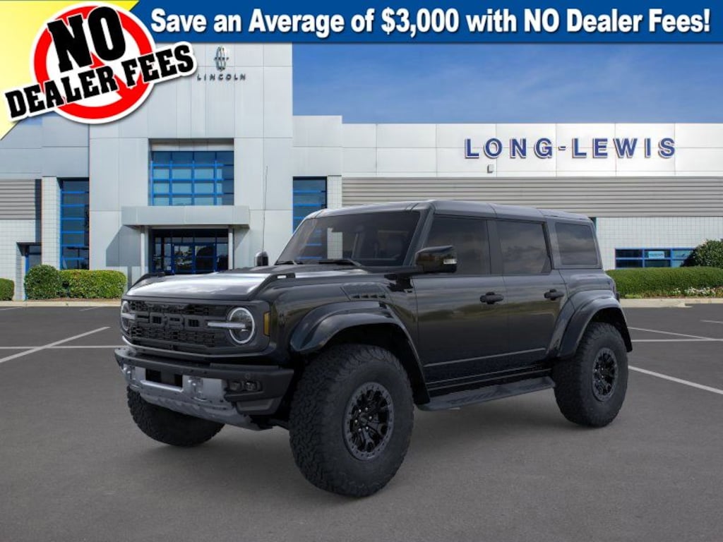 Dealer Discount of $5,131 off MSRP Shadow Black 2025 Ford Bronco Raptor 4WD 10-Speed Automatic 3.0L EcoBoost V6 12 Speakers, 4-Wheel Disc Brakes, ABS brakes, Air Conditioning, Alloy wheels, AM/FM radio: SiriusXM with 360L, Auto High-beam Headlights, Auto-dimming Rear-View mirror, Automatic temperature control, Brake assist, Compass, Connected Navigation, Convertible HardTop, Convertible roof lining, Delay-off headlights, Driver door bin, Driver vanity mirror, Dual front impact airbags, Dual front side impact airbags, Electronic Stability Control, Emergency communication system: 911 Assist, Equipment Group 374A Lux Package, Exterior Parking Camera Rear, Front anti-roll bar, Front Bucket Seats, Front Center Armrest, Front dual zone A/C, Front fog lights, Front License Plate Bracket, Front reading lights, Front wheel independent suspension, Fully automatic headlights, Garage door transmitter, Glass rear window, Gloss Black Sideview Mirror Skull Caps, Hard Top Sound Deadening Headliner, Heated door mirrors, Heated front seats, Heated steering wheel, Illuminated entry, Integrated roll-over protection, Interior Carbon Fiber Pack, Leather Shift Knob, Leather-Trimmed/Vinyl Bucket Seats, Low tire pressure warning, Marine Grade Vinyl Bucket Seats, Navigation system: Connected Navigation, Occupant sensing airbag, Outside temperature display, Overhead airbag, Overhead console, Panic alarm, Passenger door bin, Passenger vanity mirror, Power door mirrors, Power steering, Power windows, Radio data system, Radio: B&O Sound System by Bang & Olufsen, Raptor Shadow Black Appearance Package, Rear anti-roll bar, Rear seat center armrest, Rear window defroster, Rear window wiper, Rear-Window Defroster & Washer, Remote keyless entry, Security system, Shadow Black Painted Hard Top, SiriusXM w/360L, Speed control, Split folding rear seat, Steering wheel mounted audio controls, SYNC 4, Tachometer, Telescoping steering wheel, Tilt steering wheel, Traction control, Trip computer, Turn signal indicator mirrors, Variably intermittent wipers, Voltmeter, Wheels: 17" Black High Gloss-Painted Aluminum, Wheels: 17" Dark Carbonized Gray Alloy Painted.