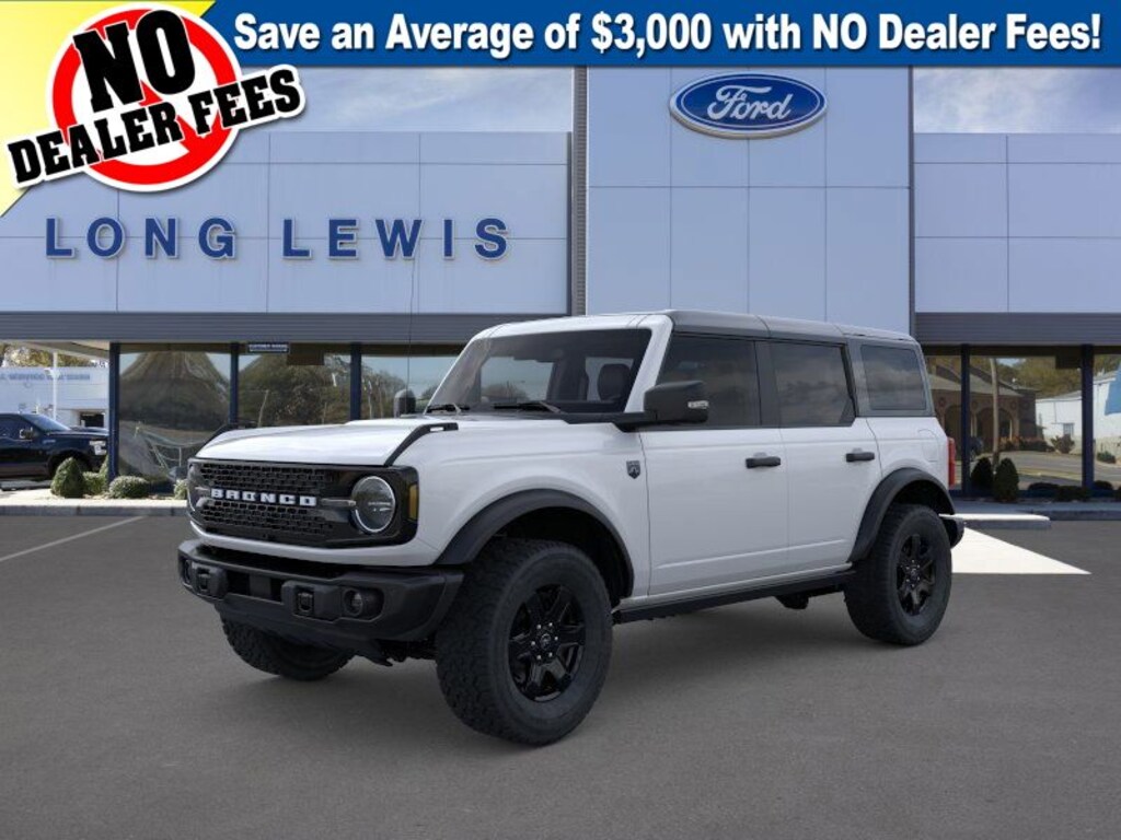 Oxford White 2025 Ford Bronco Big Bend 4WD 10-Speed Automatic 2.3L EcoBoost I-4 4-Wheel Disc Brakes, 7 Speakers, ABS brakes, Air Conditioning, Alloy wheels, AM/FM radio: SiriusXM with 360L, AM/FM Stereo, Auto High-beam Headlights, Auxiliary Switches, Black Appearance Package, Black Diamond Package, Black Molded-In-Color Door Handles, Black Molded-In-Color Fender Flares, Black Molded-In-Color Sideview Mirror Caps, Black-Painted Molded-In-Color Grille, Brake assist, Cloth Bucket Seats, Compass, Delay-off headlights, Driver door bin, Driver vanity mirror, Dual front impact airbags, Dual front side impact airbags, Electronic Stability Control, Emergency communication system: 911 Assist, Exterior Parking Camera Rear, Front anti-roll bar, Front Bucket Seats, Front Center Armrest, Front License Plate Bracket, Front reading lights, Front wheel independent suspension, Fully automatic headlights, Hard Top Sound Deadening Headliner, Heated door mirrors, Illuminated entry, Integrated roll-over protection, Leather Shift Knob, LED Fog Lamps, Low tire pressure warning, Occupant sensing airbag, Outside temperature display, Overhead airbag, Overhead console, Panic alarm, Passenger door bin, Passenger vanity mirror, Powder Coated Steel Front & Rear Bumpers, Power door mirrors, Power steering, Power windows, Radio data system, Rear-Window Defroster & Washer, Remote keyless entry, Rock Rails, Security system, Shadow Black Painted Hard Top, SiriusXM w/360L, Speed control, Split folding rear seat, Steering wheel mounted audio controls, SYNC 4, Tachometer, Telescoping steering wheel, Tilt steering wheel, Traction control, Trip computer, Variably intermittent wipers, Washout Capable Rubberized Flooring, Wheels: 17" Black High Gloss Painted Aluminum, Wheels: 17" Carbonized Gray-Painted Aluminum.