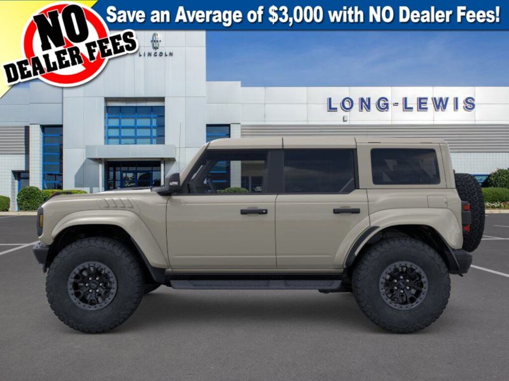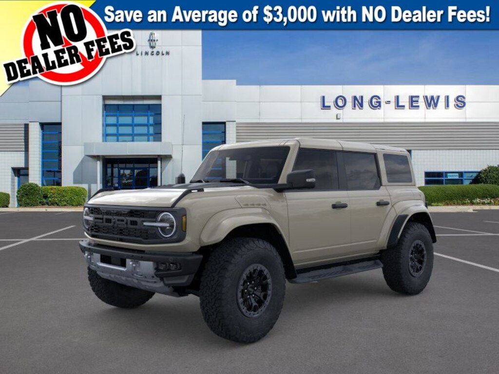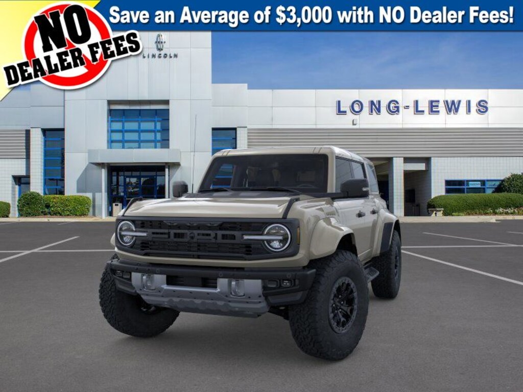 Dealer Discount of $4,712 off MSRP Desert Sand 2025 Ford Bronco Raptor 4WD 10-Speed Automatic 3.0L EcoBoost V6 12 Speakers, 4-Wheel Disc Brakes, ABS brakes, Air Conditioning, Alloy wheels, AM/FM radio: SiriusXM with 360L, Auto High-beam Headlights, Auto-dimming Rear-View mirror, Automatic temperature control, Body Color-Painted Hard Top, Brake assist, Compass, Connected Navigation, Convertible HardTop, Convertible roof lining, Delay-off headlights, Driver door bin, Driver vanity mirror, Dual front impact airbags, Dual front side impact airbags, Electronic Stability Control, Emergency communication system: 911 Assist, Equipment Group 374A Lux Package, Exterior Parking Camera Rear, Front anti-roll bar, Front Bucket Seats, Front Center Armrest, Front dual zone A/C, Front fog lights, Front License Plate Bracket, Front reading lights, Front wheel independent suspension, Fully automatic headlights, Garage door transmitter, Glass rear window, Hard Top Sound Deadening Headliner, Heated door mirrors, Heated front seats, Heated steering wheel, Illuminated entry, Integrated roll-over protection, Leather Shift Knob, Leather-Trimmed/Vinyl Bucket Seats, Low tire pressure warning, Marine Grade Vinyl Bucket Seats, Navigation system: Connected Navigation, Occupant sensing airbag, Outside temperature display, Overhead airbag, Overhead console, Panic alarm, Passenger door bin, Passenger vanity mirror, Power door mirrors, Power steering, Power windows, Radio data system, Radio: B&O Sound System by Bang & Olufsen, Rear anti-roll bar, Rear seat center armrest, Rear window defroster, Rear window wiper, Rear-Window Defroster & Washer, Remote keyless entry, Security system, SiriusXM w/360L, Speed control, Split folding rear seat, Steering wheel mounted audio controls, SYNC 4, Tachometer, Telescoping steering wheel, Tilt steering wheel, Traction control, Trip computer, Turn signal indicator mirrors, Variably intermittent wipers, Voltmeter, Wheels: 17" Black High Gloss-Painted Aluminum, Wheels: 17" Dark Carbonized Gray Alloy Painted.