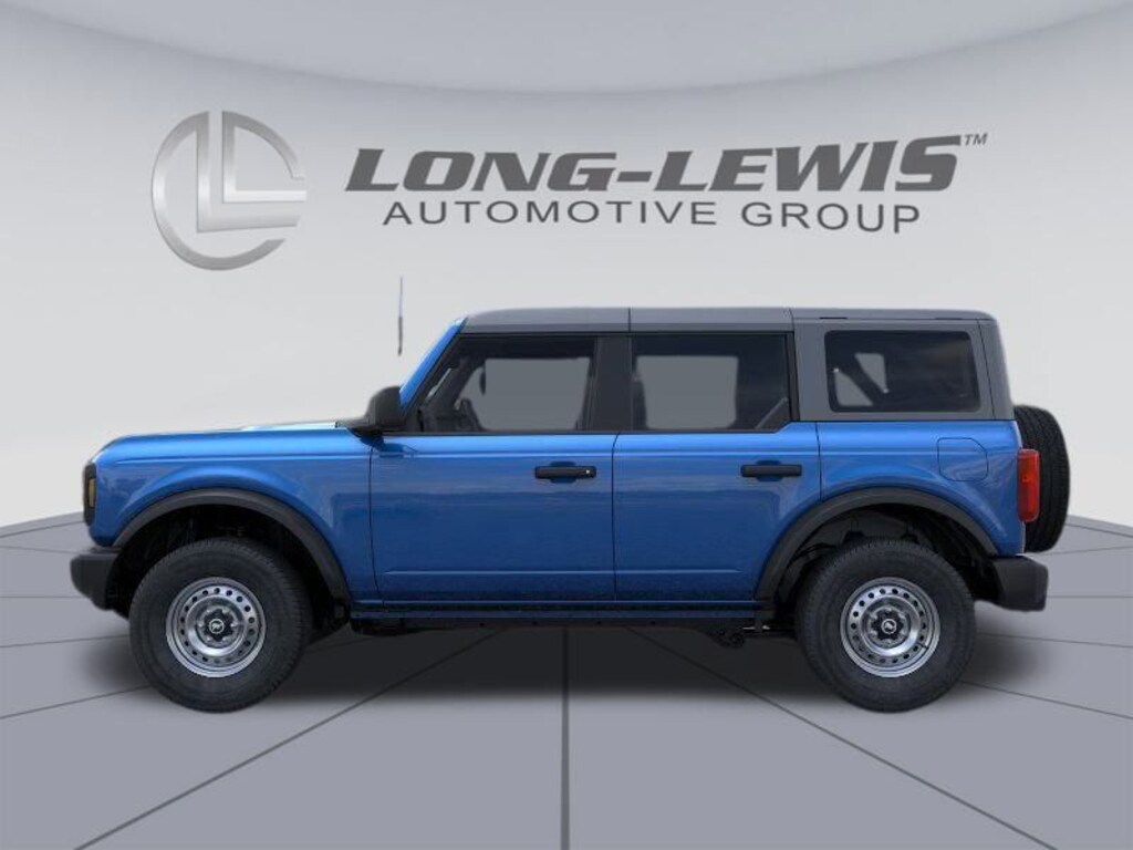Velocity Blue Metallic 2025 Ford Bronco 4WD 10-Speed Automatic 2.3L EcoBoost I-4 4-Wheel Disc Brakes, 4.46 Axle Ratio, 7 Speakers, ABS brakes, Air Conditioning, AM/FM radio: SiriusXM with 360L, AM/FM Stereo, Auto High-beam Headlights, Brake assist, Carbonized Gray Molded-In-Color Hard Top, Cloth Bucket Seats, Compass, Delay-off headlights, Driver door bin, Driver vanity mirror, Dual front impact airbags, Dual front side impact airbags, Electronic Stability Control, Emergency communication system: 911 Assist, Exterior Parking Camera Rear, Front anti-roll bar, Front Bucket Seats, Front Center Armrest, Front License Plate Bracket, Front reading lights, Front wheel independent suspension, Fully automatic headlights, Hard Top Sound Deadening Headliner, Heated door mirrors, Illuminated entry, Integrated roll-over protection, Low tire pressure warning, Occupant sensing airbag, Outside temperature display, Overhead airbag, Overhead console, Panic alarm, Passenger door bin, Passenger vanity mirror, Power door mirrors, Power steering, Power windows, Radio data system, Rear-Window Defroster & Washer, Remote keyless entry, Security system, SiriusXM w/360L, Speed control, Split folding rear seat, Steering wheel mounted audio controls, SYNC 4, Tachometer, Telescoping steering wheel, Tilt steering wheel, Traction control, Trip computer, Variably intermittent wipers, Wheels: 16" Bright Polished Silver-Painted Steel.