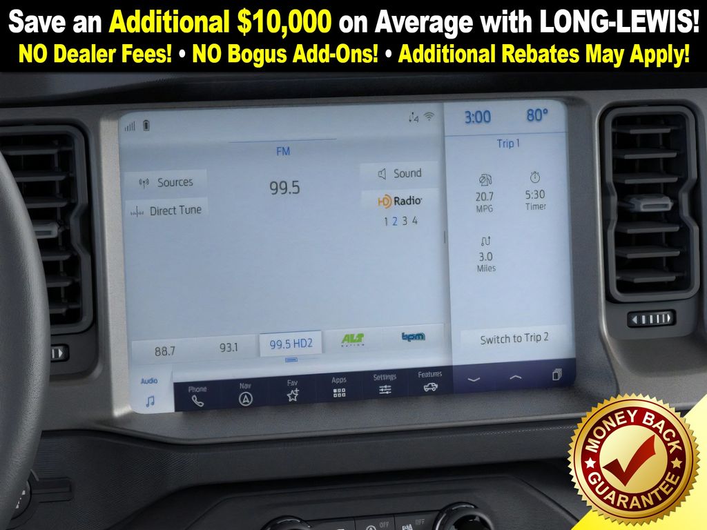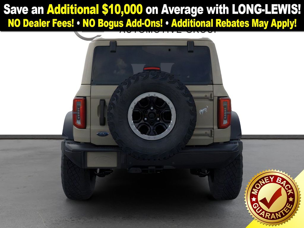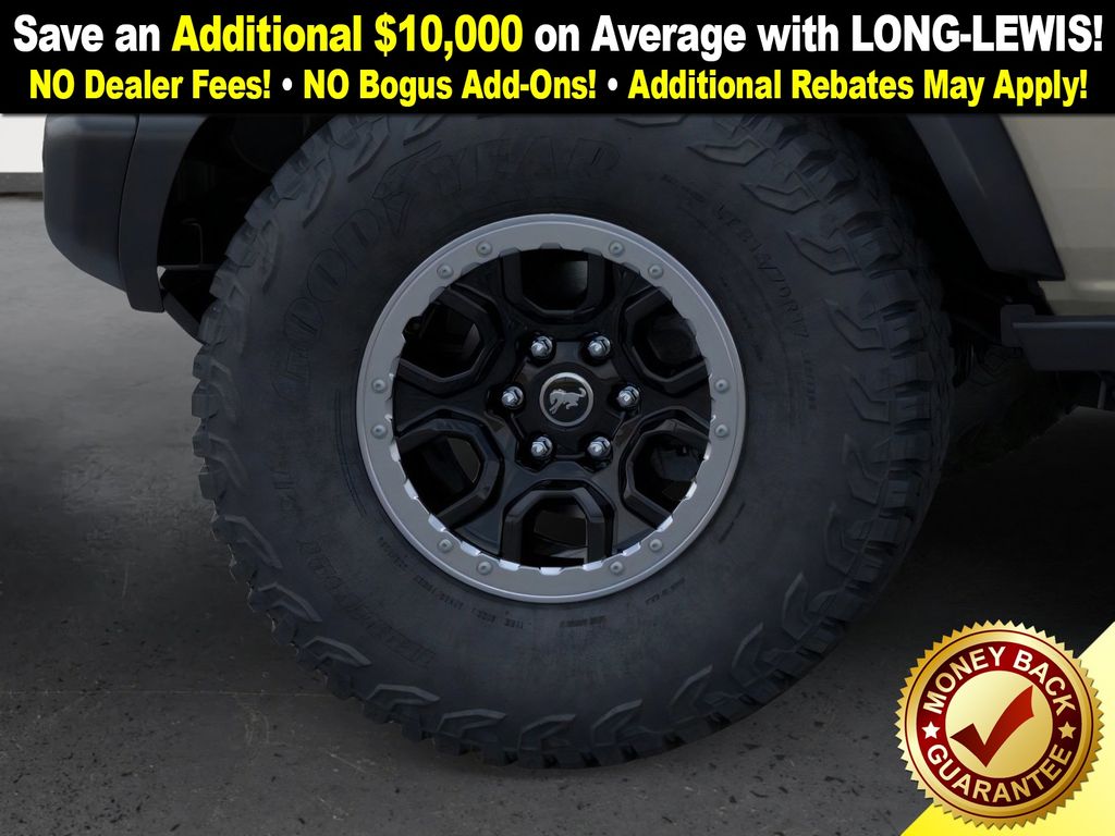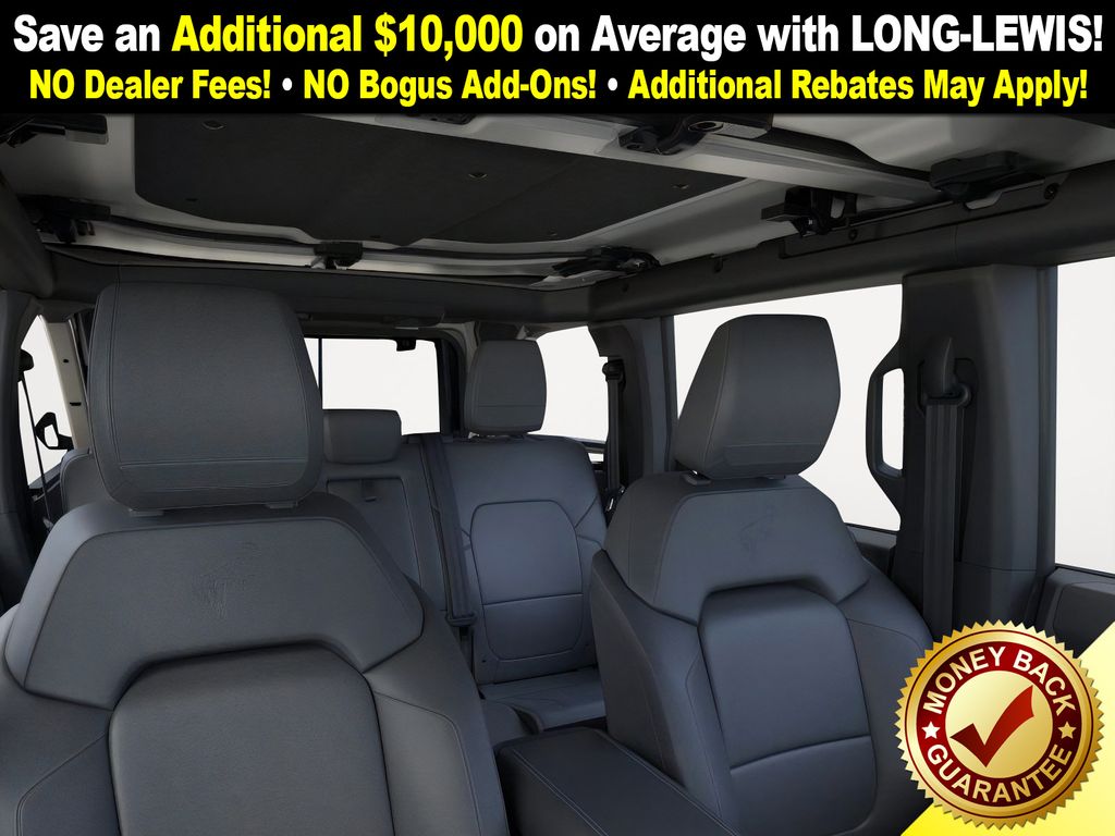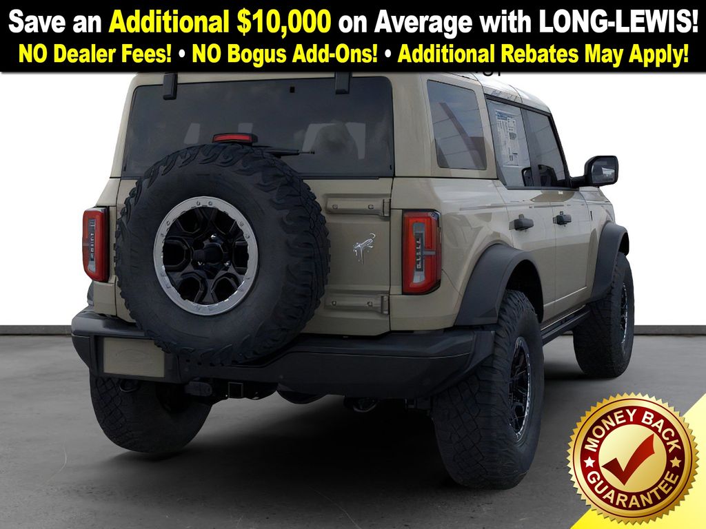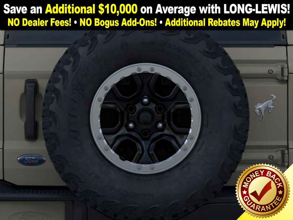 Desert Sand 2025 Ford Bronco Badlands FCT 4WD 10-Speed Automatic 2.7L EcoBoost V6 4-Wheel Disc Brakes, 7 Speakers, ABS brakes, Air Conditioning, Alloy wheels, AM/FM radio: SiriusXM with 360L, AM/FM Stereo, Auto High-beam Headlights, Auto-dimming Rear-View mirror, Body Color-Painted Hard Top, Brake assist, Compass, Delay-off headlights, Driver door bin, Driver vanity mirror, Dual front impact airbags, Dual front side impact airbags, Electronic Stability Control, Emergency communication system: 911 Assist, Exterior Parking Camera Rear, Front anti-roll bar, Front Bucket Seats, Front Center Armrest, Front fog lights, Front License Plate Bracket, Front reading lights, Front wheel independent suspension, Fully automatic headlights, Hard Top Sound Deadening Headliner, Heated door mirrors, Heated front seats, Heated steering wheel, High Clearance Fender Flares, High Clearance Suspension, Illuminated entry, Integrated roll-over protection, Internet access capable: FordPass Connect, Leather Shift Knob, Low tire pressure warning, Marine Grade Vinyl Heated Bucket Seats, Occupant sensing airbag, Outside temperature display, Overhead airbag, Overhead console, Panic alarm, Passenger door bin, Passenger vanity mirror, Position-Sensitive Bilstein Shock Absorbers, Power door mirrors, Power steering, Power windows, Radio data system, Rear-Window Defroster & Washer, Remote keyless entry, Sasquatch Package, Security system, SiriusXM w/360L, Speed control, Split folding rear seat, Steering wheel mounted audio controls, SYNC 4, Tachometer, Telescoping steering wheel, Tilt steering wheel, Traction control, Trip computer, Variably intermittent wipers, Voltmeter, Wheels: 17" Black High Gloss-Painted Aluminum (64X), Wheels: 17" Carbonized Gray Painted Aluminum, Wheels: 17" Carbonized Gray-Painted Aluminum.