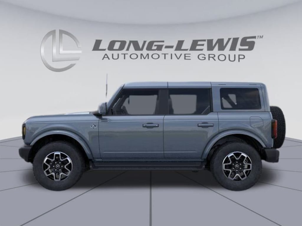 Azure Gray Metallic Tri-Coat 2025 Ford Bronco Outer Banks 4WD 10-Speed Automatic 2.7L EcoBoost V6 18" Bright Machined Aluminum Wheels, 3.73 Axle Ratio, 4-Wheel Disc Brakes, 7 Speakers, ABS brakes, Air Conditioning, Alloy wheels, AM/FM radio: SiriusXM with 360L, AM/FM Stereo, Auto High-beam Headlights, Auto-dimming Rear-View mirror, Automatic temperature control, Brake assist, Compass, Connected Navigation, Delay-off headlights, Driver door bin, Driver vanity mirror, Dual front impact airbags, Dual front side impact airbags, Electronic Stability Control, Emergency communication system: 911 Assist, Exterior Parking Camera Rear, Front anti-roll bar, Front Bucket Seats, Front Center Armrest, Front dual zone A/C, Front fog lights, Front reading lights, Front wheel independent suspension, Fully automatic headlights, Heated door mirrors, Heated front seats, Heated Leather-Trimmed/Vinyl Bucket Seats, Heated steering wheel, Illuminated entry, Integrated roll-over protection, Leather Shift Knob, Low tire pressure warning, Navigation system: Connected Navigation, Occupant sensing airbag, Outside temperature display, Overhead airbag, Overhead console, Panic alarm, Passenger door bin, Passenger vanity mirror, Power door mirrors, Power driver seat, Power passenger seat, Power steering, Power windows, Radio data system, Rear seat center armrest, Remote keyless entry, Security system, SiriusXM w/360L, Speed control, Split folding rear seat, Steering wheel mounted audio controls, SYNC 4, Tachometer, Telescoping steering wheel, Tilt steering wheel, Traction control, Trip computer, Variably intermittent wipers, Voltmeter.