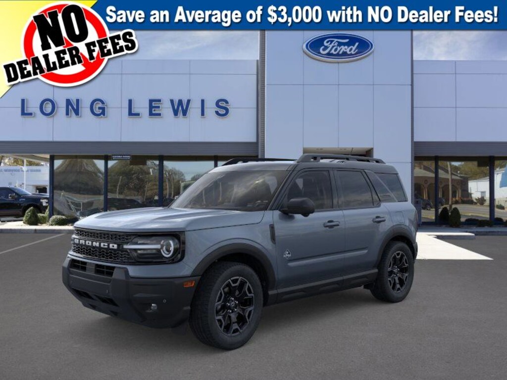 Azure Gray Metallic Tri-Coat 2025 Ford Bronco Sport Outer Banks 4WD 8-Speed Automatic 1.5L EcoBoost 360-Degree Camera w/Trail & Split View, 4-Wheel Disc Brakes, 6 Speakers, ABS brakes, Air Conditioning, Alloy wheels, AM/FM radio: SiriusXM, AM/FM Stereo, Auto High-beam Headlights, Auto-dimming Rear-View mirror, Automatic temperature control, B&O Sound System by Bang & Olufsen, Brake assist, Compass, Connected Navigation, Delay-off headlights, Driver door bin, Driver vanity mirror, Dual front impact airbags, Dual front side impact airbags, Electronic Stability Control, Emergency communication system: SYNC 4 911 Assist, Four wheel independent suspension, Front anti-roll bar, Front Bucket Seats, Front Center Armrest, Front Driver/Passenger Seat Back Map Pockets, Front dual zone A/C, Front fog lights, Front License Plate Bracket, Front Parking Sensors, Front reading lights, Fully automatic headlights, Garage door transmitter, HD Radio, Heated door mirrors, Heated front seats, Heated steering wheel, Illuminated entry, Knee airbag, Low tire pressure warning, Memory seat, Occupant sensing airbag, Outer Banks Tech Package+, Outside temperature display, Overhead airbag, Overhead console, Panic alarm, Passenger door bin, Passenger vanity mirror, Power door mirrors, Power driver seat, Power passenger seat, Power steering, Power windows, Premium Trimmed Front Bucket Seats w/Ebony/Roast, Premium Trimmed Front Bucket Seats w/Platinum Blue, Radio data system, Rain sensing wipers, Rear anti-roll bar, Rear Parking Sensors, Rear reading lights, Rear seat center armrest, Rear window defroster, Rear window wiper, Remote keyless entry, Reverse Brake Assist, Security system, SiriusXM, Speed control, Speed-sensing steering, Speed-Sensitive Wipers, Split folding rear seat, Steering wheel mounted audio controls, SYNC 4 w/Enhanced Voice Recognition, Tachometer, Telescoping steering wheel, Tilt steering wheel, Traction control, Trip computer, Variably intermittent wipers, Wheels: 18" Ebony Black-Painted Aluminum.