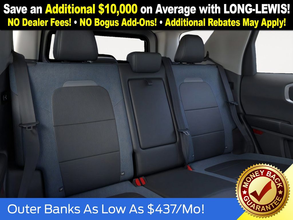Azure Gray Metallic Tri-Coat 2025 Ford Bronco Sport Outer Banks NFT 4WD 8-Speed Automatic 1.5L EcoBoost 360-Degree Camera w/Trail & Split View, 4-Wheel Disc Brakes, 6 Speakers, ABS brakes, Air Conditioning, Alloy wheels, AM/FM radio: SiriusXM, AM/FM Stereo, Auto High-beam Headlights, Auto-dimming Rear-View mirror, Automatic temperature control, B&O Sound System by Bang & Olufsen, Brake assist, Compass, Connected Navigation, Delay-off headlights, Driver door bin, Driver vanity mirror, Dual front impact airbags, Dual front side impact airbags, Electronic Stability Control, Emergency communication system: SYNC 4 911 Assist, Four wheel independent suspension, Front anti-roll bar, Front Bucket Seats, Front Center Armrest, Front Driver/Passenger Seat Back Map Pockets, Front dual zone A/C, Front fog lights, Front License Plate Bracket, Front Parking Sensors, Front reading lights, Fully automatic headlights, Garage door transmitter, HD Radio, Heated door mirrors, Heated front seats, Heated steering wheel, Illuminated entry, Knee airbag, Low tire pressure warning, Memory seat, Occupant sensing airbag, Outer Banks Tech Package+, Outside temperature display, Overhead airbag, Overhead console, Panic alarm, Passenger door bin, Passenger vanity mirror, Power door mirrors, Power driver seat, Power passenger seat, Power steering, Power windows, Premium Trimmed Front Bucket Seats w/Ebony/Roast, Premium Trimmed Front Bucket Seats w/Platinum Blue, Radio data system, Rain sensing wipers, Rear anti-roll bar, Rear Parking Sensors, Rear reading lights, Rear seat center armrest, Rear window defroster, Rear window wiper, Remote keyless entry, Reverse Brake Assist, Security system, SiriusXM, Speed control, Speed-sensing steering, Speed-Sensitive Wipers, Split folding rear seat, Steering wheel mounted audio controls, SYNC 4 w/Enhanced Voice Recognition, Tachometer, Telescoping steering wheel, Tilt steering wheel, Traction control, Trip computer, Variably intermittent wipers, Wheels: 18" Ebony Black-Painted Aluminum.