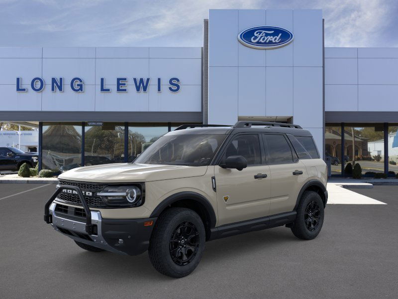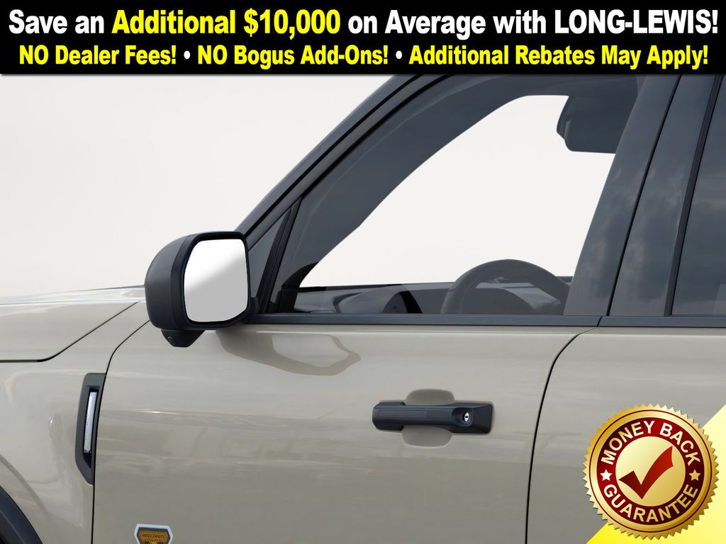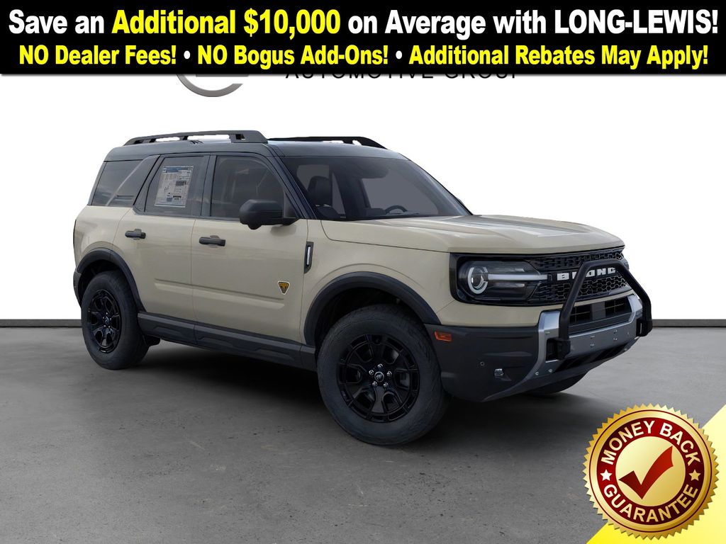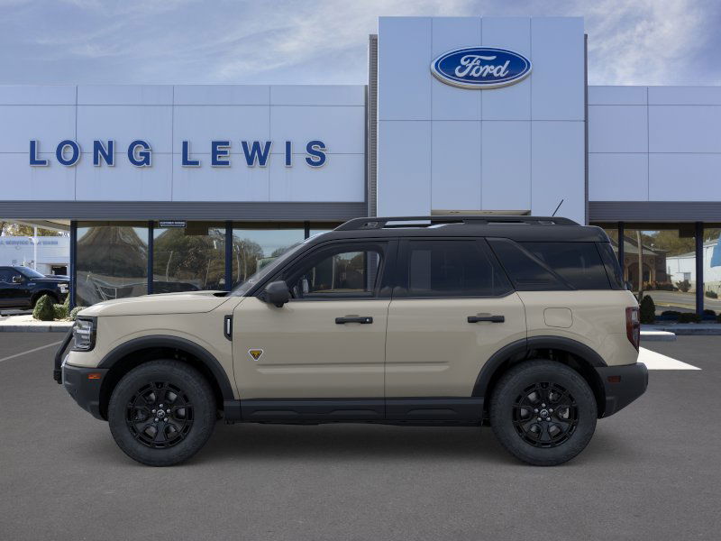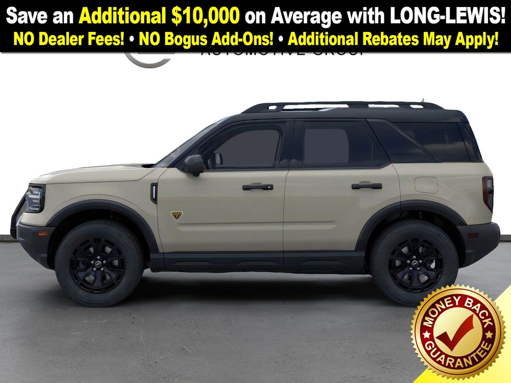 Desert Sand 2025 Ford Bronco Sport Badlands fctp 4WD 8-Speed Automatic EcoBoost 2.0L I4 GTDi DOHC Turbocharged VCT 4-Wheel Disc Brakes, 6 Speakers, 850W Engine Cooling Fan, ABS brakes, Air Conditioning, Alloy wheels, AM/FM radio: SiriusXM, AM/FM Stereo, Auto High-beam Headlights, Auto-dimming Rear-View mirror, Automatic temperature control, Auxiliary Switches & Wiring, B&O Sound System by Bang & Olufsen, Badlands Tech Package, Brake assist, Brush Guard, Compass, Connected Navigation, Delay-off headlights, Driver door bin, Driver vanity mirror, Dual front impact airbags, Dual front side impact airbags, Electronic Stability Control, Emergency communication system: SYNC 4 911 Assist, Fender Tie Downs, Four wheel independent suspension, Front anti-roll bar, Front Bucket Seats, Front Center Armrest, Front fog lights, Front License Plate Bracket, Front reading lights, Fully automatic headlights, Garage door transmitter, HD Radio, Heated door mirrors, Heated front seats, Heated steering wheel, High Clearance Fender Flares, HOSS 3.0 Off-Road Suspension, Illuminated entry, Knee airbag, Leather Trimmed Front Bucket Seats, Low tire pressure warning, Memory seat, Occupant sensing airbag, Outside temperature display, Overhead airbag, Overhead console, Panic alarm, Passenger door bin, Passenger vanity mirror, Power door mirrors, Power driver seat, Power Moonroof, Power passenger seat, Power steering, Power windows, Radio data system, Rear anti-roll bar, Rear Black Bumpers, Rear reading lights, Rear seat center armrest, Rear window defroster, Rear window wiper, Recovery Hooks, Remote keyless entry, Sasquatch Badlands Package, Security system, SiriusXM, Speed control, Speed-sensing steering, Speed-Sensitive Wipers, Split folding rear seat, Steering wheel mounted audio controls, SYNC 4 w/Enhanced Voice Recognition, Tachometer, Telescoping steering wheel, Tilt steering wheel, Traction control, Trip computer, Variably intermittent wipers, Wheels: 17" Ebony Black-Painted Aluminum, Wheels: 17" Matte Black-Painted Aluminum.