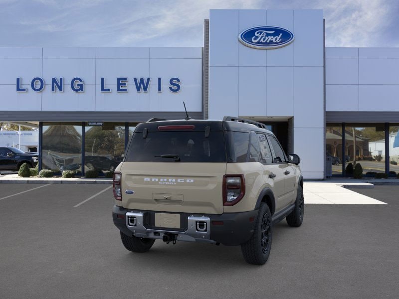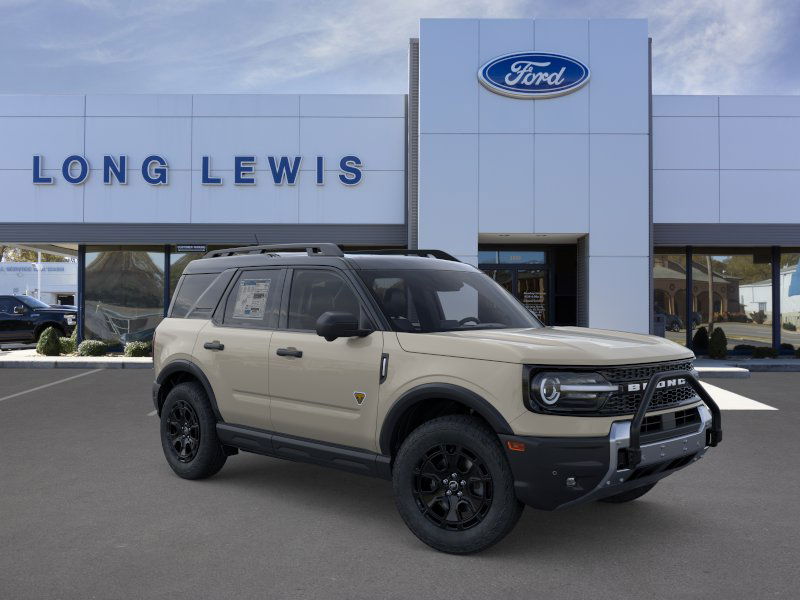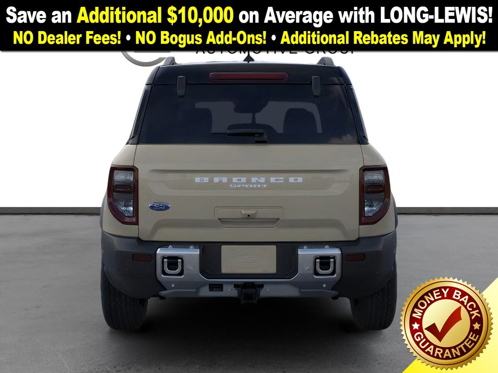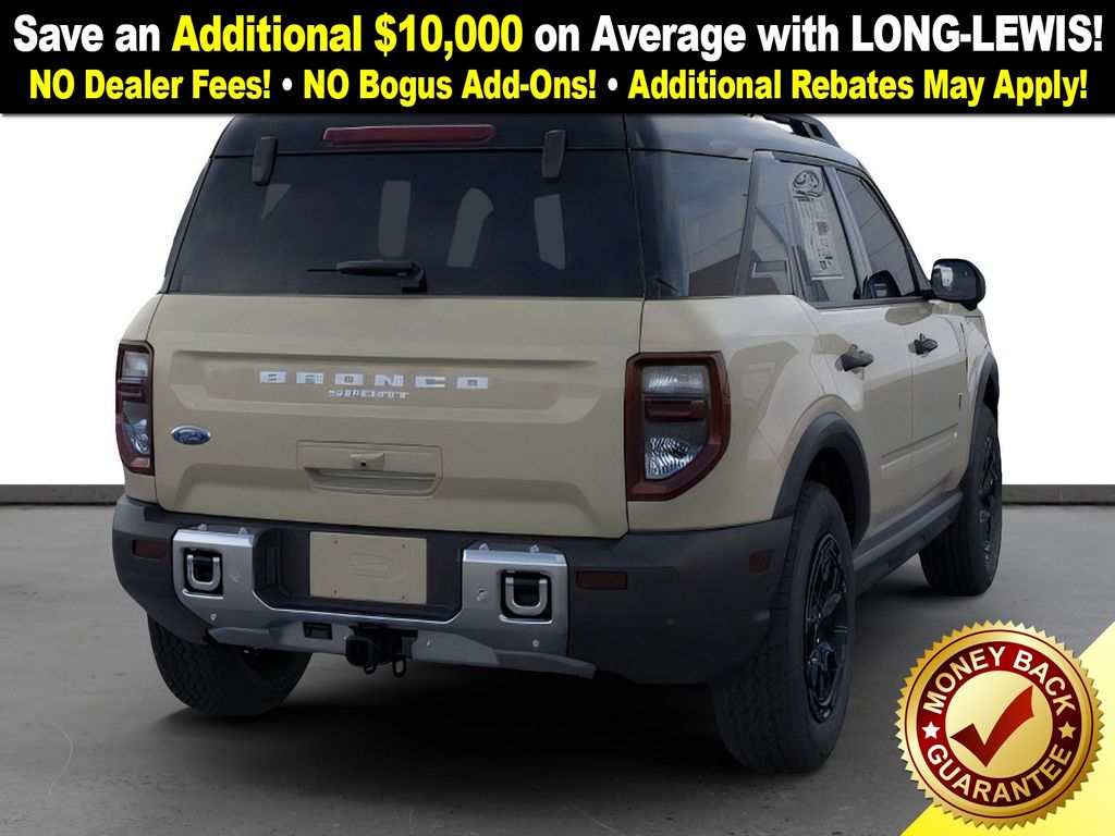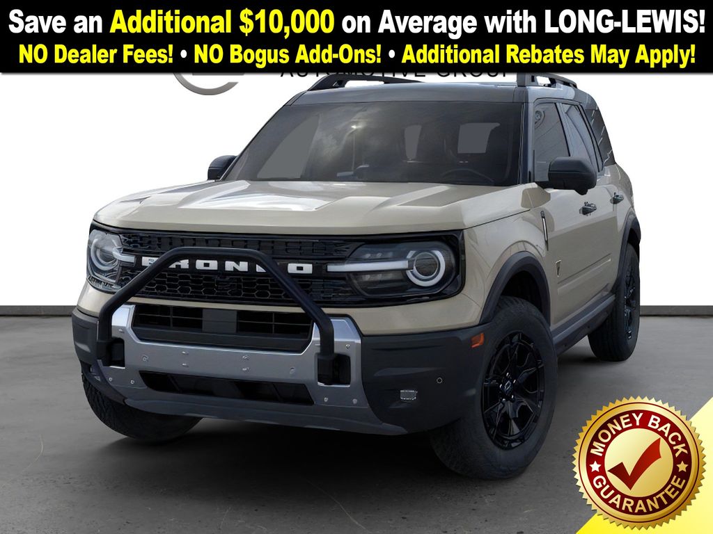 Desert Sand 2025 Ford Bronco Sport Badlands fctp 4WD 8-Speed Automatic EcoBoost 2.0L I4 GTDi DOHC Turbocharged VCT 4-Wheel Disc Brakes, 6 Speakers, 850W Engine Cooling Fan, ABS brakes, Air Conditioning, Alloy wheels, AM/FM radio: SiriusXM, AM/FM Stereo, Auto High-beam Headlights, Auto-dimming Rear-View mirror, Automatic temperature control, Auxiliary Switches & Wiring, B&O Sound System by Bang & Olufsen, Badlands Tech Package, Brake assist, Brush Guard, Compass, Connected Navigation, Delay-off headlights, Driver door bin, Driver vanity mirror, Dual front impact airbags, Dual front side impact airbags, Electronic Stability Control, Emergency communication system: SYNC 4 911 Assist, Fender Tie Downs, Four wheel independent suspension, Front anti-roll bar, Front Bucket Seats, Front Center Armrest, Front fog lights, Front License Plate Bracket, Front reading lights, Fully automatic headlights, Garage door transmitter, HD Radio, Heated door mirrors, Heated front seats, Heated steering wheel, High Clearance Fender Flares, HOSS 3.0 Off-Road Suspension, Illuminated entry, Knee airbag, Leather Trimmed Front Bucket Seats, Low tire pressure warning, Memory seat, Occupant sensing airbag, Outside temperature display, Overhead airbag, Overhead console, Panic alarm, Passenger door bin, Passenger vanity mirror, Power door mirrors, Power driver seat, Power Moonroof, Power passenger seat, Power steering, Power windows, Radio data system, Rear anti-roll bar, Rear Black Bumpers, Rear reading lights, Rear seat center armrest, Rear window defroster, Rear window wiper, Recovery Hooks, Remote keyless entry, Sasquatch Badlands Package, Security system, SiriusXM, Speed control, Speed-sensing steering, Speed-Sensitive Wipers, Split folding rear seat, Steering wheel mounted audio controls, SYNC 4 w/Enhanced Voice Recognition, Tachometer, Telescoping steering wheel, Tilt steering wheel, Traction control, Trip computer, Variably intermittent wipers, Wheels: 17" Ebony Black-Painted Aluminum, Wheels: 17" Matte Black-Painted Aluminum.
