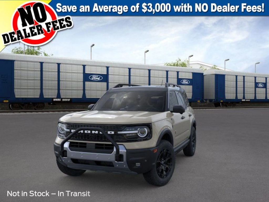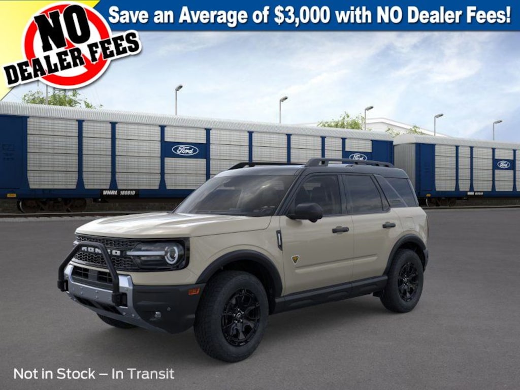Desert Sand 2025 Ford Bronco Sport Badlands 4WD 8-Speed Automatic EcoBoost 2.0L I4 GTDi DOHC Turbocharged VCT 4-Wheel Disc Brakes, 6 Speakers, 850W Engine Cooling Fan, ABS brakes, Air Conditioning, Alloy wheels, AM/FM radio: SiriusXM, AM/FM Stereo, Auto High-beam Headlights, Auto-dimming Rear-View mirror, Automatic temperature control, Auxiliary Switches & Wiring, B&O Sound System by Bang & Olufsen, Badlands Tech Package, Brake assist, Brush Guard, Compass, Connected Navigation, Delay-off headlights, Driver door bin, Driver vanity mirror, Dual front impact airbags, Dual front side impact airbags, Electronic Stability Control, Emergency communication system: SYNC 4 911 Assist, Fender Tie Downs, Four wheel independent suspension, Front anti-roll bar, Front Bucket Seats, Front Center Armrest, Front fog lights, Front License Plate Bracket, Front reading lights, Fully automatic headlights, Garage door transmitter, HD Radio, Heated door mirrors, Heated front seats, Heated steering wheel, High Clearance Fender Flares, HOSS 3.0 Off-Road Suspension, Illuminated entry, Knee airbag, Leather Trimmed Front Bucket Seats, Low tire pressure warning, Memory seat, Occupant sensing airbag, Outside temperature display, Overhead airbag, Overhead console, Panic alarm, Passenger door bin, Passenger vanity mirror, Power door mirrors, Power driver seat, Power Moonroof, Power passenger seat, Power steering, Power windows, Radio data system, Rear anti-roll bar, Rear Black Bumpers, Rear reading lights, Rear seat center armrest, Rear window defroster, Rear window wiper, Recovery Hooks, Remote keyless entry, Sasquatch Badlands Package, Security system, SiriusXM, Speed control, Speed-sensing steering, Speed-Sensitive Wipers, Split folding rear seat, Steering wheel mounted audio controls, SYNC 4 w/Enhanced Voice Recognition, Tachometer, Telescoping steering wheel, Tilt steering wheel, Traction control, Trip computer, Variably intermittent wipers, Wheels: 17" Ebony Black-Painted Aluminum, Wheels: 17" Matte Black-Painted Aluminum.