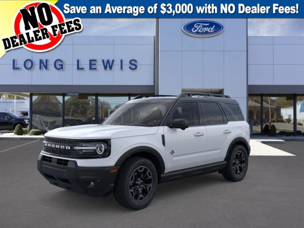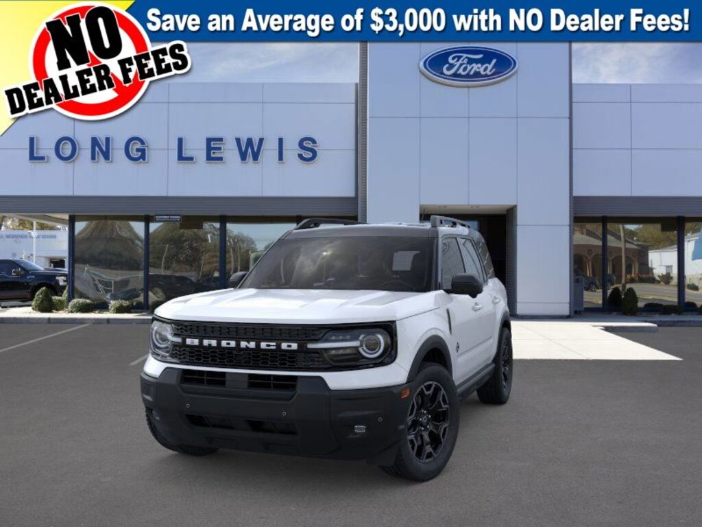 Oxford White 2025 Ford Bronco Sport Outer Banks fctp 4WD 8-Speed Automatic 1.5L EcoBoost 360-Degree Camera w/Trail & Split View, 4-Wheel Disc Brakes, 6 Speakers, ABS brakes, Air Conditioning, Alloy wheels, AM/FM radio: SiriusXM, AM/FM Stereo, Auto High-beam Headlights, Auto-dimming Rear-View mirror, Automatic temperature control, B&O Sound System by Bang & Olufsen, Brake assist, Compass, Connected Navigation, Delay-off headlights, Driver door bin, Driver vanity mirror, Dual front impact airbags, Dual front side impact airbags, Electronic Stability Control, Emergency communication system: SYNC 4 911 Assist, Four wheel independent suspension, Front anti-roll bar, Front Bucket Seats, Front Center Armrest, Front Driver/Passenger Seat Back Map Pockets, Front dual zone A/C, Front fog lights, Front License Plate Bracket, Front Parking Sensors, Front reading lights, Fully automatic headlights, Garage door transmitter, HD Radio, Heated door mirrors, Heated front seats, Heated steering wheel, Illuminated entry, Knee airbag, Low tire pressure warning, Memory seat, Occupant sensing airbag, Outer Banks Tech Package+, Outside temperature display, Overhead airbag, Overhead console, Panic alarm, Passenger door bin, Passenger vanity mirror, Power door mirrors, Power driver seat, Power passenger seat, Power steering, Power windows, Premium Trimmed Front Bucket Seats w/Ebony/Roast, Radio data system, Rain sensing wipers, Rear anti-roll bar, Rear Parking Sensors, Rear reading lights, Rear seat center armrest, Rear window defroster, Rear window wiper, Remote keyless entry, Reverse Brake Assist, Security system, SiriusXM, Speed control, Speed-sensing steering, Speed-Sensitive Wipers, Split folding rear seat, Steering wheel mounted audio controls, SYNC 4 w/Enhanced Voice Recognition, Tachometer, Telescoping steering wheel, Tilt steering wheel, Traction control, Trip computer, Variably intermittent wipers, Wheels: 18" Ebony Black-Painted Aluminum.