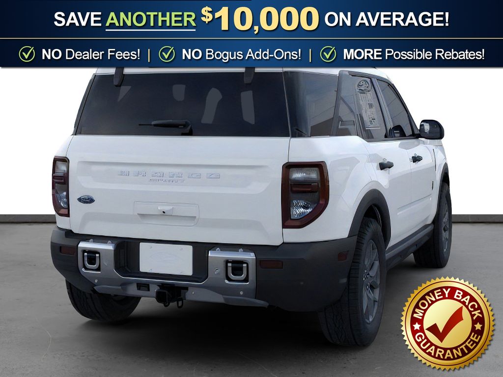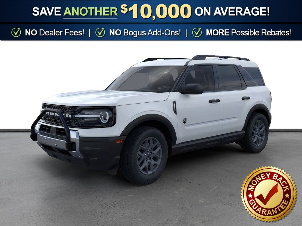 Oxford White 2025 Ford Bronco Sport Big Bend NFT 4WD 8-Speed Automatic 1.5L EcoBoost 110V/400W AC Power Outlet, 2nd Row Carpeted Seatback, 4-Wheel Disc Brakes, 6 Speakers, ABS brakes, Air Conditioning, Alloy wheels, AM/FM radio: SiriusXM, AM/FM Stereo, Auto High-beam Headlights, Automatic temperature control, Auxiliary Switches & Wiring, Black Diamond Off-Road Package, Brake assist, Brush Guard, Cargo Management System (Shelf/Divider/Table), Cargo Mat, Class II Trailer Tow Pack w/Trailer Sway Control, Cloth w/Easy-to-Clean Front Bucket Seats, Compass, Delay-off headlights, Driver door bin, Driver vanity mirror, Dual front impact airbags, Dual front side impact airbags, Electronic Stability Control, Emergency communication system: SYNC 4 911 Assist, Fender Tie Downs, Four wheel independent suspension, Front & Rear Black Bumpers, Front anti-roll bar, Front Bucket Seats, Front Center Armrest, Front License Plate Bracket, Front reading lights, Fully automatic headlights, Heated door mirrors, Illuminated entry, Interior Grab Handle, Knee airbag, Low tire pressure warning, Occupant sensing airbag, Outside temperature display, Overhead airbag, Overhead console, Panic alarm, Passenger door bin, Passenger vanity mirror, Power door mirrors, Power steering, Power windows, Radio data system, Rear anti-roll bar, Rear Parking Sensors, Rear reading lights, Rear seat center armrest, Rear window defroster, Rear window wiper, Recovery Hooks, Remote keyless entry, Security system, SiriusXM, Speed control, Speed-sensing steering, Speed-Sensitive Wipers, Split folding rear seat, Steering wheel mounted audio controls, SYNC 4 w/Enhanced Voice Recognition, Tachometer, Telescoping steering wheel, Tilt steering wheel, Traction control, Trip computer, Variably intermittent wipers, Wheels: 17" Carbonized Gray Painted Aluminum, Wheels: 17" Carbonized Gray-Painted Aluminum.