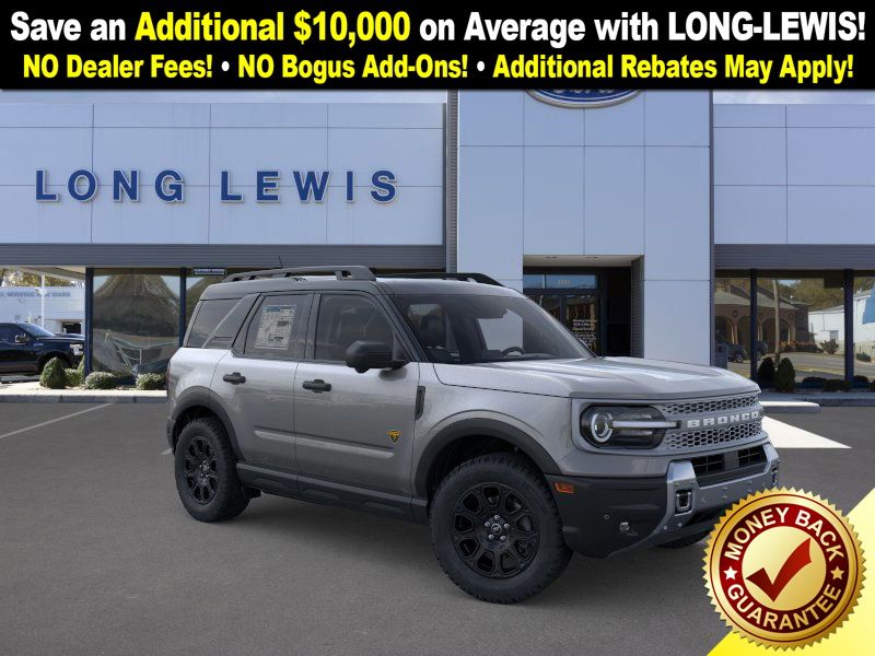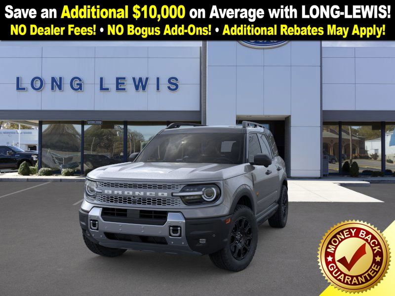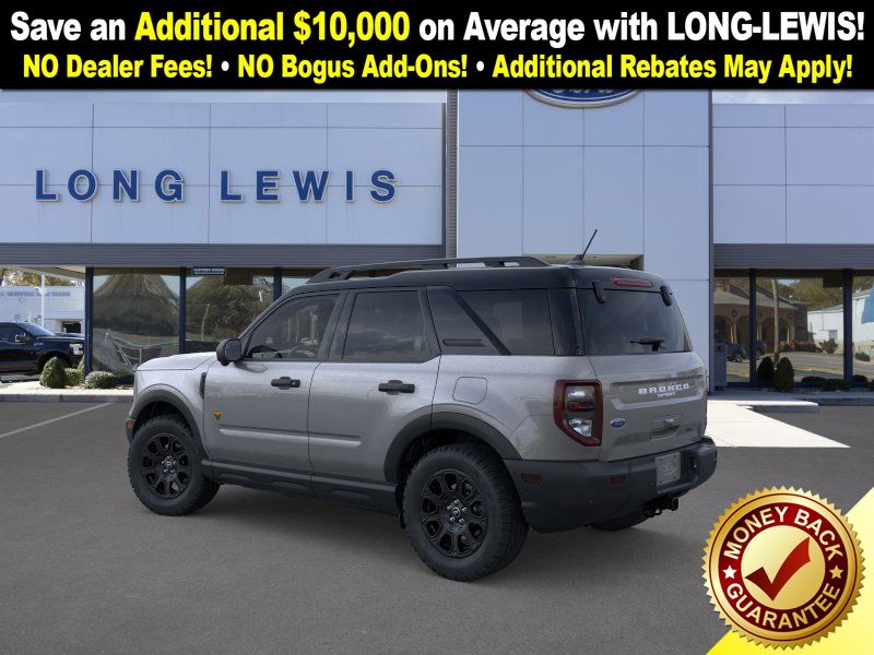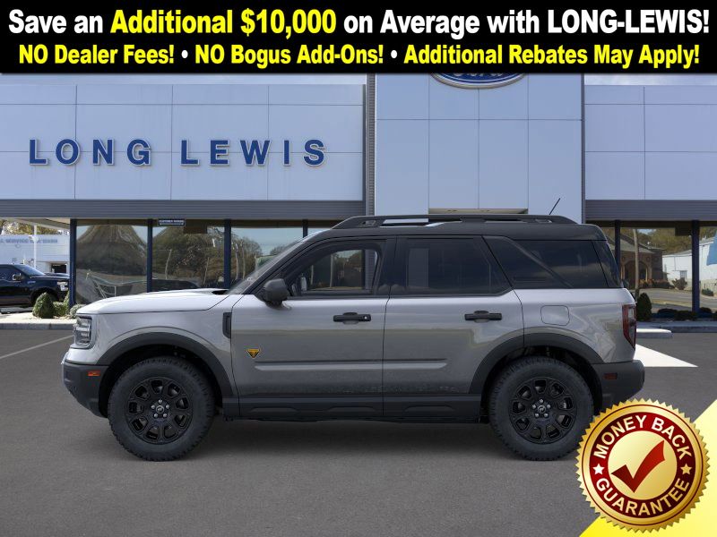 Carbonized Gray Metallic 2025 Ford Bronco Sport Badlands fctp 4WD 8-Speed Automatic EcoBoost 2.0L I4 GTDi DOHC Turbocharged VCT 4-Wheel Disc Brakes, 6 Speakers, ABS brakes, Air Conditioning, Alloy wheels, AM/FM radio: SiriusXM, AM/FM Stereo, Auto High-beam Headlights, Auto-dimming Rear-View mirror, Automatic temperature control, B&O Sound System by Bang & Olufsen, Badlands Tech Package, Brake assist, Compass, Connected Navigation, Delay-off headlights, Driver door bin, Driver vanity mirror, Dual front impact airbags, Dual front side impact airbags, Electronic Stability Control, Emergency communication system: SYNC 4 911 Assist, Four wheel independent suspension, Front anti-roll bar, Front Bucket Seats, Front Center Armrest, Front fog lights, Front License Plate Bracket, Front reading lights, Fully automatic headlights, Garage door transmitter, HD Radio, Heated door mirrors, Heated front seats, Heated steering wheel, Illuminated entry, Knee airbag, Leather Trimmed Front Bucket Seats, Low tire pressure warning, Memory seat, Occupant sensing airbag, Outside temperature display, Overhead airbag, Overhead console, Panic alarm, Passenger door bin, Passenger vanity mirror, Power door mirrors, Power driver seat, Power Moonroof, Power passenger seat, Power steering, Power windows, Radio data system, Rear anti-roll bar, Rear reading lights, Rear seat center armrest, Rear window defroster, Rear window wiper, Remote keyless entry, Security system, SiriusXM, Speed control, Speed-sensing steering, Speed-Sensitive Wipers, Split folding rear seat, Steering wheel mounted audio controls, SYNC 4 w/Enhanced Voice Recognition, Tachometer, Telescoping steering wheel, Tilt steering wheel, Traction control, Trip computer, Variably intermittent wipers, Wheels: 17" Matte Black-Painted Aluminum.