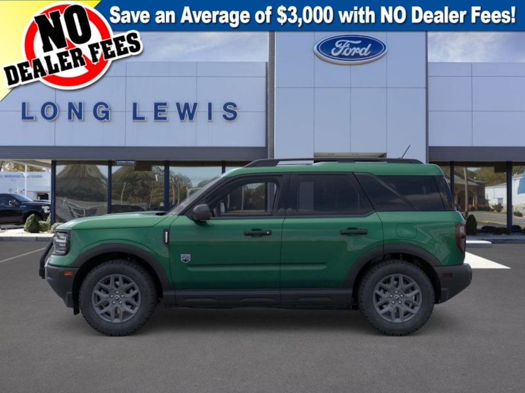 Eruption Green Metallic 2025 Ford Bronco Sport Big Bend fctp 4WD 8-Speed Automatic 1.5L EcoBoost 110V/400W AC Power Outlet, 2nd Row Carpeted Seatback, 4-Wheel Disc Brakes, 6 Speakers, ABS brakes, Air Conditioning, Alloy wheels, AM/FM radio: SiriusXM, AM/FM Stereo, Auto High-beam Headlights, Automatic temperature control, Auxiliary Switches & Wiring, Black Diamond Off-Road Package, Brake assist, Brush Guard, Cargo Management System (Shelf/Divider/Table), Cargo Mat, Class II Trailer Tow Pack w/Trailer Sway Control, Cloth w/Easy-to-Clean Front Bucket Seats, Compass, Delay-off headlights, Driver door bin, Driver vanity mirror, Dual front impact airbags, Dual front side impact airbags, Electronic Stability Control, Emergency communication system: SYNC 4 911 Assist, Fender Tie Downs, Four wheel independent suspension, Front & Rear Black Bumpers, Front anti-roll bar, Front Bucket Seats, Front Center Armrest, Front License Plate Bracket, Front reading lights, Fully automatic headlights, Heated door mirrors, Illuminated entry, Interior Grab Handle, Knee airbag, Low tire pressure warning, Occupant sensing airbag, Outside temperature display, Overhead airbag, Overhead console, Panic alarm, Passenger door bin, Passenger vanity mirror, Power door mirrors, Power steering, Power windows, Radio data system, Rear anti-roll bar, Rear Parking Sensors, Rear reading lights, Rear seat center armrest, Rear window defroster, Rear window wiper, Recovery Hooks, Remote keyless entry, Security system, SiriusXM, Speed control, Speed-sensing steering, Speed-Sensitive Wipers, Split folding rear seat, Steering wheel mounted audio controls, SYNC 4 w/Enhanced Voice Recognition, Tachometer, Telescoping steering wheel, Tilt steering wheel, Traction control, Trip computer, Variably intermittent wipers, Wheels: 17" Carbonized Gray Painted Aluminum, Wheels: 17" Carbonized Gray-Painted Aluminum.