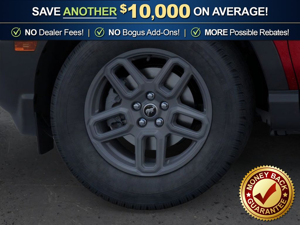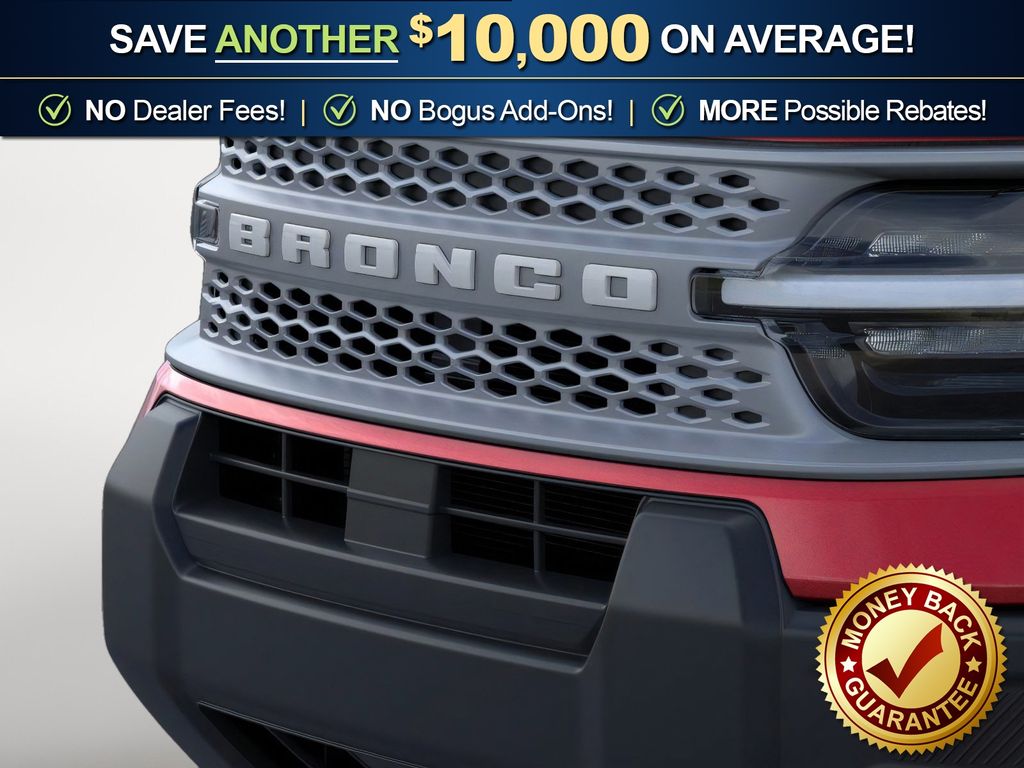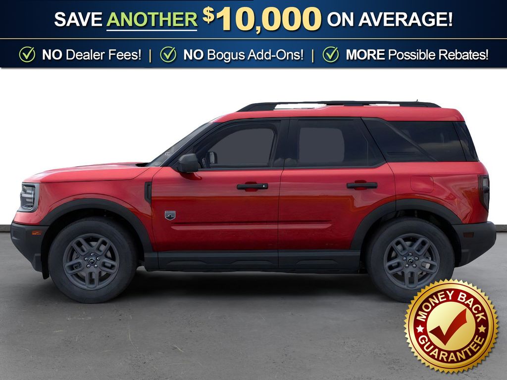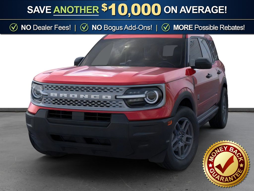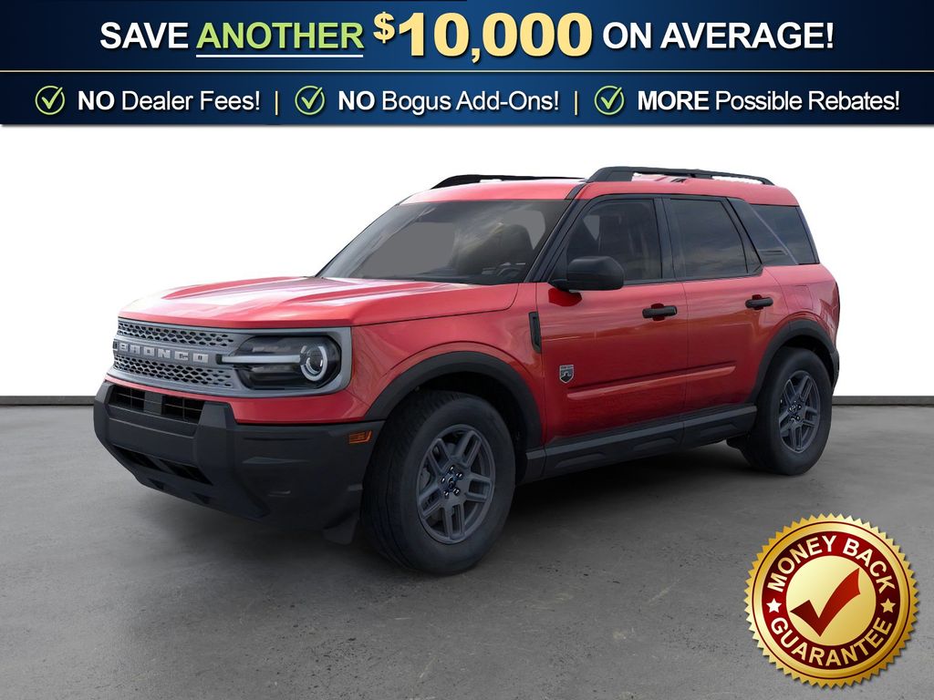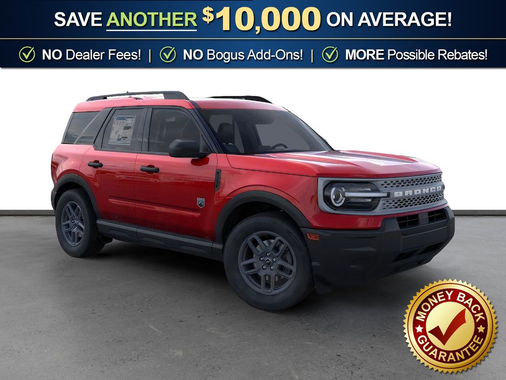 Ruby Red Metallic Tinted Clearcoat 2025 Ford Bronco Sport Big Bend NFT 4WD 8-Speed Automatic 1.5L EcoBoost 4-Wheel Disc Brakes, 6 Speakers, ABS brakes, Air Conditioning, Alloy wheels, AM/FM radio: SiriusXM, AM/FM Stereo, Auto High-beam Headlights, Automatic temperature control, Brake assist, Cloth w/Easy-to-Clean Front Bucket Seats, Compass, Delay-off headlights, Driver door bin, Driver vanity mirror, Dual front impact airbags, Dual front side impact airbags, Electronic Stability Control, Emergency communication system: SYNC 4 911 Assist, Four wheel independent suspension, Front anti-roll bar, Front Bucket Seats, Front Center Armrest, Front License Plate Bracket, Front reading lights, Fully automatic headlights, Heated door mirrors, Illuminated entry, Knee airbag, Low tire pressure warning, Occupant sensing airbag, Outside temperature display, Overhead airbag, Overhead console, Panic alarm, Passenger door bin, Passenger vanity mirror, Power door mirrors, Power steering, Power windows, Radio data system, Rear anti-roll bar, Rear Parking Sensors, Rear reading lights, Rear seat center armrest, Rear window defroster, Rear window wiper, Remote keyless entry, Security system, SiriusXM, Speed control, Speed-sensing steering, Speed-Sensitive Wipers, Split folding rear seat, Steering wheel mounted audio controls, SYNC 4 w/Enhanced Voice Recognition, Tachometer, Telescoping steering wheel, Tilt steering wheel, Traction control, Trip computer, Variably intermittent wipers, Wheels: 17" Carbonized Gray-Painted Aluminum.