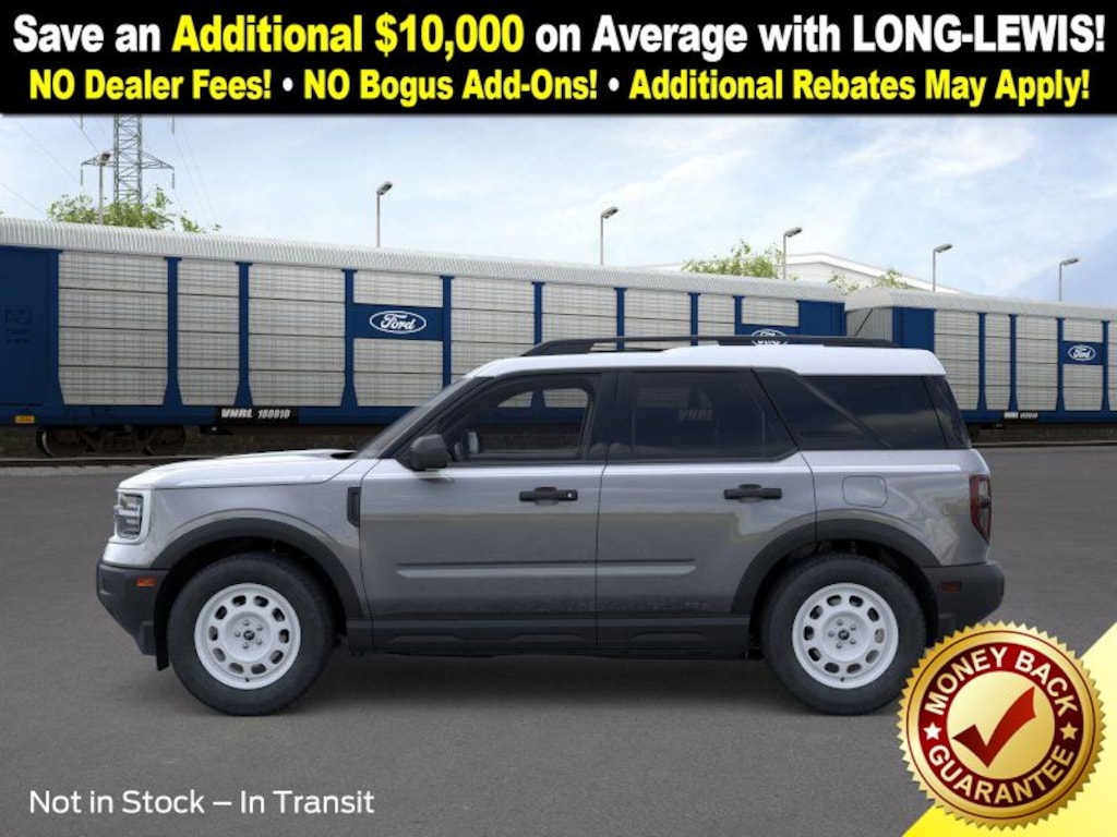 Carbonized Gray Metallic 2025 Ford Bronco Sport Heritage NFT 4WD 8-Speed Automatic 1.5L EcoBoost 4-Wheel Disc Brakes, 6 Speakers, ABS brakes, Air Conditioning, Alloy wheels, AM/FM radio: SiriusXM, AM/FM Stereo, Auto High-beam Headlights, Automatic temperature control, Brake assist, Compass, Convenience Package, Delay-off headlights, Driver door bin, Driver vanity mirror, Dual front impact airbags, Dual front side impact airbags, Electronic Stability Control, Emergency communication system: SYNC 4 911 Assist, Four wheel independent suspension, Front anti-roll bar, Front Bucket Seats, Front Center Armrest, Front Driver/Passenger Seat Back Map Pockets, Front License Plate Bracket, Front reading lights, Fully automatic headlights, Heated 8-Way Power Driver's Seat, Heated door mirrors, Illuminated entry, Knee airbag, LED Fog Lamps, Low tire pressure warning, Occupant sensing airbag, Outside temperature display, Overhead airbag, Overhead console, Panic alarm, Passenger door bin, Passenger vanity mirror, Plaid Cloth Front Bucket Seats, Power door mirrors, Power Moonroof, Power steering, Power windows, Premium Wrapped Steering Wheel, Radio data system, Rear anti-roll bar, Rear Parking Sensors, Rear reading lights, Rear seat center armrest, Rear window defroster, Rear window wiper, Remote keyless entry, Security system, SiriusXM, Speed control, Speed-sensing steering, Speed-Sensitive Wipers, Split folding rear seat, Steering wheel mounted audio controls, SYNC 4 w/Enhanced Voice Recognition, Tachometer, Telescoping steering wheel, Tilt steering wheel, Traction control, Trip computer, Universal Garage Door Opener (UGDO), Variably intermittent wipers, Wheels: 17" Oxford White-Painted Aluminum.