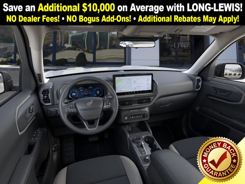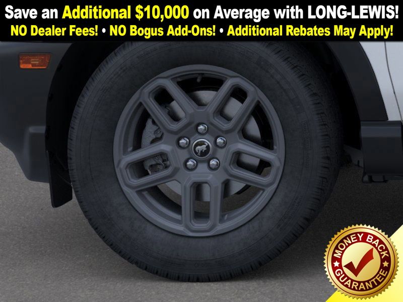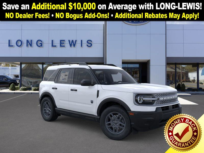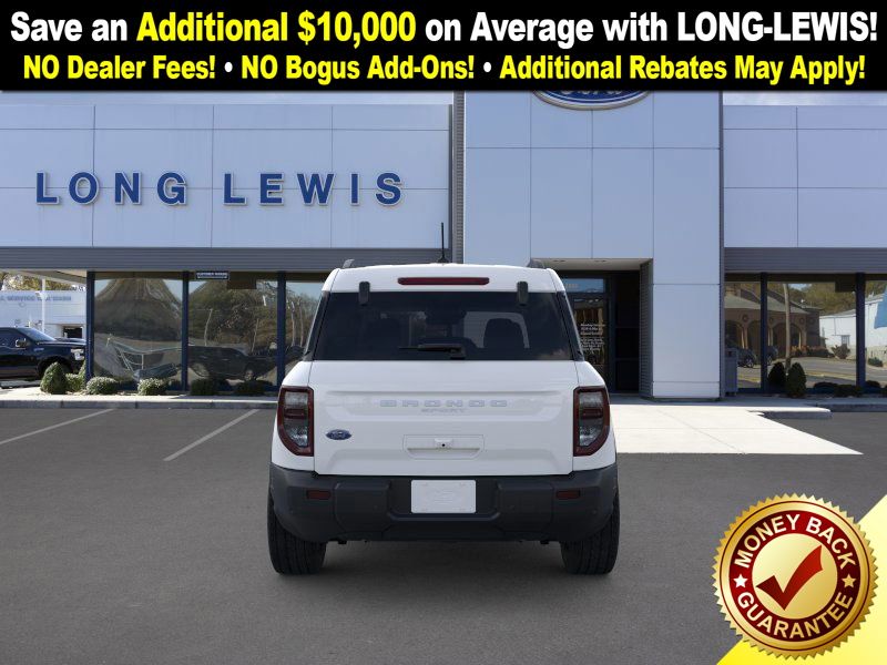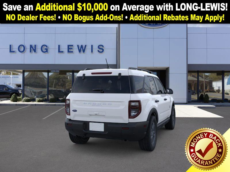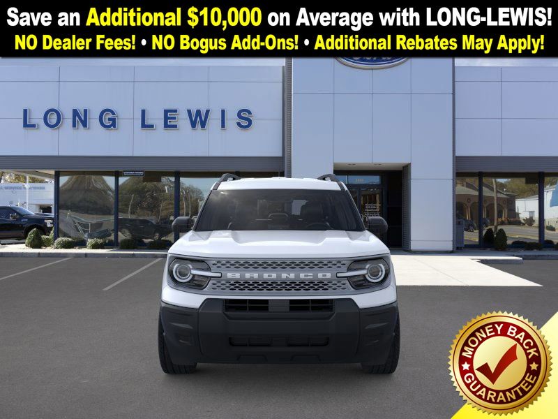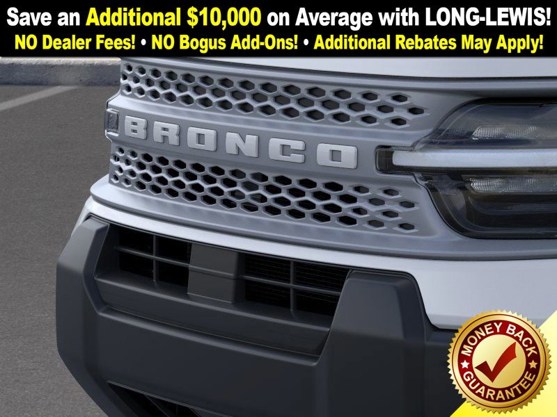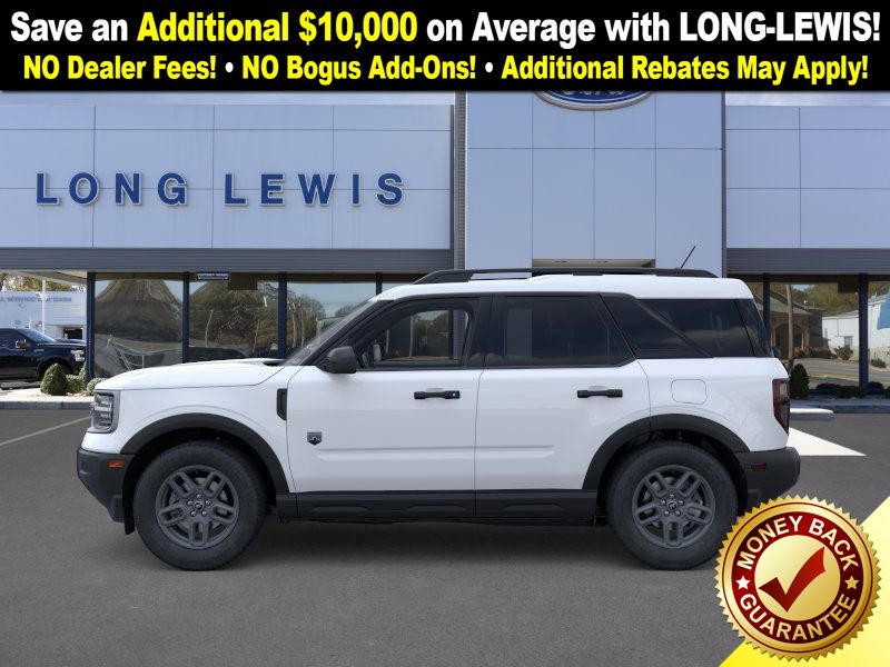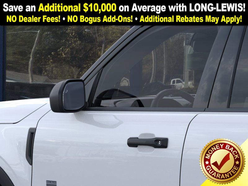 Oxford White 2025 Ford Bronco Sport Big Bend NFT 4WD 8-Speed Automatic 1.5L EcoBoost 4-Wheel Disc Brakes, 6 Speakers, ABS brakes, Air Conditioning, Alloy wheels, AM/FM radio: SiriusXM, AM/FM Stereo, Auto High-beam Headlights, Automatic temperature control, Brake assist, Cloth w/Easy-to-Clean Front Bucket Seats, Compass, Delay-off headlights, Driver door bin, Driver vanity mirror, Dual front impact airbags, Dual front side impact airbags, Electronic Stability Control, Emergency communication system: SYNC 4 911 Assist, Four wheel independent suspension, Front anti-roll bar, Front Bucket Seats, Front Center Armrest, Front License Plate Bracket, Front reading lights, Fully automatic headlights, Heated door mirrors, Illuminated entry, Knee airbag, Low tire pressure warning, Occupant sensing airbag, Outside temperature display, Overhead airbag, Overhead console, Panic alarm, Passenger door bin, Passenger vanity mirror, Power door mirrors, Power steering, Power windows, Radio data system, Rear anti-roll bar, Rear Parking Sensors, Rear reading lights, Rear seat center armrest, Rear window defroster, Rear window wiper, Remote keyless entry, Security system, SiriusXM, Speed control, Speed-sensing steering, Speed-Sensitive Wipers, Split folding rear seat, Steering wheel mounted audio controls, SYNC 4 w/Enhanced Voice Recognition, Tachometer, Telescoping steering wheel, Tilt steering wheel, Traction control, Trip computer, Variably intermittent wipers, Wheels: 17" Carbonized Gray-Painted Aluminum.