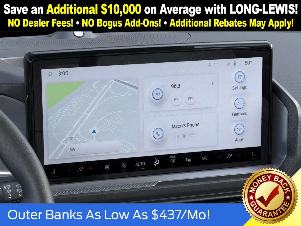 Outer Banks Tech Package+ (B&O Sound System by Bang & Olufsen, Connected Navigation, and HD Radio), 360-Degree Camera w/Trail & Split View, 4-Wheel Disc Brakes, 6 Speakers, ABS brakes, Air Conditioning, Alloy wheels, AM/FM radio: SiriusXM, AM/FM Stereo, Auto High-beam Headlights, Auto-dimming Rear-View mirror, Automatic temperature control, Brake assist, Compass, Delay-off headlights, Driver door bin, Driver vanity mirror, Dual front impact airbags, Dual front side impact airbags, Electronic Stability Control, Emergency communication system: SYNC 4 911 Assist, Four wheel independent suspension, Front anti-roll bar, Front Bucket Seats, Front Center Armrest, Front Driver/Passenger Seat Back Map Pockets, Front dual zone A/C, Front fog lights, Front Parking Sensors, Front reading lights, Fully automatic headlights, Garage door transmitter, Heated door mirrors, Heated front seats, Heated steering wheel, Illuminated entry, Knee airbag, Low tire pressure warning, Memory seat, Occupant sensing airbag, Outside temperature display, Overhead airbag, Overhead console, Panic alarm, Passenger door bin, Passenger vanity mirror, Power door mirrors, Power driver seat, Power passenger seat, Power steering, Power windows, Premium Trimmed Front Bucket Seats w/Ebony/Roast, Premium Trimmed Front Bucket Seats w/Platinum Blue, Radio data system, Rain sensing wipers, Rear anti-roll bar, Rear Parking Sensors, Rear reading lights, Rear seat center armrest, Rear window defroster, Rear window wiper, Remote keyless entry, Reverse Brake Assist, Security system, SiriusXM, Speed control, Speed-sensing steering, Speed-Sensitive Wipers, Split folding rear seat, Steering wheel mounted audio controls, SYNC 4 w/Enhanced Voice Recognition, Tachometer, Telescoping steering wheel, Tilt steering wheel, Traction control, Trip computer, Variably intermittent wipers, and Wheels: 18" Ebony Black-Painted Aluminum. Price includes: $2000 - Retail Customer Cash. Exp. 03/31/2026