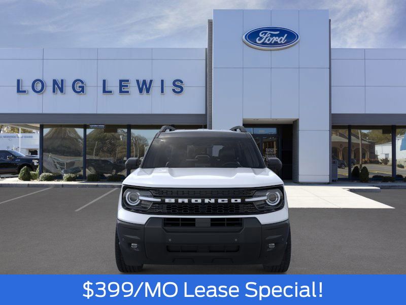 Oxford White 2025 Ford Bronco Sport Outer Banks NFT 4WD 8-Speed Automatic 1.5L EcoBoost 360-Degree Camera w/Trail & Split View, 4-Wheel Disc Brakes, 6 Speakers, ABS brakes, Air Conditioning, Alloy wheels, AM/FM radio: SiriusXM, AM/FM Stereo, Auto High-beam Headlights, Auto-dimming Rear-View mirror, Automatic temperature control, B&O Sound System by Bang & Olufsen, Brake assist, Compass, Connected Navigation, Delay-off headlights, Driver door bin, Driver vanity mirror, Dual front impact airbags, Dual front side impact airbags, Electronic Stability Control, Emergency communication system: SYNC 4 911 Assist, Four wheel independent suspension, Front anti-roll bar, Front Bucket Seats, Front Center Armrest, Front Driver/Passenger Seat Back Map Pockets, Front dual zone A/C, Front fog lights, Front License Plate Bracket, Front Parking Sensors, Front reading lights, Fully automatic headlights, Garage door transmitter, HD Radio, Heated door mirrors, Heated front seats, Heated steering wheel, Illuminated entry, Knee airbag, Low tire pressure warning, Memory seat, Occupant sensing airbag, Outer Banks Tech Package+, Outside temperature display, Overhead airbag, Overhead console, Panic alarm, Passenger door bin, Passenger vanity mirror, Power door mirrors, Power driver seat, Power passenger seat, Power steering, Power windows, Premium Trimmed Front Bucket Seats w/Ebony/Roast, Radio data system, Rain sensing wipers, Rear anti-roll bar, Rear Parking Sensors, Rear reading lights, Rear seat center armrest, Rear window defroster, Rear window wiper, Remote keyless entry, Reverse Brake Assist, Security system, SiriusXM, Speed control, Speed-sensing steering, Speed-Sensitive Wipers, Split folding rear seat, Steering wheel mounted audio controls, SYNC 4 w/Enhanced Voice Recognition, Tachometer, Telescoping steering wheel, Tilt steering wheel, Traction control, Trip computer, Variably intermittent wipers, Wheels: 18" Ebony Black-Painted Aluminum.