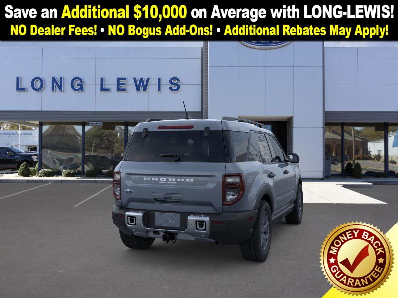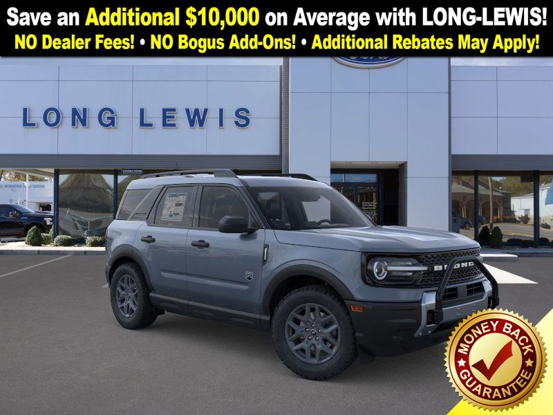 Azure Gray Metallic Tri-Coat 2025 Ford Bronco Sport Big Bend NFT 4WD 8-Speed Automatic 1.5L EcoBoost 110V/400W AC Power Outlet, 2nd Row Carpeted Seatback, 4-Wheel Disc Brakes, 6 Speakers, ABS brakes, Air Conditioning, Alloy wheels, AM/FM radio: SiriusXM, AM/FM Stereo, Auto High-beam Headlights, Automatic temperature control, Auxiliary Switches & Wiring, Black Diamond Off-Road Package, Brake assist, Brush Guard, Cargo Management System (Shelf/Divider/Table), Cargo Mat, Class II Trailer Tow Pack w/Trailer Sway Control, Cloth w/Easy-to-Clean Front Bucket Seats, Compass, Delay-off headlights, Driver door bin, Driver vanity mirror, Dual front impact airbags, Dual front side impact airbags, Electronic Stability Control, Emergency communication system: SYNC 4 911 Assist, Fender Tie Downs, Four wheel independent suspension, Front & Rear Black Bumpers, Front anti-roll bar, Front Bucket Seats, Front Center Armrest, Front License Plate Bracket, Front reading lights, Fully automatic headlights, Heated door mirrors, Illuminated entry, Interior Grab Handle, Knee airbag, Low tire pressure warning, Occupant sensing airbag, Outside temperature display, Overhead airbag, Overhead console, Panic alarm, Passenger door bin, Passenger vanity mirror, Power door mirrors, Power steering, Power windows, Radio data system, Rear anti-roll bar, Rear Parking Sensors, Rear reading lights, Rear seat center armrest, Rear window defroster, Rear window wiper, Recovery Hooks, Remote keyless entry, Security system, SiriusXM, Speed control, Speed-sensing steering, Speed-Sensitive Wipers, Split folding rear seat, Steering wheel mounted audio controls, SYNC 4 w/Enhanced Voice Recognition, Tachometer, Telescoping steering wheel, Tilt steering wheel, Traction control, Trip computer, Variably intermittent wipers, Wheels: 17" Carbonized Gray Painted Aluminum, Wheels: 17" Carbonized Gray-Painted Aluminum.