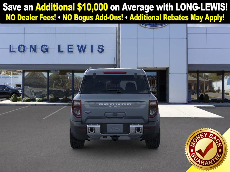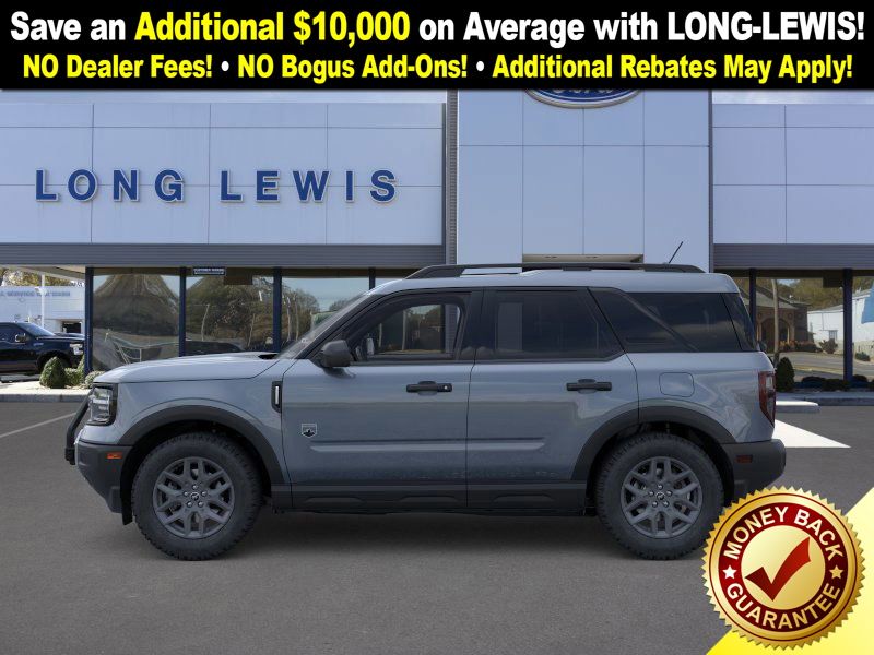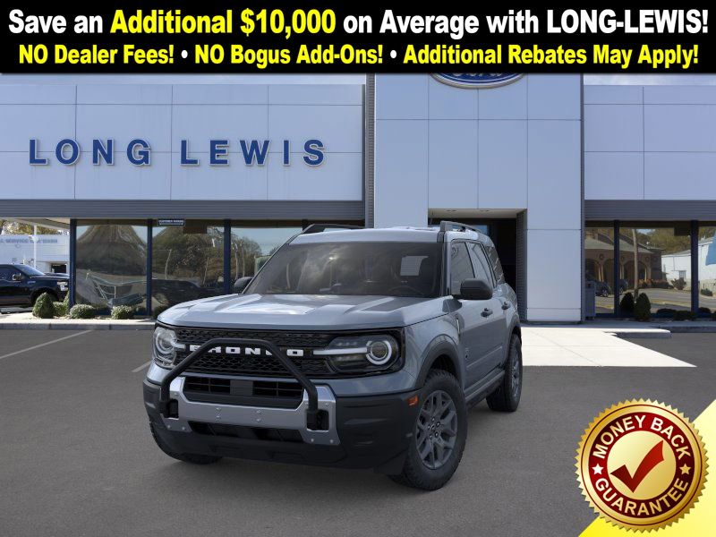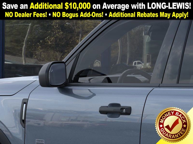Azure Gray Metallic Tri-Coat 2025 Ford Bronco Sport Big Bend NFT 4WD 8-Speed Automatic 1.5L EcoBoost 110V/400W AC Power Outlet, 2nd Row Carpeted Seatback, 4-Wheel Disc Brakes, 6 Speakers, ABS brakes, Air Conditioning, Alloy wheels, AM/FM radio: SiriusXM, AM/FM Stereo, Auto High-beam Headlights, Automatic temperature control, Auxiliary Switches & Wiring, Black Diamond Off-Road Package, Brake assist, Brush Guard, Cargo Management System (Shelf/Divider/Table), Cargo Mat, Class II Trailer Tow Pack w/Trailer Sway Control, Cloth w/Easy-to-Clean Front Bucket Seats, Compass, Delay-off headlights, Driver door bin, Driver vanity mirror, Dual front impact airbags, Dual front side impact airbags, Electronic Stability Control, Emergency communication system: SYNC 4 911 Assist, Fender Tie Downs, Four wheel independent suspension, Front & Rear Black Bumpers, Front anti-roll bar, Front Bucket Seats, Front Center Armrest, Front License Plate Bracket, Front reading lights, Fully automatic headlights, Heated door mirrors, Illuminated entry, Interior Grab Handle, Knee airbag, Low tire pressure warning, Occupant sensing airbag, Outside temperature display, Overhead airbag, Overhead console, Panic alarm, Passenger door bin, Passenger vanity mirror, Power door mirrors, Power steering, Power windows, Radio data system, Rear anti-roll bar, Rear Parking Sensors, Rear reading lights, Rear seat center armrest, Rear window defroster, Rear window wiper, Recovery Hooks, Remote keyless entry, Security system, SiriusXM, Speed control, Speed-sensing steering, Speed-Sensitive Wipers, Split folding rear seat, Steering wheel mounted audio controls, SYNC 4 w/Enhanced Voice Recognition, Tachometer, Telescoping steering wheel, Tilt steering wheel, Traction control, Trip computer, Variably intermittent wipers, Wheels: 17" Carbonized Gray Painted Aluminum, Wheels: 17" Carbonized Gray-Painted Aluminum.