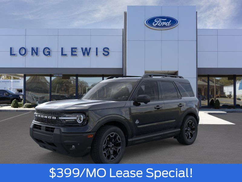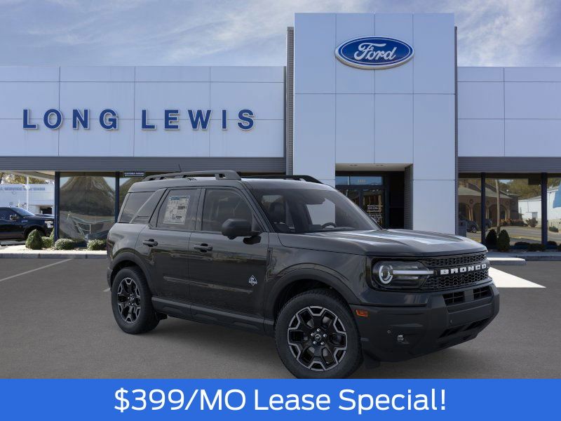 Shadow Black 2025 Ford Bronco Sport Outer Banks fctp 4WD 8-Speed Automatic 1.5L EcoBoost 360-Degree Camera w/Trail & Split View, 4-Wheel Disc Brakes, 6 Speakers, ABS brakes, Air Conditioning, Alloy wheels, AM/FM radio: SiriusXM, AM/FM Stereo, Auto High-beam Headlights, Auto-dimming Rear-View mirror, Automatic temperature control, B&O Sound System by Bang & Olufsen, Brake assist, Compass, Connected Navigation, Delay-off headlights, Driver door bin, Driver vanity mirror, Dual front impact airbags, Dual front side impact airbags, Electronic Stability Control, Emergency communication system: SYNC 4 911 Assist, Four wheel independent suspension, Front anti-roll bar, Front Bucket Seats, Front Center Armrest, Front Driver/Passenger Seat Back Map Pockets, Front dual zone A/C, Front fog lights, Front License Plate Bracket, Front Parking Sensors, Front reading lights, Fully automatic headlights, Garage door transmitter, HD Radio, Heated door mirrors, Heated front seats, Heated steering wheel, Illuminated entry, Knee airbag, Low tire pressure warning, Memory seat, Occupant sensing airbag, Outer Banks Tech Package+, Outside temperature display, Overhead airbag, Overhead console, Panic alarm, Passenger door bin, Passenger vanity mirror, Power door mirrors, Power driver seat, Power Moonroof, Power passenger seat, Power steering, Power windows, Premium Trimmed Front Bucket Seats w/Ebony/Roast, Radio data system, Rain sensing wipers, Rear anti-roll bar, Rear Parking Sensors, Rear reading lights, Rear seat center armrest, Rear window defroster, Rear window wiper, Remote keyless entry, Reverse Brake Assist, Security system, SiriusXM, Speed control, Speed-sensing steering, Speed-Sensitive Wipers, Split folding rear seat, Steering wheel mounted audio controls, SYNC 4 w/Enhanced Voice Recognition, Tachometer, Telescoping steering wheel, Tilt steering wheel, Traction control, Trip computer, Variably intermittent wipers, Wheels: 18" Ebony Black-Painted Aluminum.