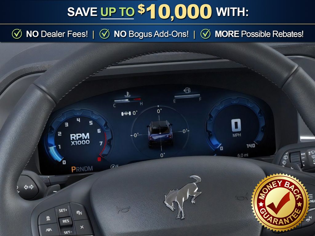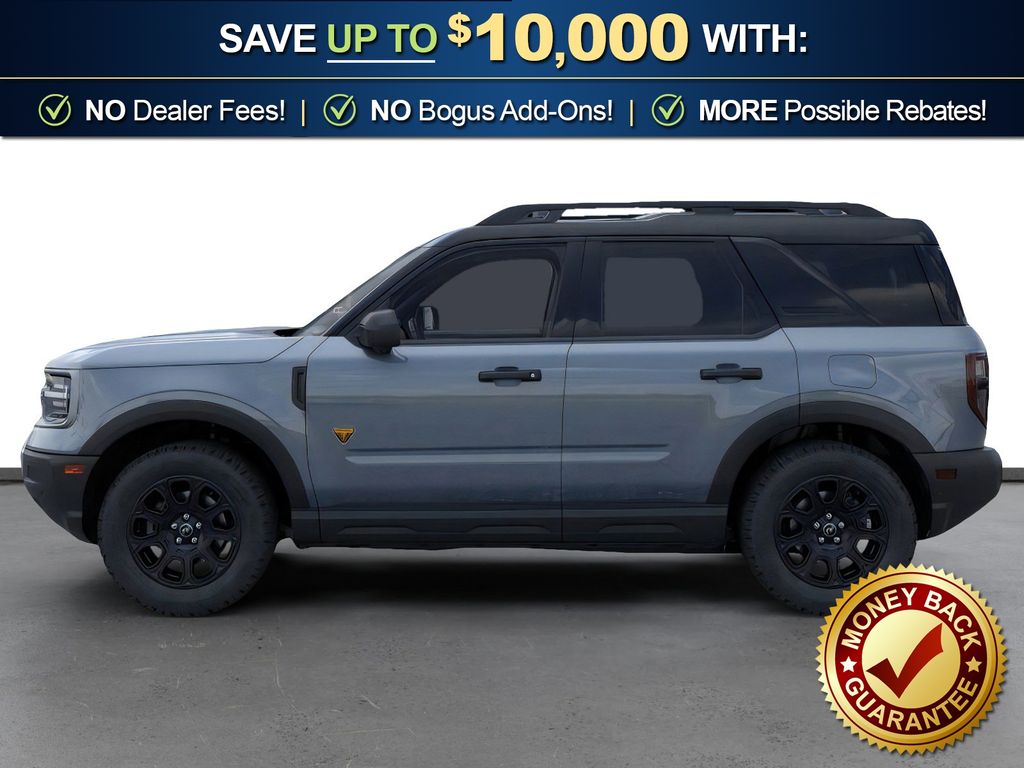 Badlands Tech Package (B&O Sound System by Bang & Olufsen, Connected Navigation, and HD Radio), Equipment Group 400A, 4-Wheel Disc Brakes, 6 Speakers, ABS brakes, Air Conditioning, Alloy wheels, AM/FM radio: SiriusXM, AM/FM Stereo, Auto High-beam Headlights, Auto-dimming Rear-View mirror, Automatic temperature control, Brake assist, Compass, Delay-off headlights, Driver door bin, Driver vanity mirror, Dual front impact airbags, Dual front side impact airbags, Electronic Stability Control, Emergency communication system: SYNC 4 911 Assist, Four wheel independent suspension, Front anti-roll bar, Front Bucket Seats, Front Center Armrest, Front fog lights, Front License Plate Bracket, Front reading lights, Fully automatic headlights, Garage door transmitter, Heated door mirrors, Heated front seats, Heated steering wheel, Illuminated entry, Knee airbag, Leather Trimmed Front Bucket Seats, Low tire pressure warning, Memory seat, Occupant sensing airbag, Outside temperature display, Overhead airbag, Overhead console, Panic alarm, Passenger door bin, Passenger vanity mirror, Power door mirrors, Power driver seat, Power passenger seat, Power steering, Power windows, Radio data system, Rear anti-roll bar, Rear reading lights, Rear seat center armrest, Rear window defroster, Rear window wiper, Remote keyless entry, Security system, SiriusXM, Speed control, Speed-sensing steering, Speed-Sensitive Wipers, Split folding rear seat, Steering wheel mounted audio controls, SYNC 4 w/Enhanced Voice Recognition, Tachometer, Telescoping steering wheel, Tilt steering wheel, Traction control, Trip computer, Variably intermittent wipers, and Wheels: 17" Matte Black-Painted Aluminum. Price includes: $2000 - Retail Customer Cash. Exp. 03/31/2026 $750 - Retail Customer Cash. Exp. 03/31/2026