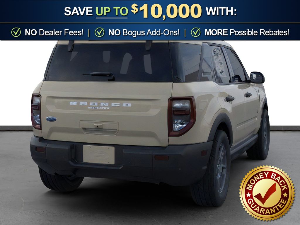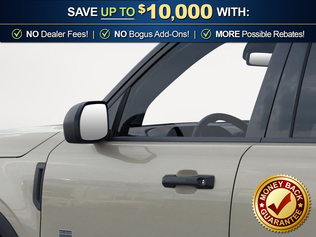Desert Sand 2025 Ford Bronco Sport Big Bend FCT 4WD 8-Speed Automatic 1.5L EcoBoost 4-Wheel Disc Brakes, 6 Speakers, ABS brakes, Air Conditioning, Alloy wheels, AM/FM radio: SiriusXM, AM/FM Stereo, Auto High-beam Headlights, Automatic temperature control, Brake assist, Cloth w/Easy-to-Clean Front Bucket Seats, Compass, Delay-off headlights, Driver door bin, Driver vanity mirror, Dual front impact airbags, Dual front side impact airbags, Electronic Stability Control, Emergency communication system: SYNC 4 911 Assist, Four wheel independent suspension, Front anti-roll bar, Front Bucket Seats, Front Center Armrest, Front License Plate Bracket, Front reading lights, Fully automatic headlights, Heated door mirrors, Illuminated entry, Knee airbag, Low tire pressure warning, Occupant sensing airbag, Outside temperature display, Overhead airbag, Overhead console, Panic alarm, Passenger door bin, Passenger vanity mirror, Power door mirrors, Power steering, Power windows, Radio data system, Rear anti-roll bar, Rear Parking Sensors, Rear reading lights, Rear seat center armrest, Rear window defroster, Rear window wiper, Remote keyless entry, Security system, SiriusXM, Speed control, Speed-sensing steering, Speed-Sensitive Wipers, Split folding rear seat, Steering wheel mounted audio controls, SYNC 4 w/Enhanced Voice Recognition, Tachometer, Telescoping steering wheel, Tilt steering wheel, Traction control, Trip computer, Variably intermittent wipers, Wheels: 17" Carbonized Gray Painted Aluminum, Wheels: 17" Carbonized Gray-Painted Aluminum.
