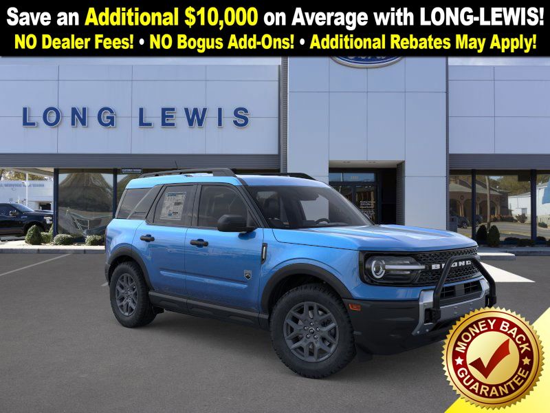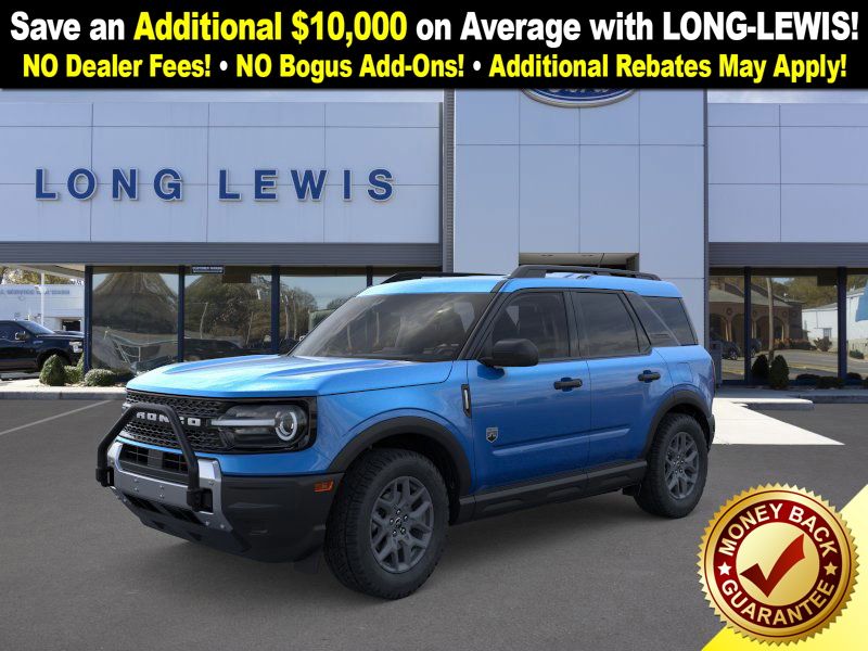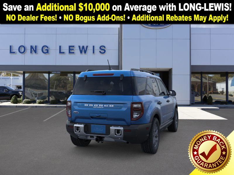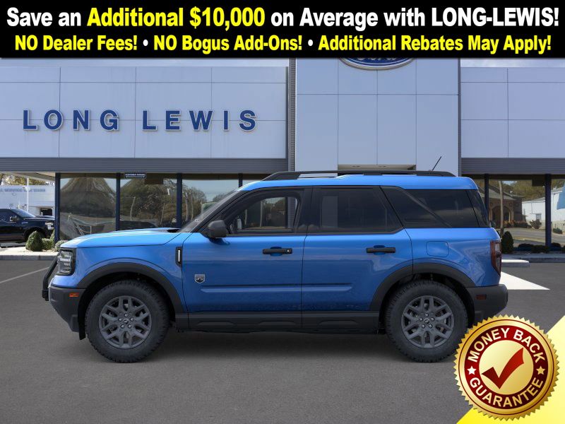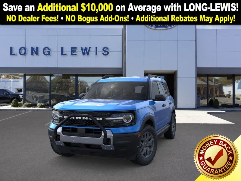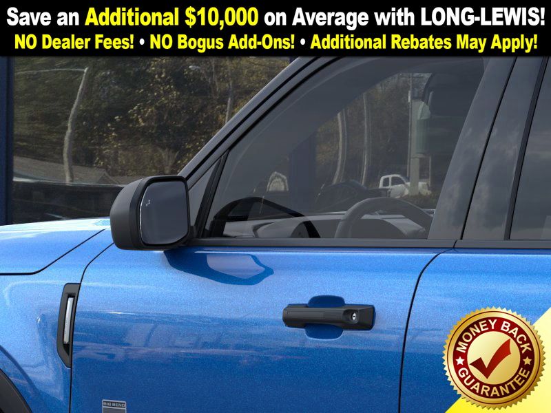 Velocity Blue Metallic 2025 Ford Bronco Sport Big Bend NFT 4WD 8-Speed Automatic 1.5L EcoBoost 110V/400W AC Power Outlet, 2nd Row Carpeted Seatback, 4-Wheel Disc Brakes, 6 Speakers, ABS brakes, Air Conditioning, Alloy wheels, AM/FM radio: SiriusXM, AM/FM Stereo, Auto High-beam Headlights, Automatic temperature control, Auxiliary Switches & Wiring, Black Diamond Off-Road Package, Brake assist, Brush Guard, Cargo Management System (Shelf/Divider/Table), Cargo Mat, Class II Trailer Tow Pack w/Trailer Sway Control, Cloth w/Easy-to-Clean Front Bucket Seats, Compass, Delay-off headlights, Driver door bin, Driver vanity mirror, Dual front impact airbags, Dual front side impact airbags, Electronic Stability Control, Emergency communication system: SYNC 4 911 Assist, Fender Tie Downs, Four wheel independent suspension, Front & Rear Black Bumpers, Front anti-roll bar, Front Bucket Seats, Front Center Armrest, Front License Plate Bracket, Front reading lights, Fully automatic headlights, Heated door mirrors, Illuminated entry, Interior Grab Handle, Knee airbag, Low tire pressure warning, Occupant sensing airbag, Outside temperature display, Overhead airbag, Overhead console, Panic alarm, Passenger door bin, Passenger vanity mirror, Power door mirrors, Power steering, Power windows, Radio data system, Rear anti-roll bar, Rear Parking Sensors, Rear reading lights, Rear seat center armrest, Rear window defroster, Rear window wiper, Recovery Hooks, Remote keyless entry, Security system, SiriusXM, Speed control, Speed-sensing steering, Speed-Sensitive Wipers, Split folding rear seat, Steering wheel mounted audio controls, SYNC 4 w/Enhanced Voice Recognition, Tachometer, Telescoping steering wheel, Tilt steering wheel, Traction control, Trip computer, Variably intermittent wipers, Wheels: 17" Carbonized Gray Painted Aluminum, Wheels: 17" Carbonized Gray-Painted Aluminum.