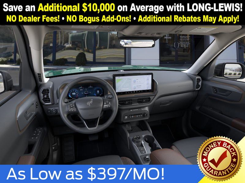 I got a 2025 Big Bend with the black diamond off road package. The steel modular front and rear in combination with bush guard gives this year model. A very aggressive off road look. With the ability to easily mount accessories and power them with the factory installed auxiliary switches. Hitch receiver seamlessly mounted into the rear steel bumper flanked by some very chunky recovery points. The upgraded aluminum rims wrapped with Continental all-terrains. It make this the most capable bronco sport yet. The interior of the 2025 has been updated with a new 13 inch touchscreen with Android Auto and apple car play. The lines of the dash flow elegantly from the new infotainment screen to the new all digital 12 inch gauge chaster. Toggling through the different modes on the gauge chaster is very intuitive, and all the displays are laid out very cleanly. Moving from gauge chaster the center storage cubby just below the infotainment screen there is a wireless charger and USB/ USB-c ports. The passenger side of that same cubby gets a handle and a matching one on the roof just in case the driver bucks a little too much. The passenger also gets a mesh storage area. That leads us to the fact this vehicle has tons of storage options all throughout. You have pockets on the sides of the front two seat big enough for the latest new phones. Very generous door storage on all four doors plus huge glove box and center console with 12 volt outlet. The back side of the center console has air vents and another 12 volt outlet plus a 110 outlet. Now getting to the cargo area it is massive for a crossover SUV. With off road package you get a cargo management system and a very nice rubber mat. Under that there is a full size tire plus scissor jack and funnel to use with the capless filler system. On the liftgate there isa pair of very bright led lights turned on with a switch in the cargo area. This feature packed vehicle has tons awesome gadgets and hidden a little homages I spend all day just talk that. At the end of the day it is car. So how does it drive. It is wonderful, the steering and pedal response is beautiful. Rides very smooth and little to no road noise going down the highway. The active cruise control and co-pilot 360 have been very handy. The car literally drives itself most of the time. There is not enough good things I could same about this car. I love it and you pick one too. You will see what I mean. - 5.0