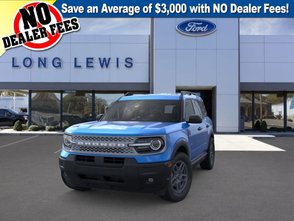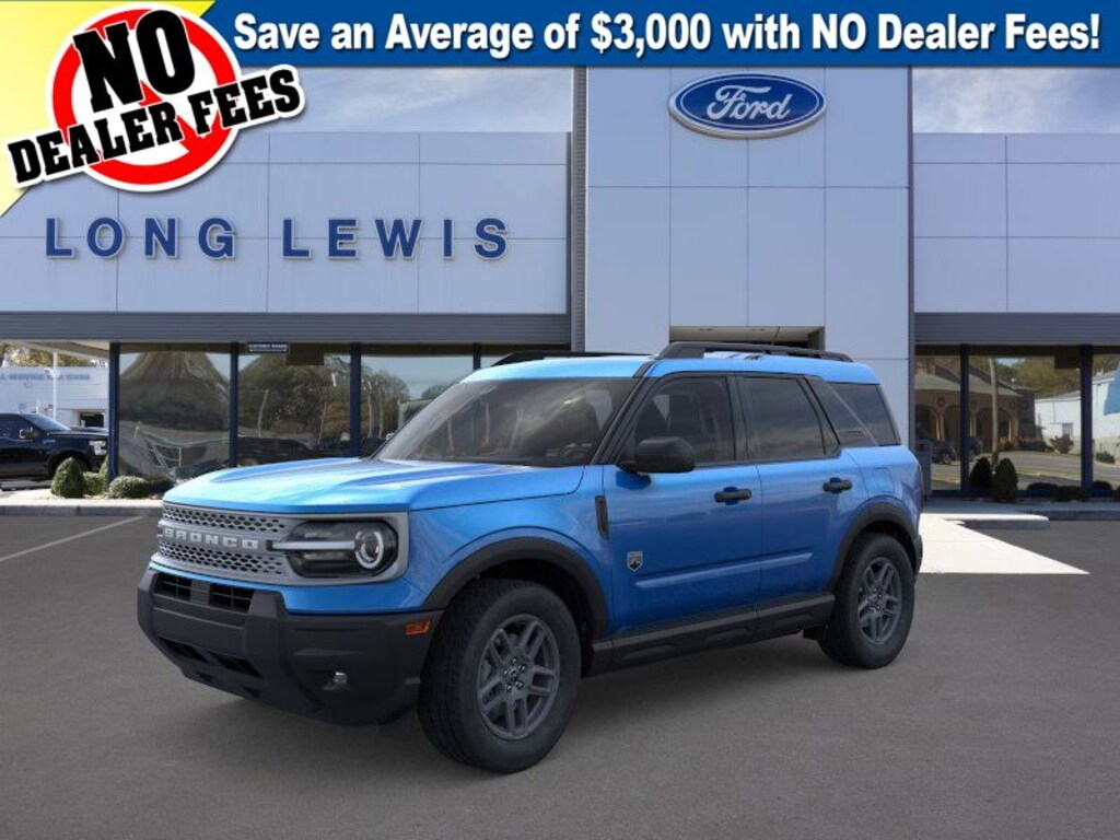 Velocity Blue Metallic 2025 Ford Bronco Sport Big Bend 4WD 8-Speed Automatic 1.5L EcoBoost 4-Wheel Disc Brakes, 6 Speakers, ABS brakes, Air Conditioning, Alloy wheels, AM/FM radio: SiriusXM, AM/FM Stereo, Auto High-beam Headlights, Automatic temperature control, Brake assist, Cloth w/Easy-to-Clean Front Bucket Seats, Compass, Convenience Package, Delay-off headlights, Driver door bin, Driver vanity mirror, Dual front impact airbags, Dual front side impact airbags, Electronic Stability Control, Emergency communication system: SYNC 4 911 Assist, Four wheel independent suspension, Front anti-roll bar, Front Bucket Seats, Front Center Armrest, Front Driver/Passenger Seat Back Map Pockets, Front License Plate Bracket, Front reading lights, Fully automatic headlights, Heated 8-Way Power Driver's Seat, Heated door mirrors, Illuminated entry, Knee airbag, LED Fog Lamps, Low tire pressure warning, Occupant sensing airbag, Outside temperature display, Overhead airbag, Overhead console, Panic alarm, Passenger door bin, Passenger vanity mirror, Power door mirrors, Power steering, Power windows, Premium Wrapped Steering Wheel, Radio data system, Rear anti-roll bar, Rear Parking Sensors, Rear reading lights, Rear seat center armrest, Rear window defroster, Rear window wiper, Remote keyless entry, Security system, SiriusXM, Speed control, Speed-sensing steering, Speed-Sensitive Wipers, Split folding rear seat, Steering wheel mounted audio controls, SYNC 4 w/Enhanced Voice Recognition, Tachometer, Telescoping steering wheel, Tilt steering wheel, Traction control, Trip computer, Universal Garage Door Opener (UGDO), Variably intermittent wipers, Wheels: 17" Carbonized Gray-Painted Aluminum.