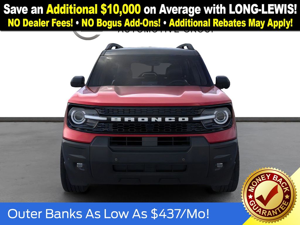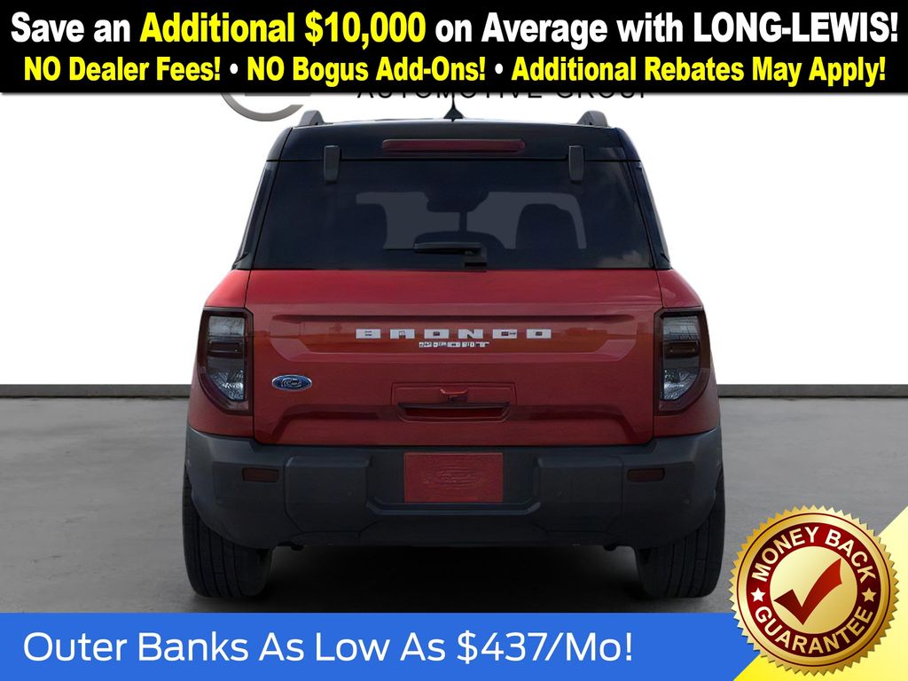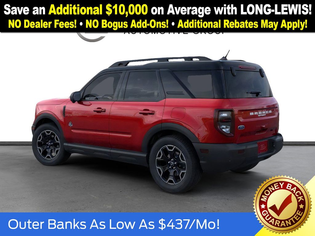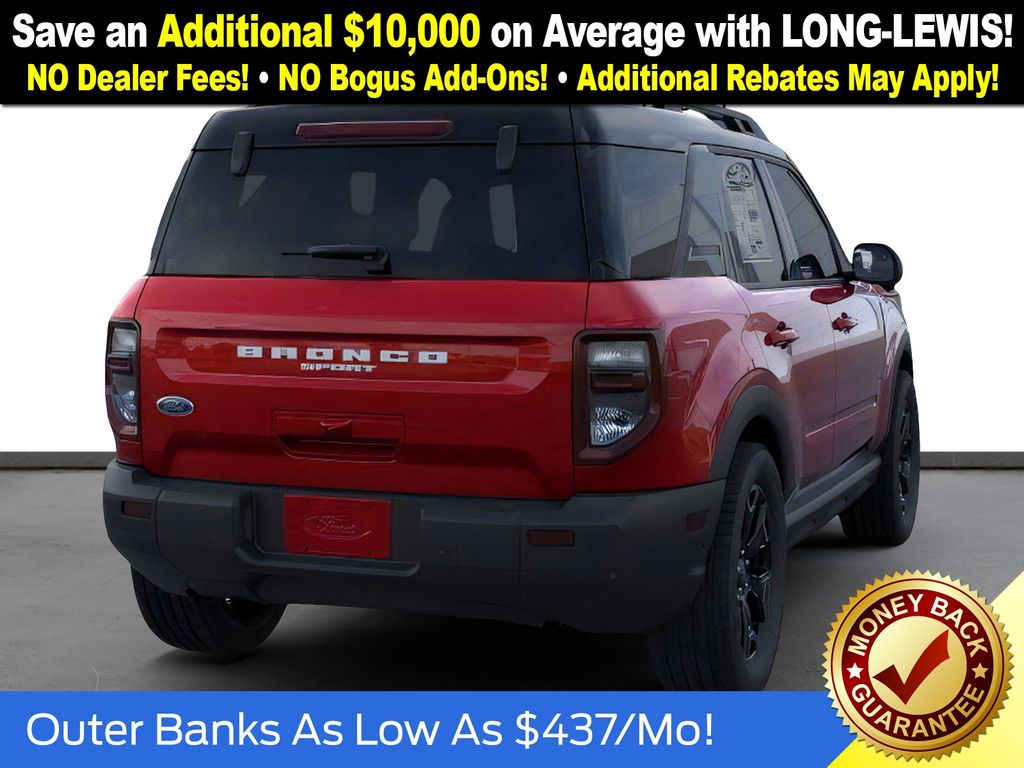 Ruby Red Metallic Tinted Clearcoat 2025 Ford Bronco Sport Outer Banks fctp 4WD 8-Speed Automatic 1.5L EcoBoost 360-Degree Camera w/Trail & Split View, 4-Wheel Disc Brakes, 6 Speakers, ABS brakes, Air Conditioning, Alloy wheels, AM/FM radio: SiriusXM, AM/FM Stereo, Auto High-beam Headlights, Auto-dimming Rear-View mirror, Automatic temperature control, B&O Sound System by Bang & Olufsen, Brake assist, Compass, Connected Navigation, Delay-off headlights, Driver door bin, Driver vanity mirror, Dual front impact airbags, Dual front side impact airbags, Electronic Stability Control, Emergency communication system: SYNC 4 911 Assist, Four wheel independent suspension, Front anti-roll bar, Front Bucket Seats, Front Center Armrest, Front Driver/Passenger Seat Back Map Pockets, Front dual zone A/C, Front fog lights, Front License Plate Bracket, Front Parking Sensors, Front reading lights, Fully automatic headlights, Garage door transmitter, HD Radio, Heated door mirrors, Heated front seats, Heated steering wheel, Illuminated entry, Knee airbag, Low tire pressure warning, Memory seat, Occupant sensing airbag, Outer Banks Tech Package+, Outside temperature display, Overhead airbag, Overhead console, Panic alarm, Passenger door bin, Passenger vanity mirror, Power door mirrors, Power driver seat, Power Moonroof, Power passenger seat, Power steering, Power windows, Premium Trimmed Front Bucket Seats w/Ebony/Roast, Radio data system, Rain sensing wipers, Rear anti-roll bar, Rear Parking Sensors, Rear reading lights, Rear seat center armrest, Rear window defroster, Rear window wiper, Remote keyless entry, Reverse Brake Assist, Security system, SiriusXM, Speed control, Speed-sensing steering, Speed-Sensitive Wipers, Split folding rear seat, Steering wheel mounted audio controls, SYNC 4 w/Enhanced Voice Recognition, Tachometer, Telescoping steering wheel, Tilt steering wheel, Traction control, Trip computer, Variably intermittent wipers, Wheels: 18" Ebony Black-Painted Aluminum.