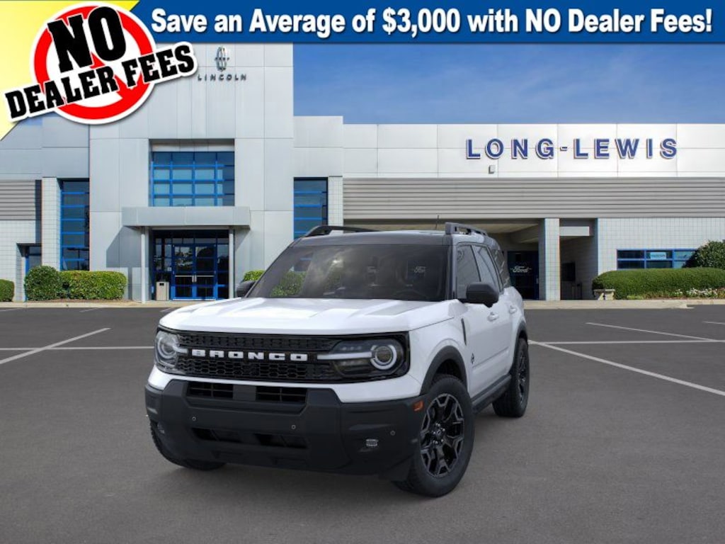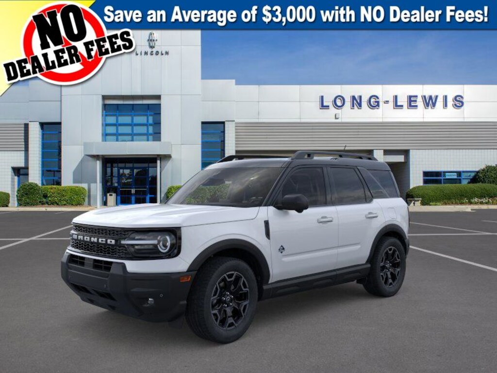 Dealer Discount of $2,169 off MSRP Oxford White 2025 Ford Bronco Sport Outer Banks fctp 4WD 8-Speed Automatic 1.5L EcoBoost 360-Degree Camera w/Trail & Split View, 4-Wheel Disc Brakes, 6 Speakers, ABS brakes, Air Conditioning, Alloy wheels, AM/FM radio: SiriusXM, AM/FM Stereo, Auto High-beam Headlights, Auto-dimming Rear-View mirror, Automatic temperature control, B&O Sound System by Bang & Olufsen, Brake assist, Compass, Connected Navigation, Delay-off headlights, Driver door bin, Driver vanity mirror, Dual front impact airbags, Dual front side impact airbags, Electronic Stability Control, Emergency communication system: SYNC 4 911 Assist, Equipment Group 300A, Four wheel independent suspension, Front anti-roll bar, Front Bucket Seats, Front Center Armrest, Front Driver/Passenger Seat Back Map Pockets, Front dual zone A/C, Front fog lights, Front License Plate Bracket, Front Parking Sensors, Front reading lights, Fully automatic headlights, Garage door transmitter, HD Radio, Heated door mirrors, Heated front seats, Heated steering wheel, Illuminated entry, Knee airbag, Low tire pressure warning, Memory seat, Occupant sensing airbag, Outer Banks Tech Package+, Outside temperature display, Overhead airbag, Overhead console, Panic alarm, Passenger door bin, Passenger vanity mirror, Power door mirrors, Power driver seat, Power Moonroof, Power passenger seat, Power steering, Power windows, Premium Trimmed Front Bucket Seats w/Ebony/Roast, Radio data system, Rain sensing wipers, Rear anti-roll bar, Rear Parking Sensors, Rear reading lights, Rear seat center armrest, Rear window defroster, Rear window wiper, Remote keyless entry, Reverse Brake Assist, Security system, SiriusXM, Speed control, Speed-sensing steering, Speed-Sensitive Wipers, Split folding rear seat, Steering wheel mounted audio controls, SYNC 4 w/Enhanced Voice Recognition, Tachometer, Telescoping steering wheel, Tilt steering wheel, Traction control, Trip computer, Variably intermittent wipers, Wheels: 18" Ebony Black-Painted Aluminum.