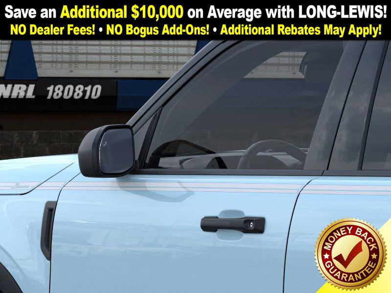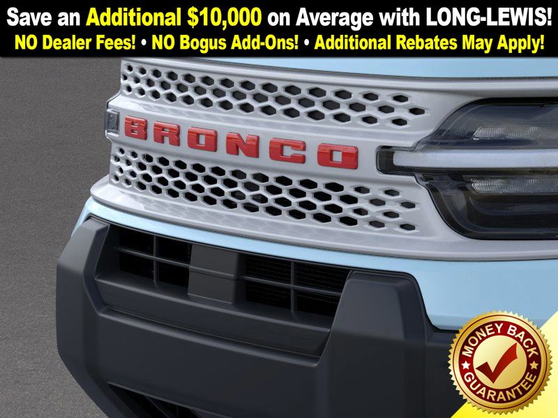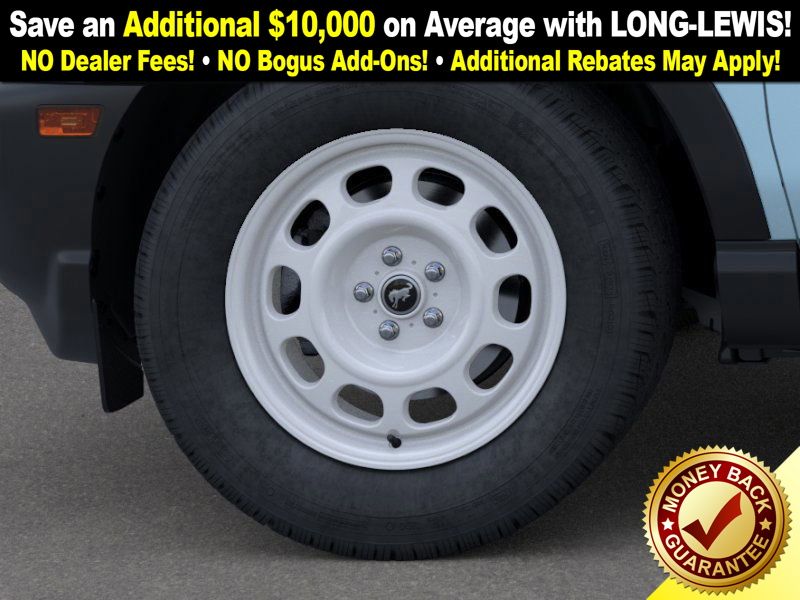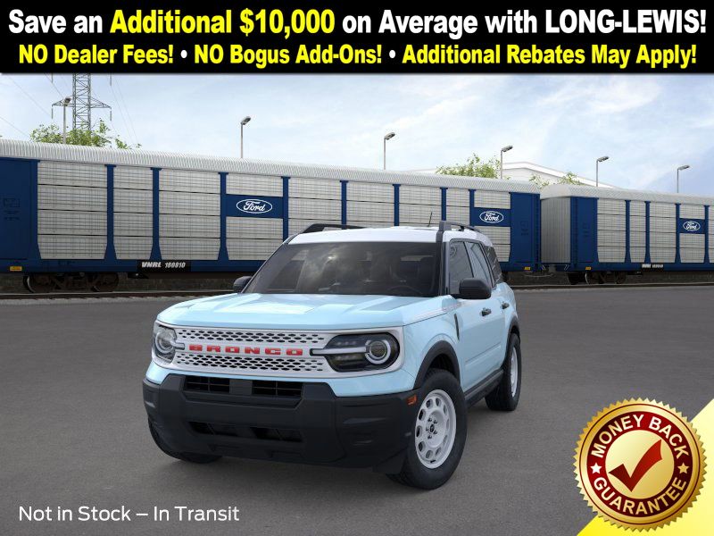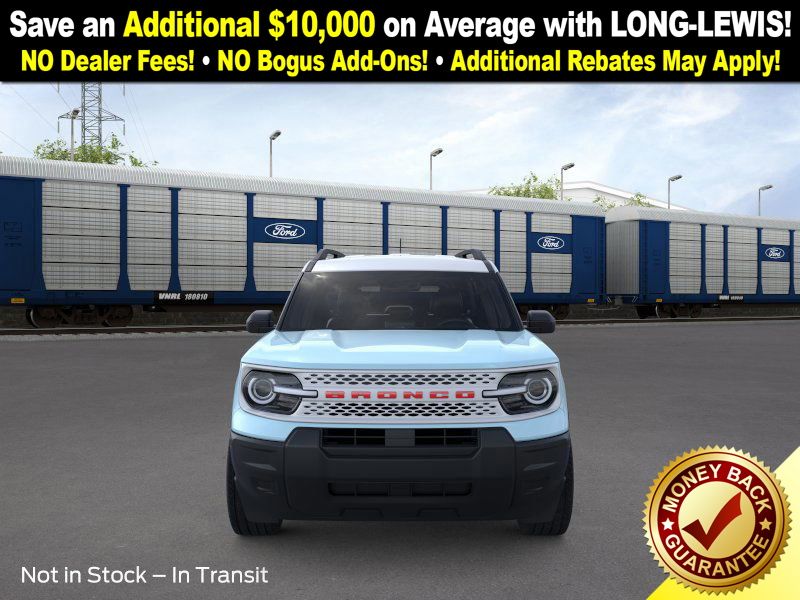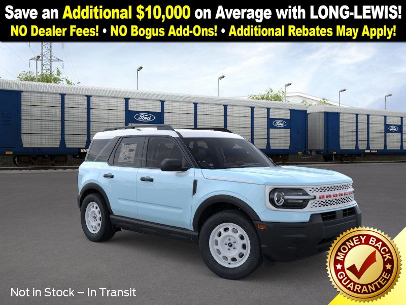 Robins Egg Blue 2025 Ford Bronco Sport Heritage NFT 4WD 8-Speed Automatic 1.5L EcoBoost 4-Wheel Disc Brakes, 6 Speakers, ABS brakes, Air Conditioning, Alloy wheels, AM/FM radio: SiriusXM, AM/FM Stereo, Auto High-beam Headlights, Automatic temperature control, Brake assist, Compass, Delay-off headlights, Driver door bin, Driver vanity mirror, Dual front impact airbags, Dual front side impact airbags, Electronic Stability Control, Emergency communication system: SYNC 4 911 Assist, Four wheel independent suspension, Front anti-roll bar, Front Bucket Seats, Front Center Armrest, Front Driver/Passenger Seat Back Map Pockets, Front License Plate Bracket, Front reading lights, Fully automatic headlights, Heated door mirrors, Illuminated entry, Knee airbag, Low tire pressure warning, Occupant sensing airbag, Outside temperature display, Overhead airbag, Overhead console, Panic alarm, Passenger door bin, Passenger vanity mirror, Plaid Cloth Front Bucket Seats, Power door mirrors, Power steering, Power windows, Radio data system, Rear anti-roll bar, Rear Parking Sensors, Rear reading lights, Rear seat center armrest, Rear window defroster, Rear window wiper, Remote keyless entry, Security system, SiriusXM, Speed control, Speed-sensing steering, Speed-Sensitive Wipers, Split folding rear seat, Steering wheel mounted audio controls, SYNC 4 w/Enhanced Voice Recognition, Tachometer, Telescoping steering wheel, Tilt steering wheel, Traction control, Trip computer, Variably intermittent wipers, Wheels: 17" Oxford White-Painted Aluminum.