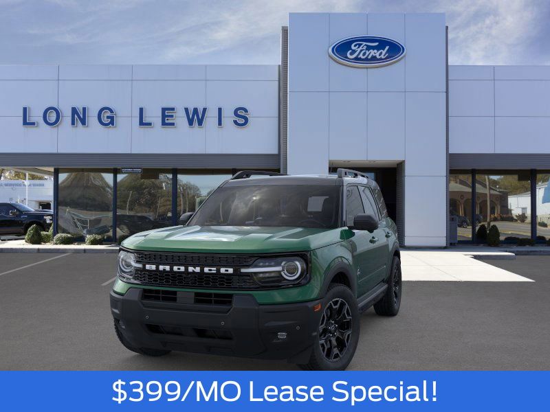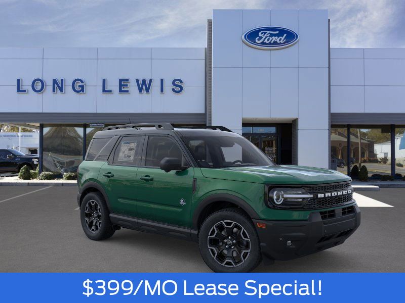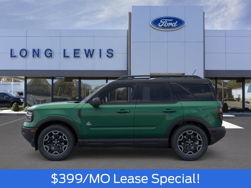 Eruption Green Metallic 2025 Ford Bronco Sport Outer Banks fctp 4WD 8-Speed Automatic 1.5L EcoBoost 360-Degree Camera w/Trail & Split View, 4-Wheel Disc Brakes, 6 Speakers, ABS brakes, Air Conditioning, Alloy wheels, AM/FM radio: SiriusXM, AM/FM Stereo, Auto High-beam Headlights, Auto-dimming Rear-View mirror, Automatic temperature control, B&O Sound System by Bang & Olufsen, Brake assist, Compass, Connected Navigation, Delay-off headlights, Driver door bin, Driver vanity mirror, Dual front impact airbags, Dual front side impact airbags, Electronic Stability Control, Emergency communication system: SYNC 4 911 Assist, Four wheel independent suspension, Front anti-roll bar, Front Bucket Seats, Front Center Armrest, Front Driver/Passenger Seat Back Map Pockets, Front dual zone A/C, Front fog lights, Front License Plate Bracket, Front Parking Sensors, Front reading lights, Fully automatic headlights, Garage door transmitter, HD Radio, Heated door mirrors, Heated front seats, Heated steering wheel, Illuminated entry, Knee airbag, Low tire pressure warning, Memory seat, Occupant sensing airbag, Outer Banks Tech Package+, Outside temperature display, Overhead airbag, Overhead console, Panic alarm, Passenger door bin, Passenger vanity mirror, Power door mirrors, Power driver seat, Power Moonroof, Power passenger seat, Power steering, Power windows, Premium Trimmed Front Bucket Seats w/Ebony/Roast, Radio data system, Rain sensing wipers, Rear anti-roll bar, Rear Parking Sensors, Rear reading lights, Rear seat center armrest, Rear window defroster, Rear window wiper, Remote keyless entry, Reverse Brake Assist, Security system, SiriusXM, Speed control, Speed-sensing steering, Speed-Sensitive Wipers, Split folding rear seat, Steering wheel mounted audio controls, SYNC 4 w/Enhanced Voice Recognition, Tachometer, Telescoping steering wheel, Tilt steering wheel, Traction control, Trip computer, Variably intermittent wipers, Wheels: 18" Ebony Black-Painted Aluminum.