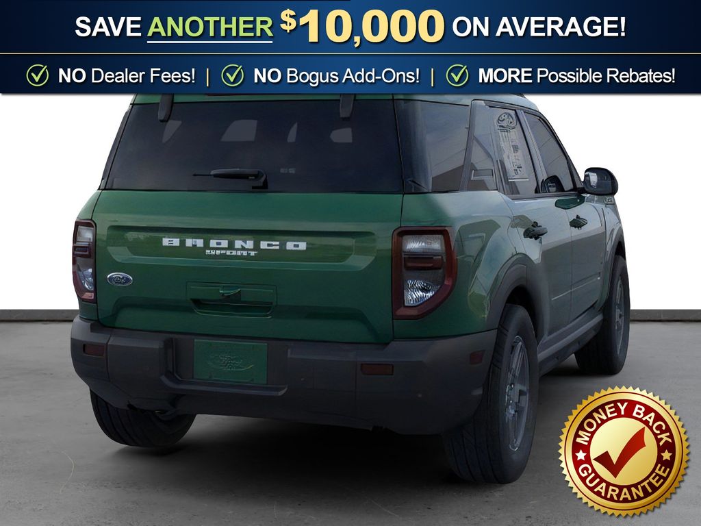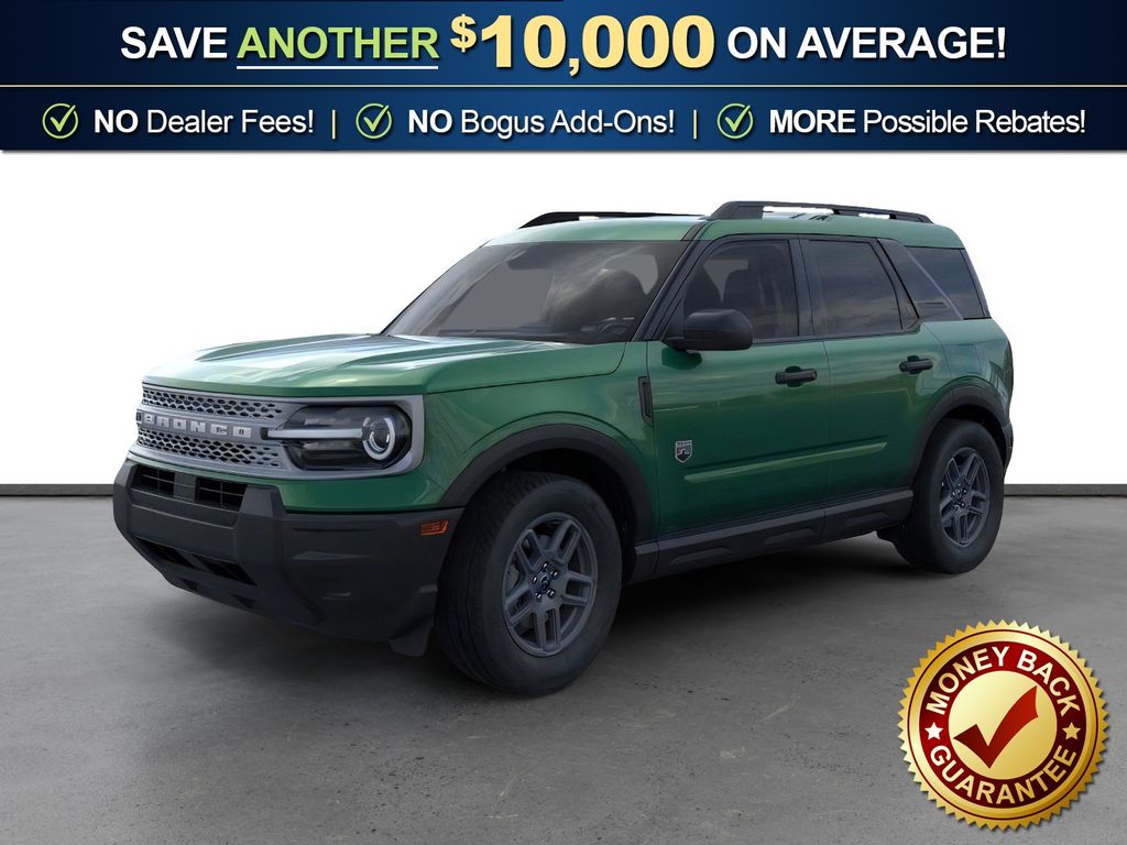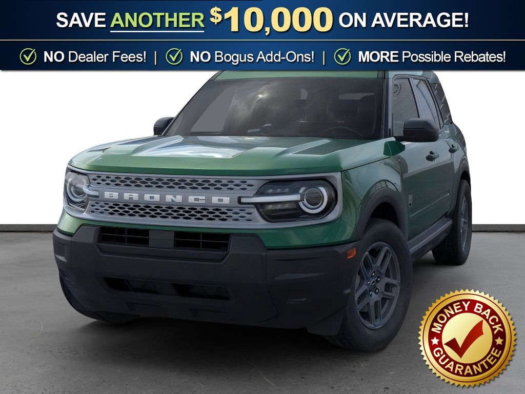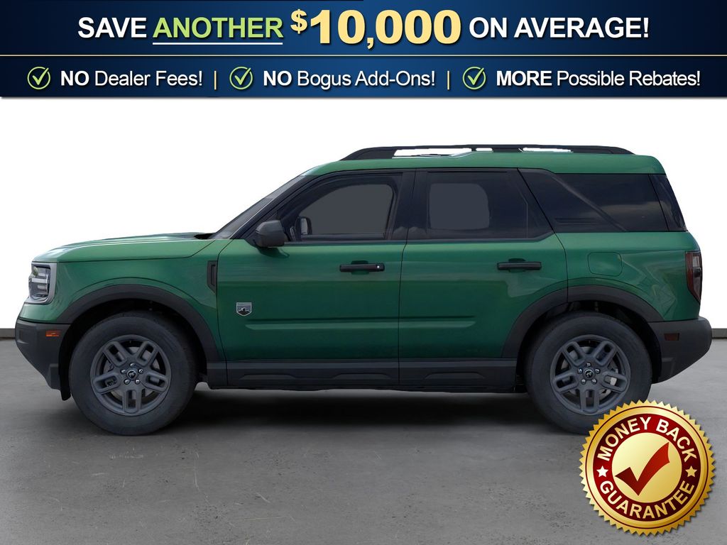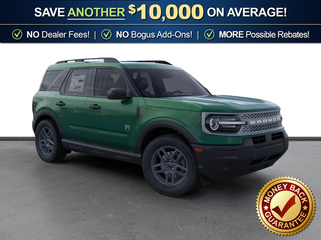 Eruption Green Metallic 2025 Ford Bronco Sport Big Bend FCT 4WD 8-Speed Automatic 1.5L EcoBoost 4-Wheel Disc Brakes, 6 Speakers, ABS brakes, Air Conditioning, Alloy wheels, AM/FM radio: SiriusXM, AM/FM Stereo, Auto High-beam Headlights, Automatic temperature control, Brake assist, Cloth w/Easy-to-Clean Front Bucket Seats, Compass, Delay-off headlights, Driver door bin, Driver vanity mirror, Dual front impact airbags, Dual front side impact airbags, Electronic Stability Control, Emergency communication system: SYNC 4 911 Assist, Four wheel independent suspension, Front anti-roll bar, Front Bucket Seats, Front Center Armrest, Front License Plate Bracket, Front reading lights, Fully automatic headlights, Heated door mirrors, Illuminated entry, Knee airbag, Low tire pressure warning, Occupant sensing airbag, Outside temperature display, Overhead airbag, Overhead console, Panic alarm, Passenger door bin, Passenger vanity mirror, Power door mirrors, Power steering, Power windows, Radio data system, Rear anti-roll bar, Rear Parking Sensors, Rear reading lights, Rear seat center armrest, Rear window defroster, Rear window wiper, Remote keyless entry, Security system, SiriusXM, Speed control, Speed-sensing steering, Speed-Sensitive Wipers, Split folding rear seat, Steering wheel mounted audio controls, SYNC 4 w/Enhanced Voice Recognition, Tachometer, Telescoping steering wheel, Tilt steering wheel, Traction control, Trip computer, Variably intermittent wipers, Wheels: 17" Carbonized Gray Painted Aluminum, Wheels: 17" Carbonized Gray-Painted Aluminum.