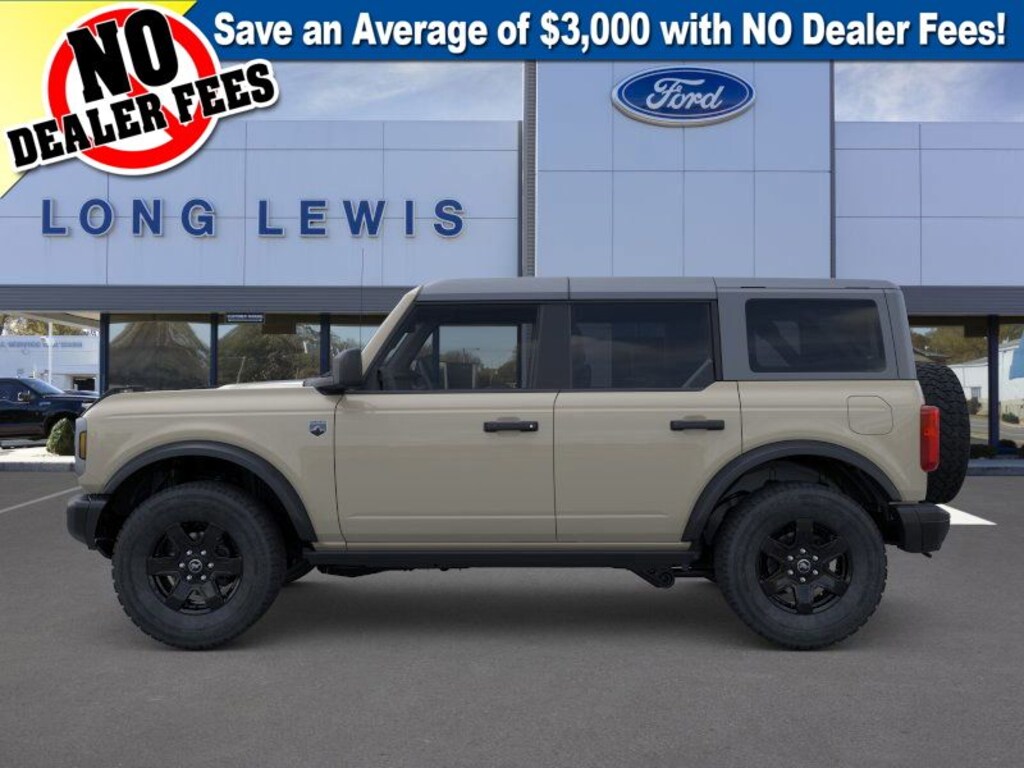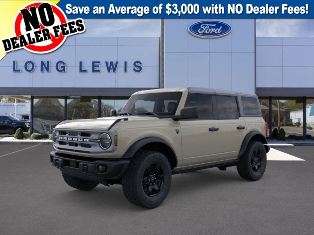 Desert Sand 2025 Ford Bronco Big Bend 4WD 7-Speed Manual 2.3L EcoBoost I-4 4-Wheel Disc Brakes, 7 Speakers, ABS brakes, Air Conditioning, Alloy wheels, AM/FM radio: SiriusXM with 360L, AM/FM Stereo, Auto High-beam Headlights, Auxiliary Switches, Black Diamond Package, Brake assist, Carbonized Gray Molded-In-Color Hard Top, Cloth Bucket Seats, Compass, Delay-off headlights, Driver door bin, Driver vanity mirror, Dual front impact airbags, Dual front side impact airbags, Electronic Stability Control, Emergency communication system: 911 Assist, Exterior Parking Camera Rear, Front anti-roll bar, Front Bucket Seats, Front Center Armrest, Front License Plate Bracket, Front reading lights, Front wheel independent suspension, Fully automatic headlights, Hard Top Sound Deadening Headliner, Heated door mirrors, Illuminated entry, Integrated roll-over protection, Leather Shift Knob, LED Fog Lamps, Low tire pressure warning, Occupant sensing airbag, Outside temperature display, Overhead airbag, Overhead console, Panic alarm, Passenger door bin, Passenger vanity mirror, Powder Coated Steel Front & Rear Bumpers, Power door mirrors, Power steering, Power windows, Radio data system, Rear-Window Defroster & Washer, Remote keyless entry, Rock Rails, Security system, SiriusXM w/360L, Speed control, Split folding rear seat, Steering wheel mounted audio controls, SYNC 4, Tachometer, Telescoping steering wheel, Tilt steering wheel, Traction control, Trip computer, Variably intermittent wipers, Washout Capable Rubberized Flooring, Wheels: 17" Black High Gloss Painted Aluminum, Wheels: 17" Carbonized Gray-Painted Aluminum.