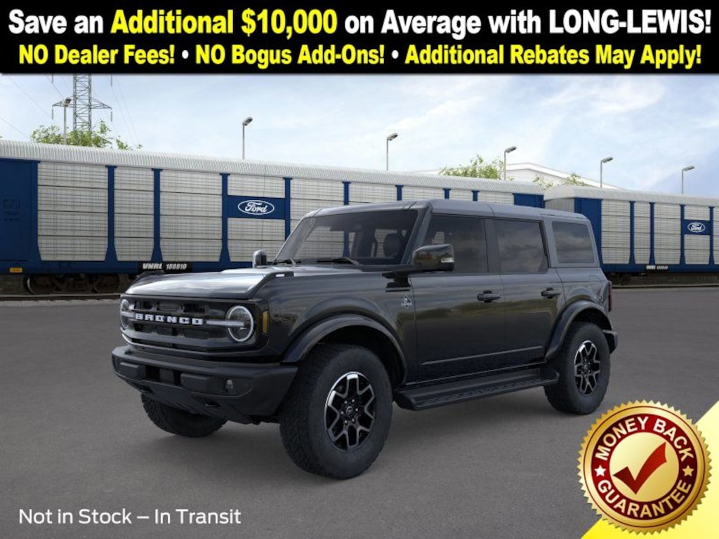Dealer Discount of $3,119 off MSRP Shadow Black 2025 Ford Bronco Outer Banks 4WD 10-Speed Automatic 2.7L EcoBoost V6 18" Bright Machined Aluminum Wheels, 3.73 Axle Ratio, 4-Wheel Disc Brakes, 7 Speakers, ABS brakes, Air Conditioning, Alloy wheels, AM/FM radio: SiriusXM with 360L, AM/FM Stereo, Auto High-beam Headlights, Auto-dimming Rear-View mirror, Automatic temperature control, Brake assist, Carbonized Gray Molded-In-Color Hard Top, Compass, Connected Navigation, Delay-off headlights, Driver door bin, Driver vanity mirror, Dual front impact airbags, Dual front side impact airbags, Electronic Stability Control, Emergency communication system: 911 Assist, Exterior Parking Camera Rear, Front anti-roll bar, Front Bucket Seats, Front Center Armrest, Front dual zone A/C, Front fog lights, Front License Plate Bracket, Front reading lights, Front wheel independent suspension, Fully automatic headlights, Hard Top Sound Deadening Headliner, Heated door mirrors, Heated front seats, Heated Leather-Trimmed/Vinyl Bucket Seats, Heated steering wheel, Illuminated entry, Integrated roll-over protection, Leather Shift Knob, Low tire pressure warning, Navigation system: Connected Navigation, Occupant sensing airbag, Outside temperature display, Overhead airbag, Overhead console, Panic alarm, Passenger door bin, Passenger vanity mirror, Power door mirrors, Power driver seat, Power passenger seat, Power steering, Power windows, Radio data system, Rear seat center armrest, Rear-Window Defroster & Washer, Remote keyless entry, Security system, SiriusXM w/360L, Speed control, Split folding rear seat, Steering wheel mounted audio controls, SYNC 4, Tachometer, Telescoping steering wheel, Tilt steering wheel, Traction control, Trip computer, Variably intermittent wipers, Voltmeter.