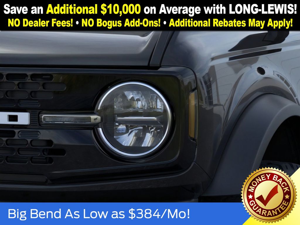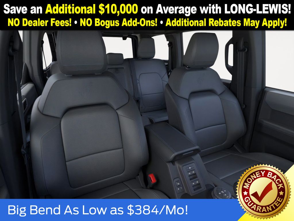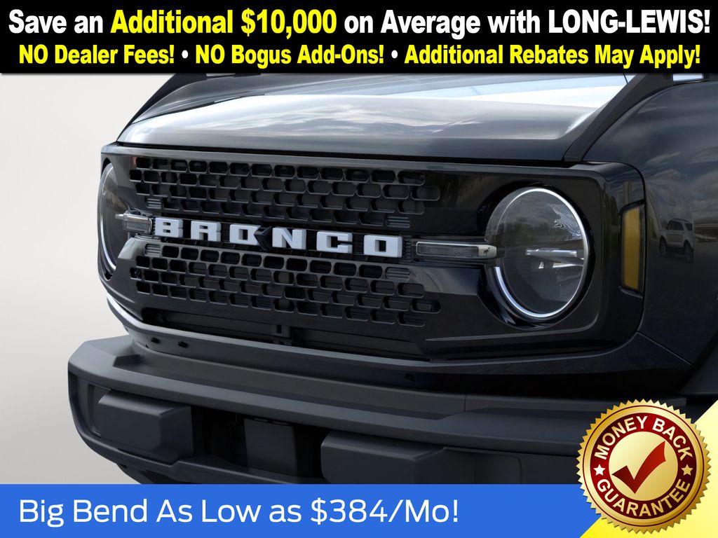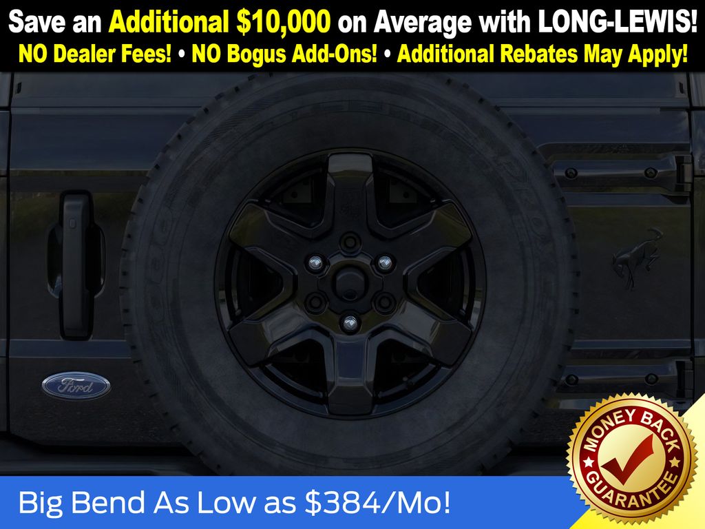 Shadow Black 2025 Ford Bronco Big Bend NFT 4WD 10-Speed Automatic 2.3L EcoBoost I-4 4-Wheel Disc Brakes, 4.46 Axle Ratio, 7 Speakers, ABS brakes, Air Conditioning, Alloy wheels, AM/FM radio: SiriusXM with 360L, AM/FM Stereo, Auto High-beam Headlights, Black Appearance Package, Black Molded-In-Color Door Handles, Black Molded-In-Color Fender Flares, Black Molded-In-Color Sideview Mirror Caps, Black-Painted Molded-In-Color Grille, Brake assist, Cloth Bucket Seats, Compass, Delay-off headlights, Driver door bin, Driver vanity mirror, Dual front impact airbags, Dual front side impact airbags, Electronic Stability Control, Emergency communication system: 911 Assist, Exterior Parking Camera Rear, Front anti-roll bar, Front Bucket Seats, Front Center Armrest, Front License Plate Bracket, Front reading lights, Front wheel independent suspension, Fully automatic headlights, Hard Top Sound Deadening Headliner, Heated door mirrors, Illuminated entry, Integrated roll-over protection, Internet access capable: FordPass Connect, Leather Shift Knob, Low tire pressure warning, Occupant sensing airbag, Outside temperature display, Overhead airbag, Overhead console, Panic alarm, Passenger door bin, Passenger vanity mirror, Power door mirrors, Power steering, Power windows, Radio data system, Rear-Window Defroster & Washer, Remote keyless entry, Security system, Shadow Black Painted Hard Top, SiriusXM w/360L, Speed control, Split folding rear seat, Steering wheel mounted audio controls, SYNC 4, Tachometer, Telescoping steering wheel, Tilt steering wheel, Traction control, Trip computer, Variably intermittent wipers, Wheels: 17" Carbonized Gray-Painted Aluminum.
